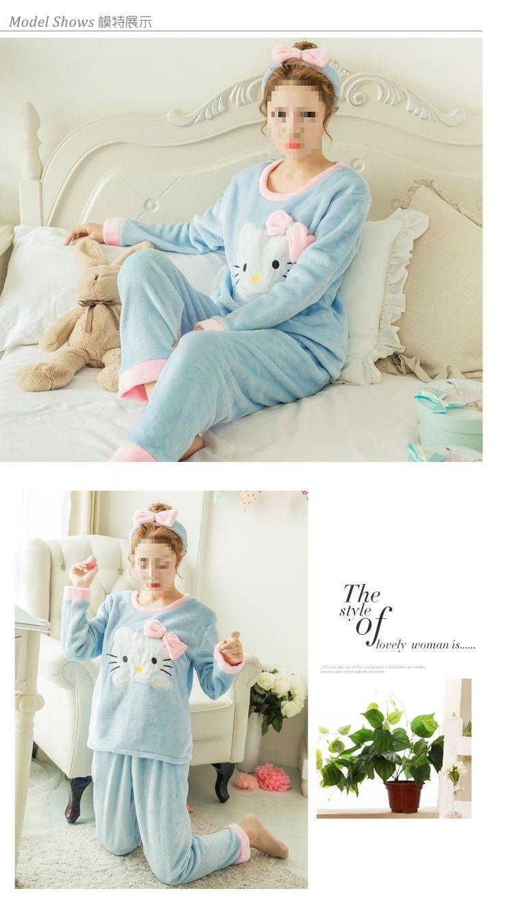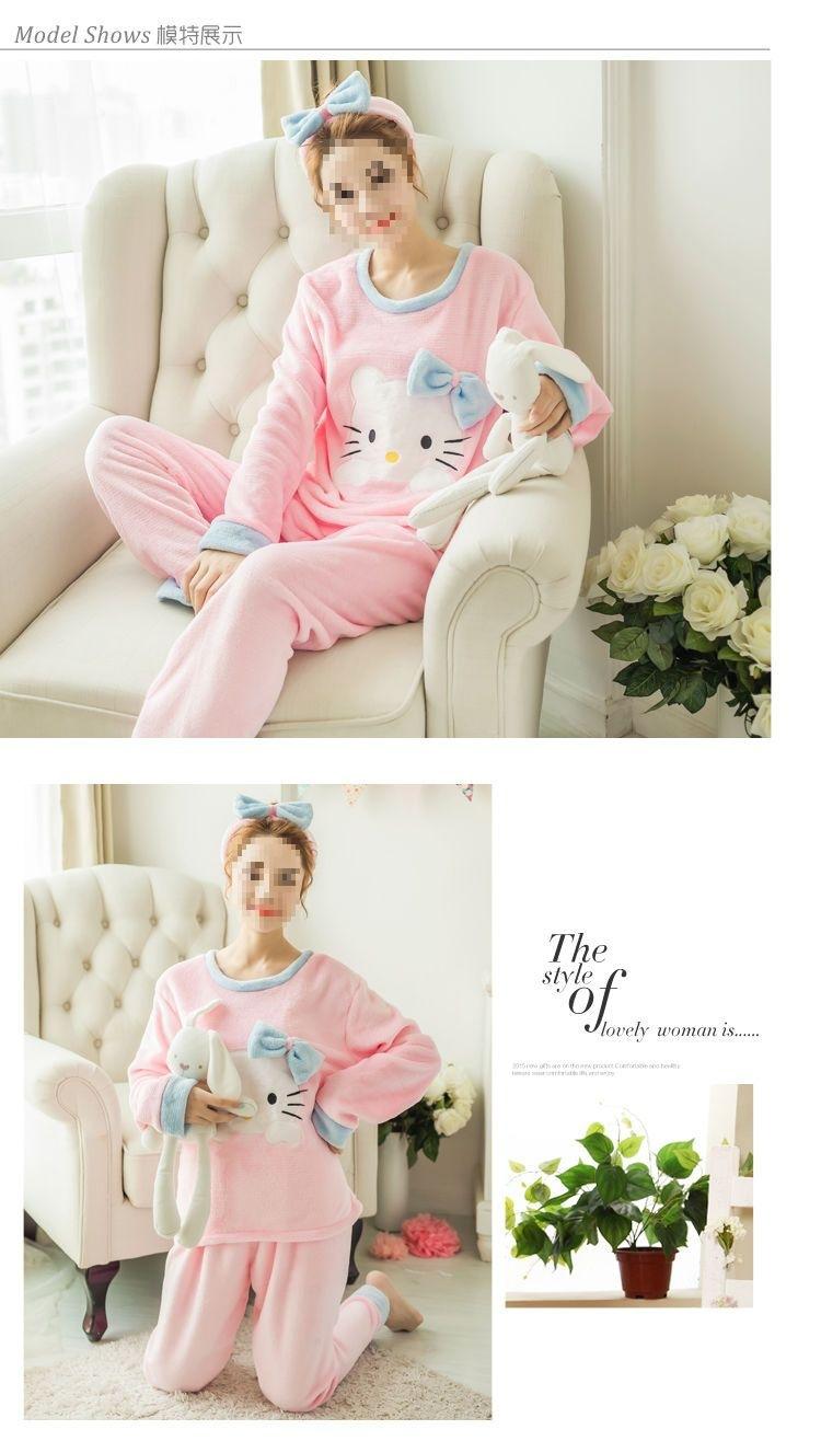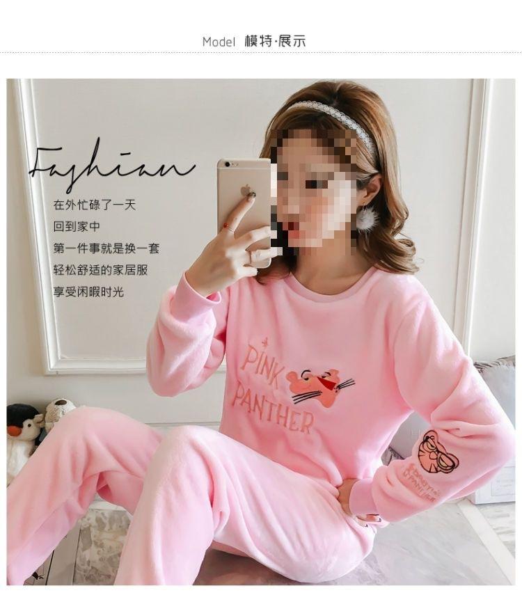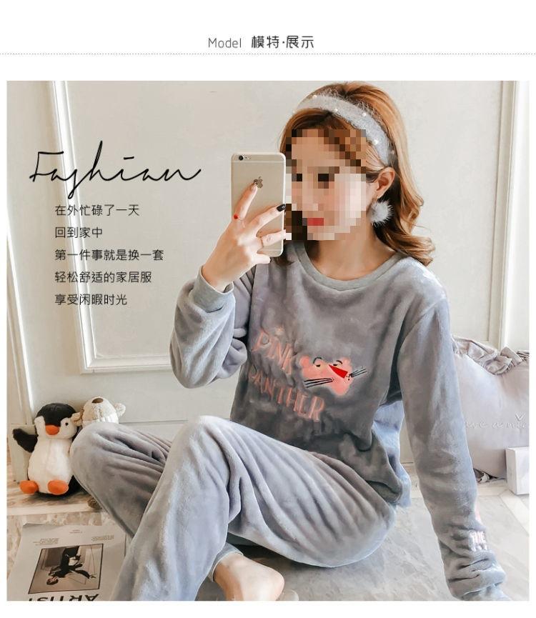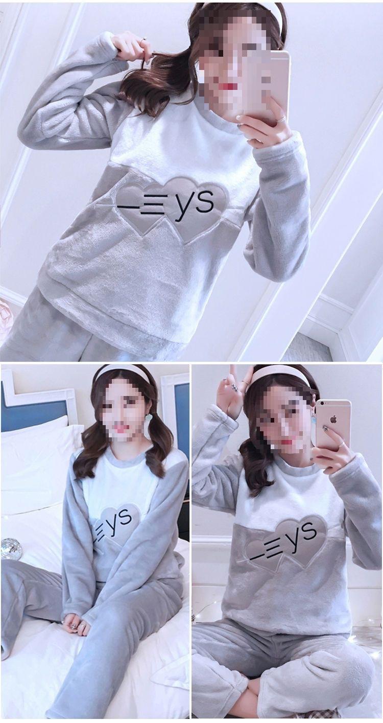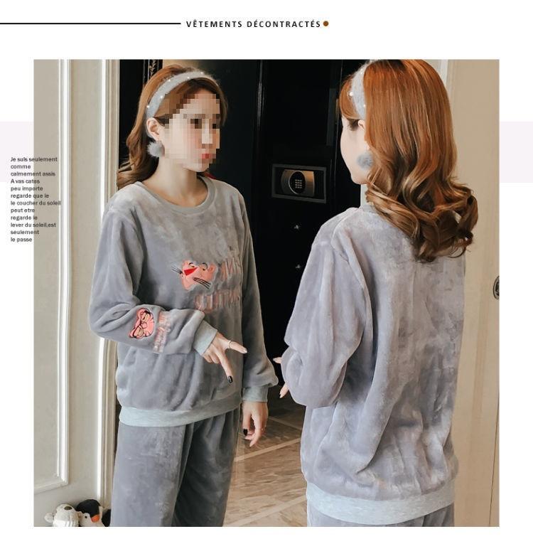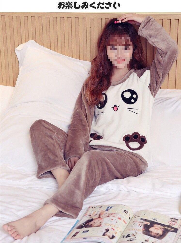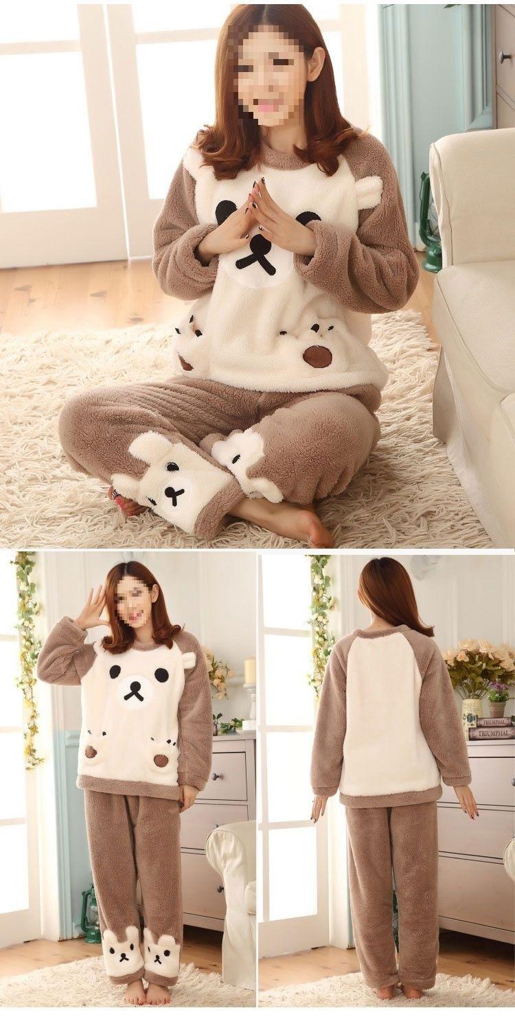 Conjunto para Estar en Casa Pijamas Lindos para Mujer Invierno Grueso Otoño e Invierno Estudiante Franela Dibujos Animados Invierno Forro Polar Coral Cálido