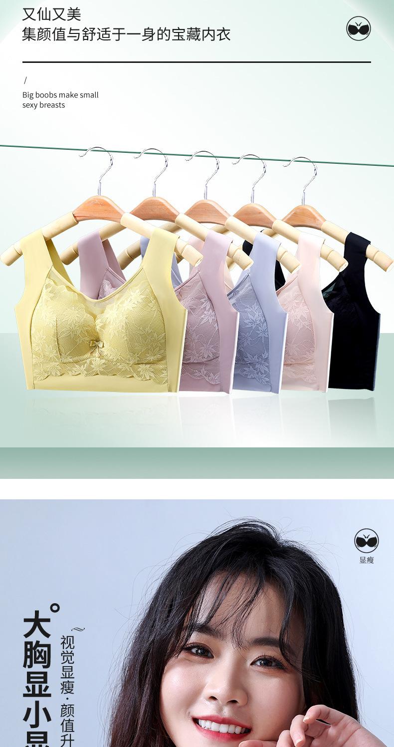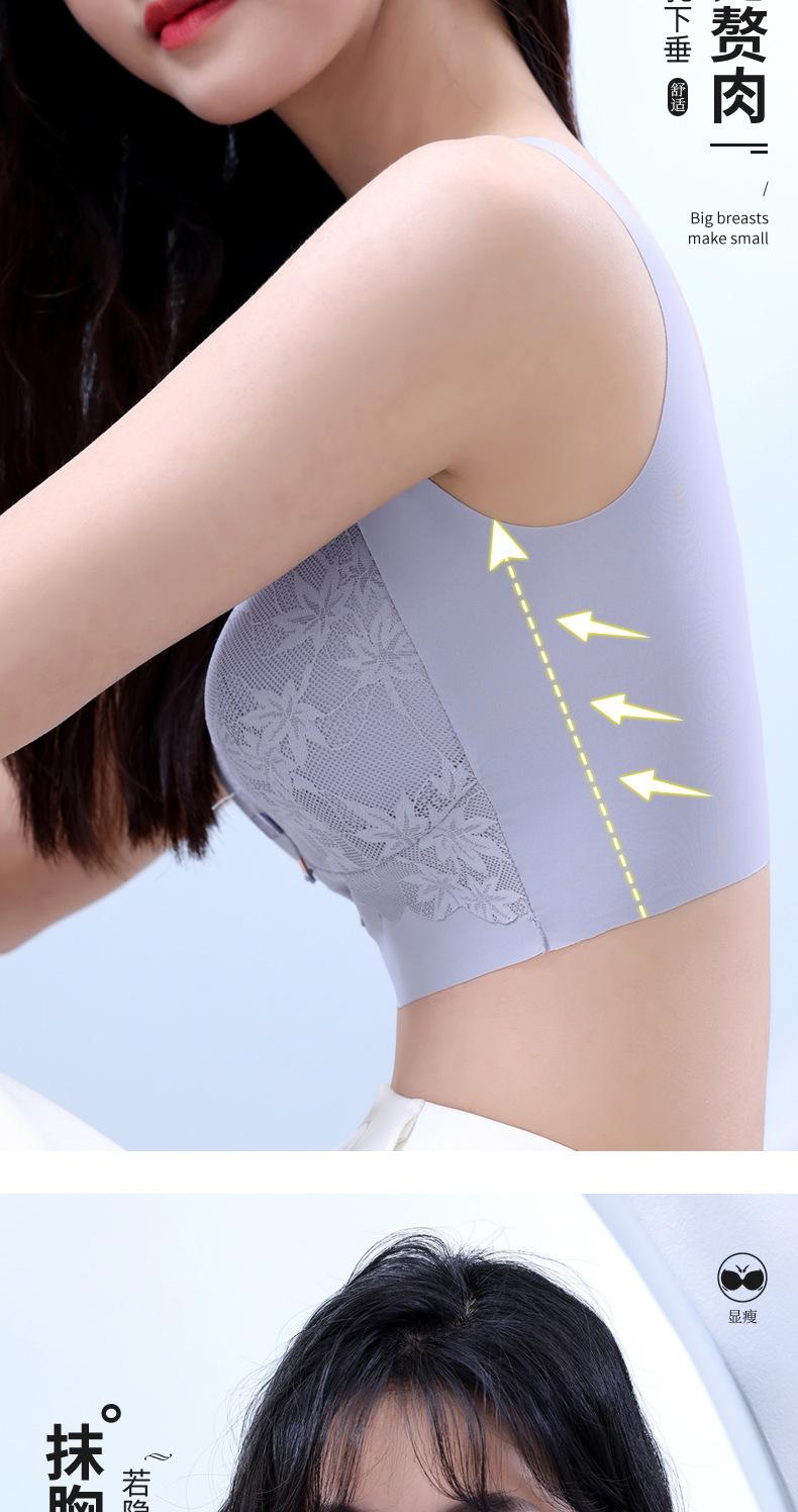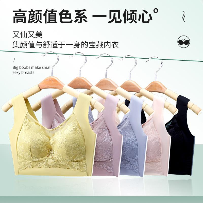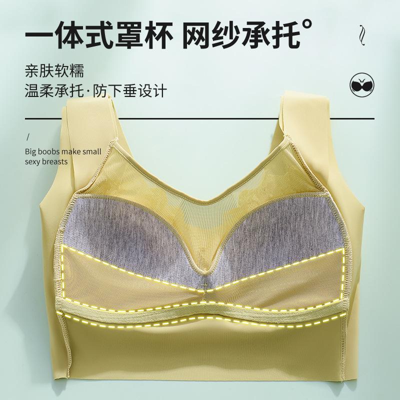 Sujetador de Talla Pequeña para Pecho Grande Sin Aro de Acero Encaje Chaleco de Belleza Todo en Uno Ropa Interior Sin Marcas Sujetador Fino de Seda de Hielo para Mujer