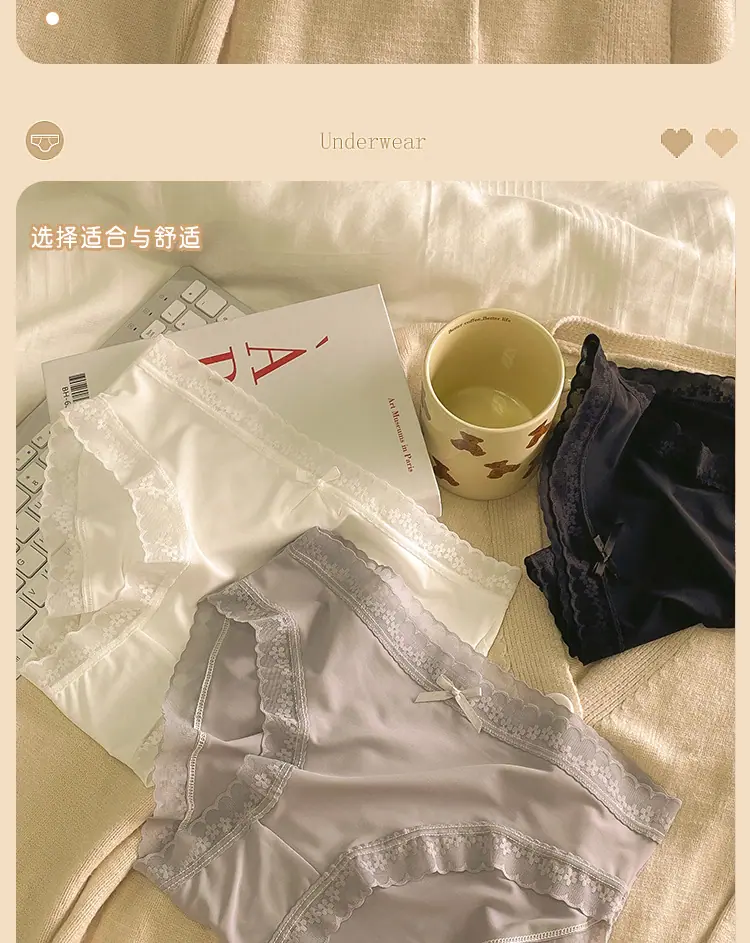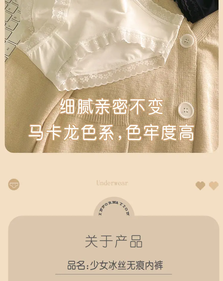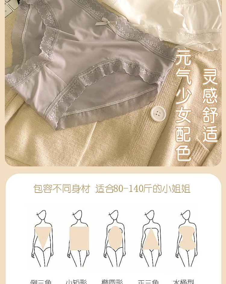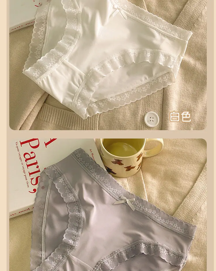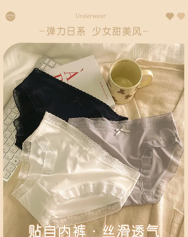 Calzones de Seda de Hielo para Niña Color Crema Verano Delgados Puros Sexy Cintura Media Transpirables Entrepierna de Algodón Puro Secado Rápido Calzones Naked para Mujer
