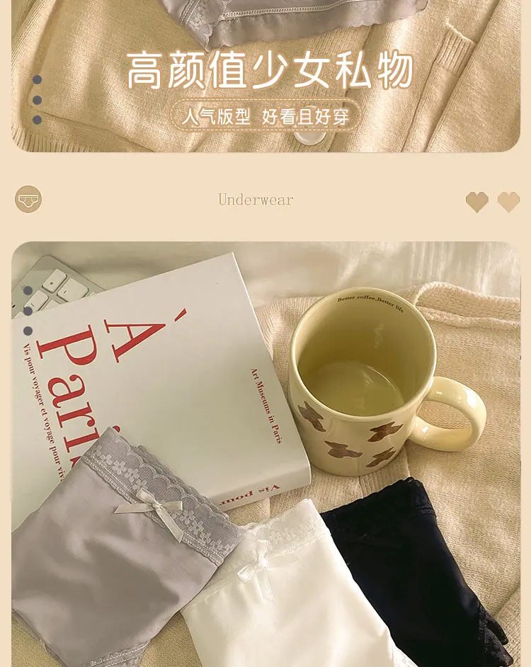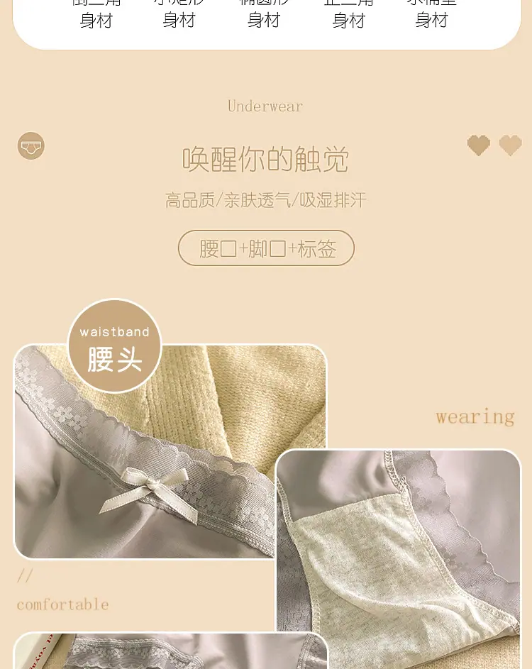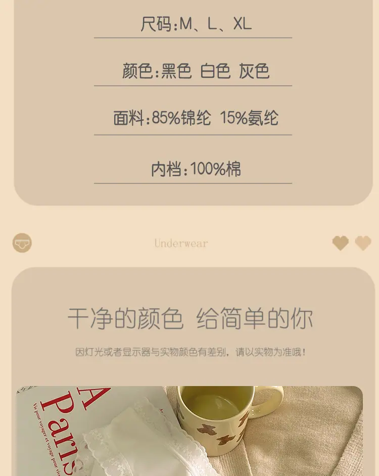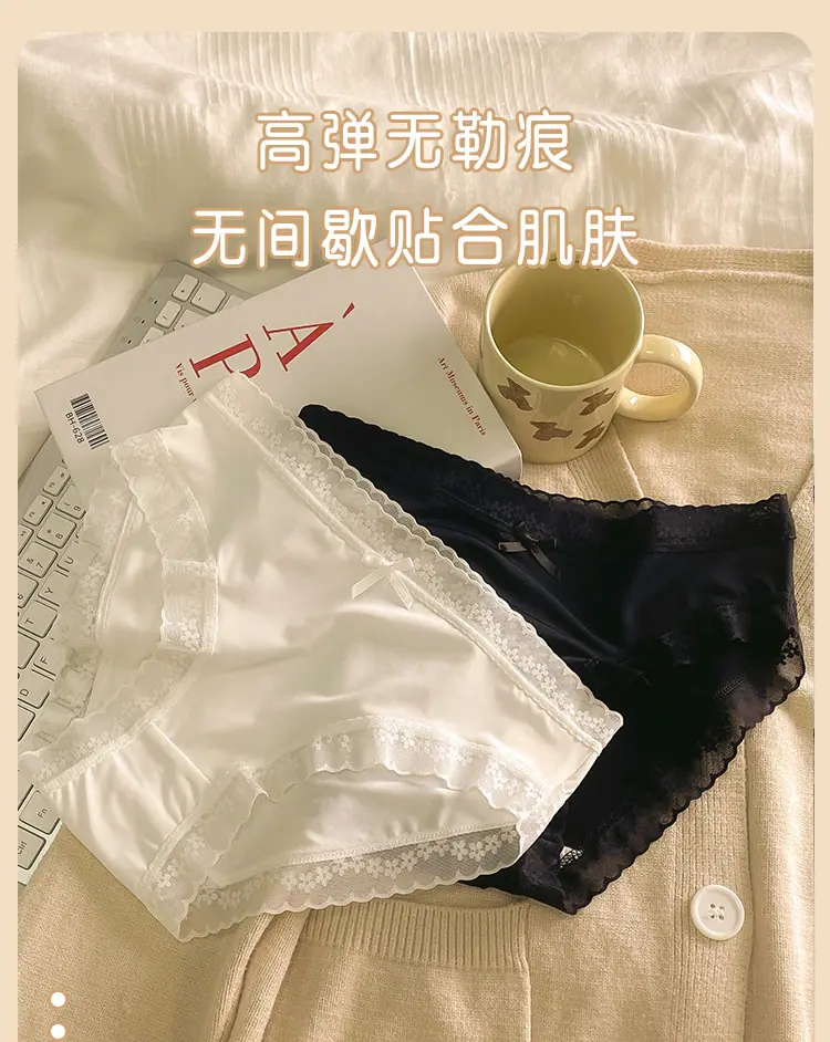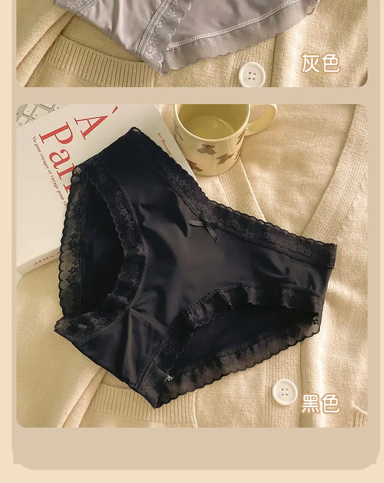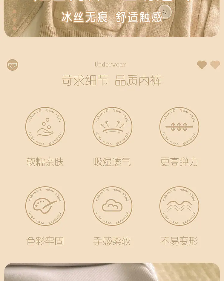 Calzones de Seda de Hielo para Niña Color Crema Verano Delgados Puros Sexy Cintura Media Transpirables Entrepierna de Algodón Puro Secado Rápido Calzones Naked para Mujer