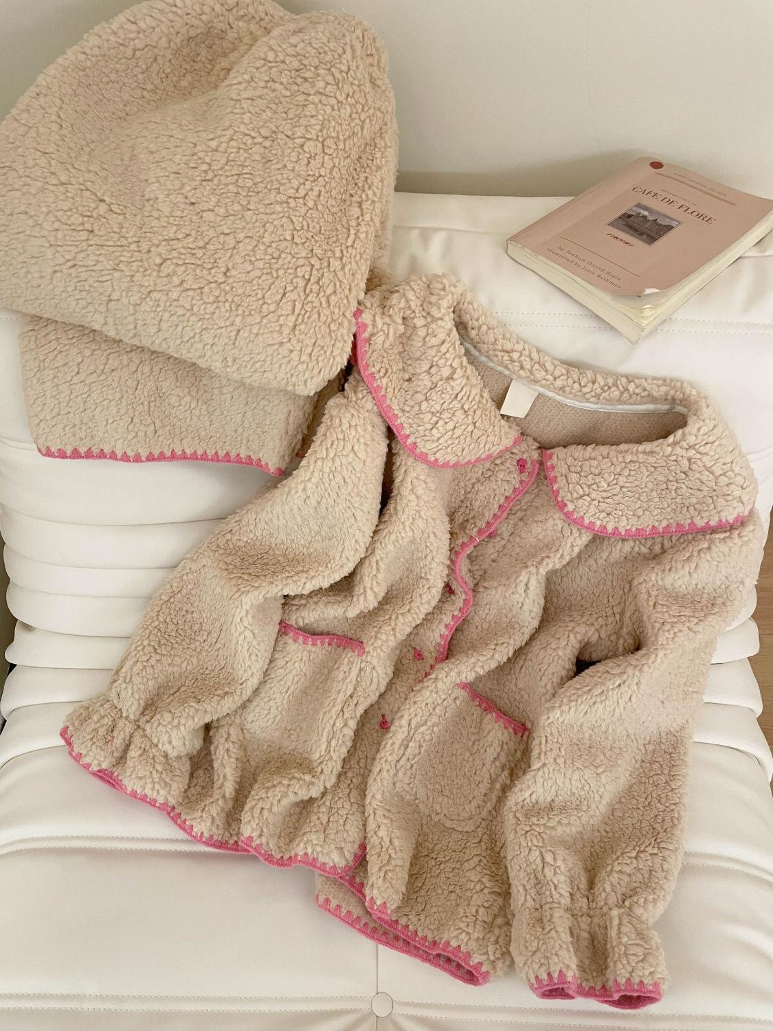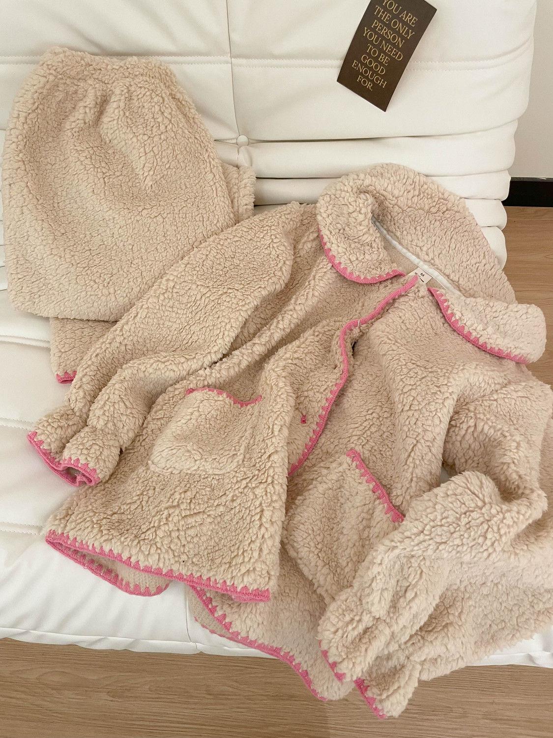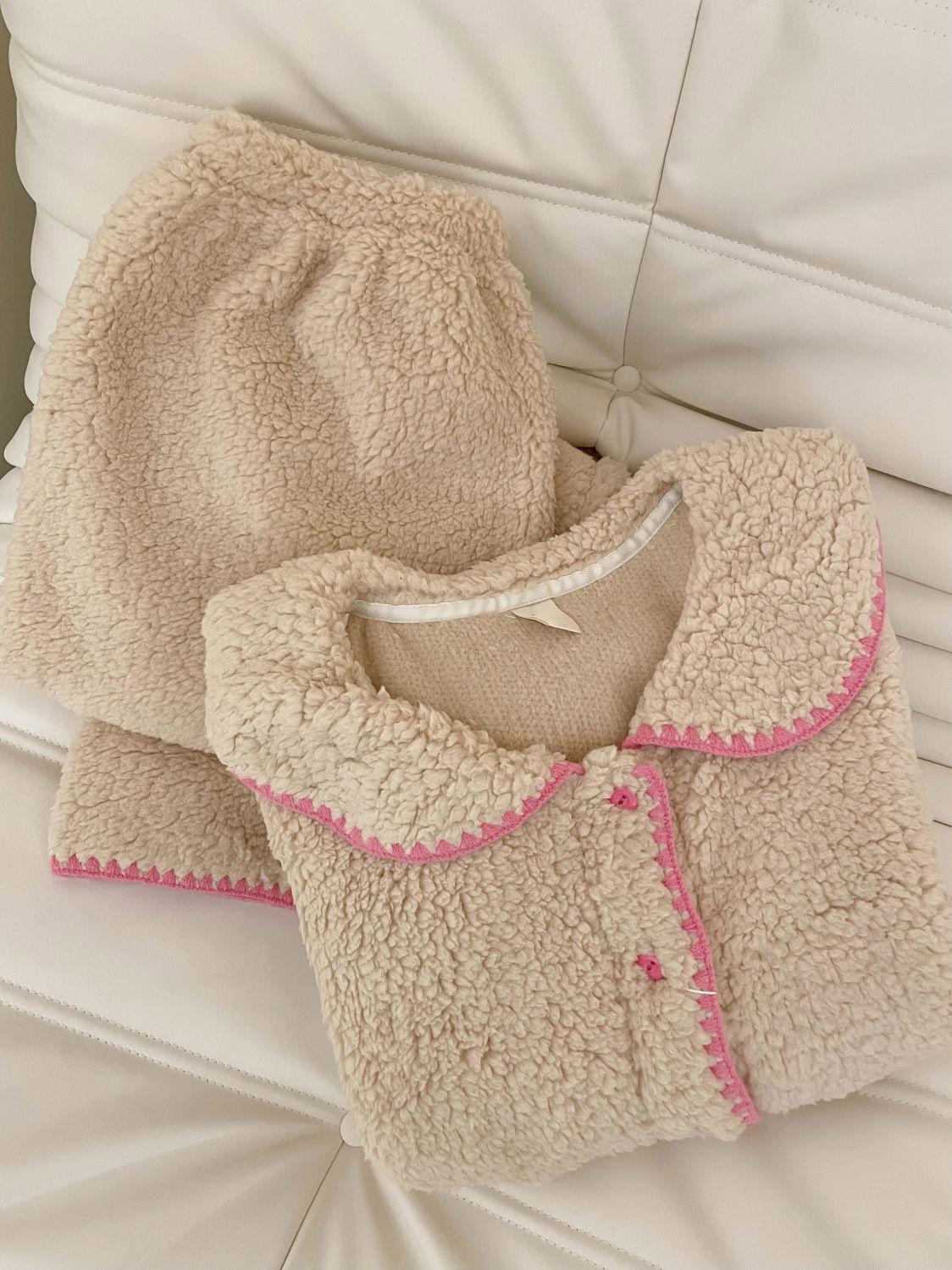 Compra Pijama de Forro Polar Coral con Borde Colorblock para Niña Dulce para Mujer Otoño e Invierno Nuevo Estilo con Forro Polar Espesado de Felpa Conjunto para Estar en Casa al por mayor en Joom.pro