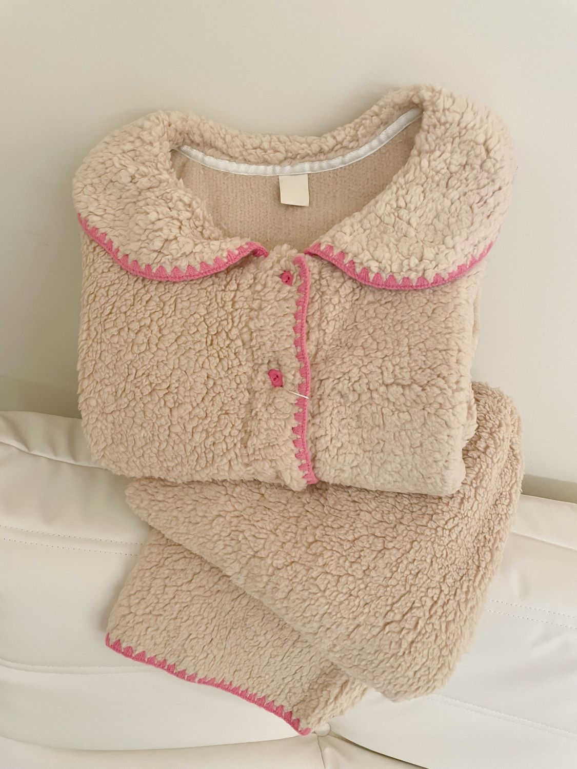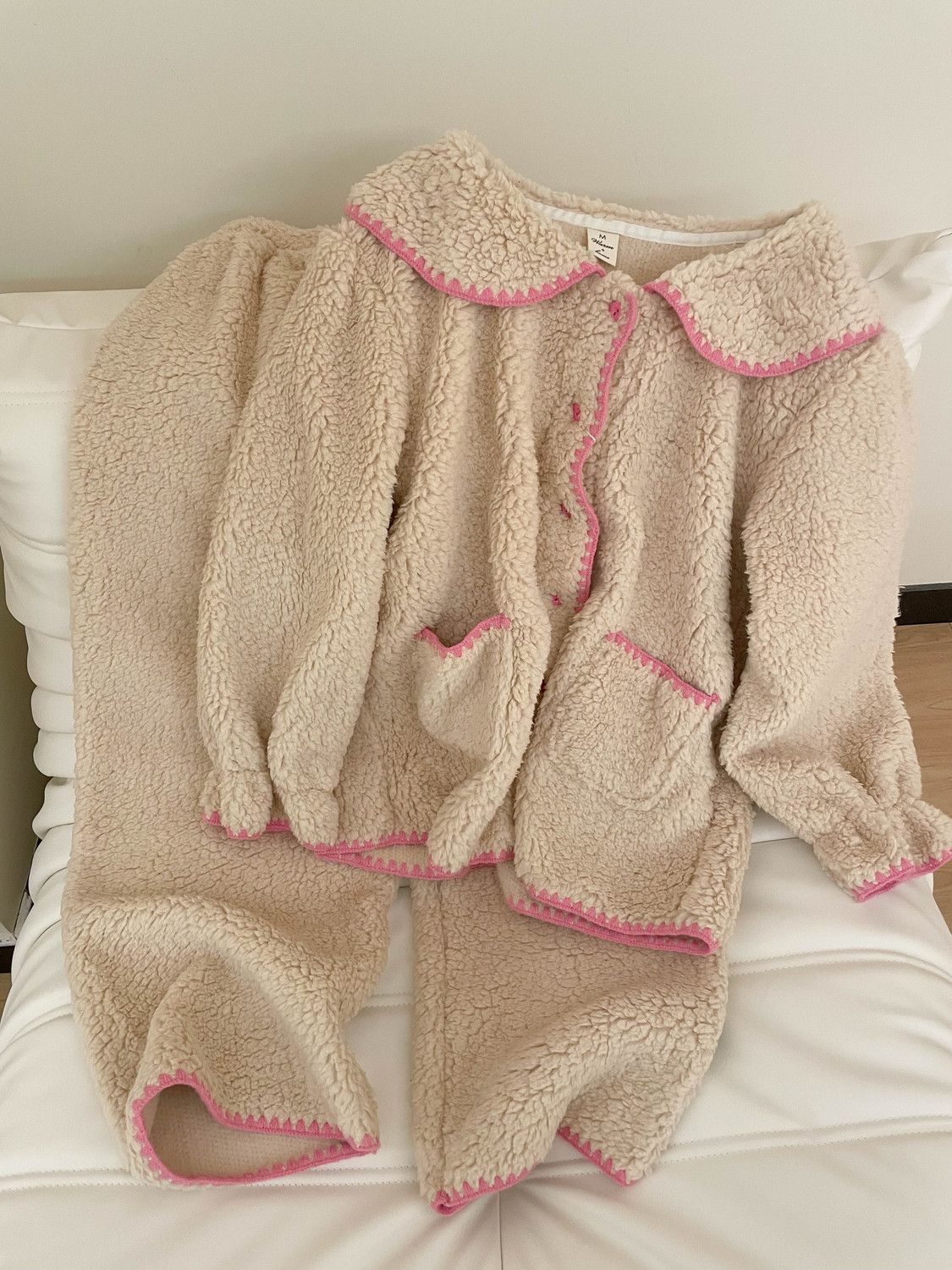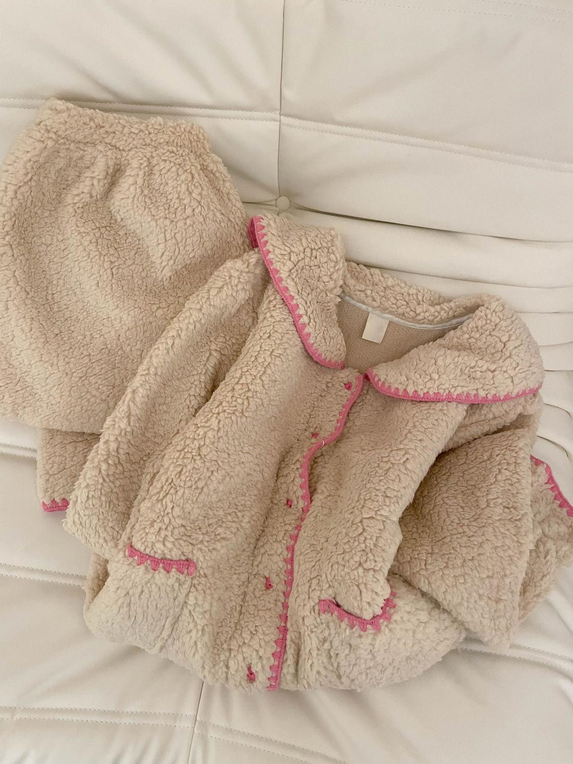 Compra Pijama de Forro Polar Coral con Borde Colorblock para Niña Dulce para Mujer Otoño e Invierno Nuevo Estilo con Forro Polar Espesado de Felpa Conjunto para Estar en Casa al por mayor en Joom.pro