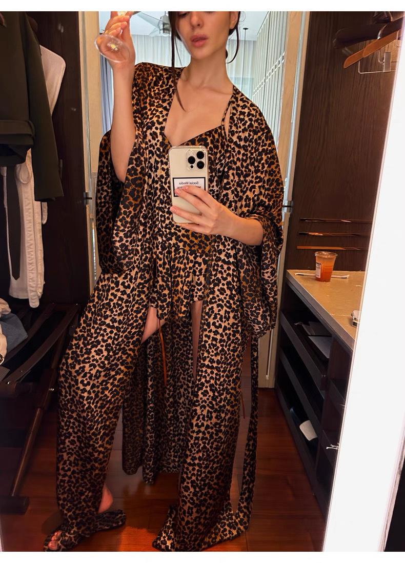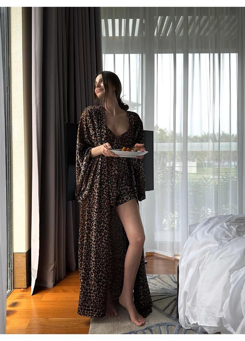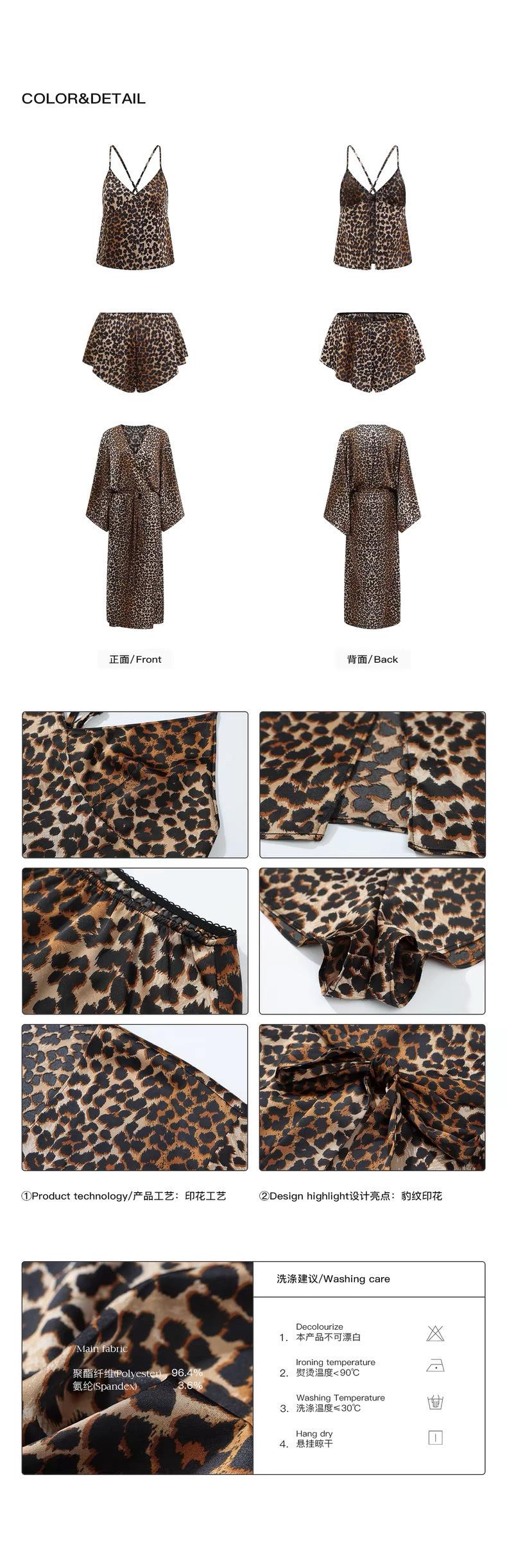 Compra Camisola Sexy de Mujer con Cuello en V, Shorts, Cárdigan Largo con Estampado de Leopardo, Nuevo Conjunto para Estar en Casa, Se Puede Usar Afuera al por mayor en Joom.pro