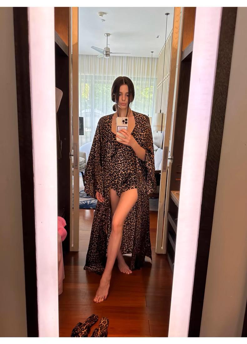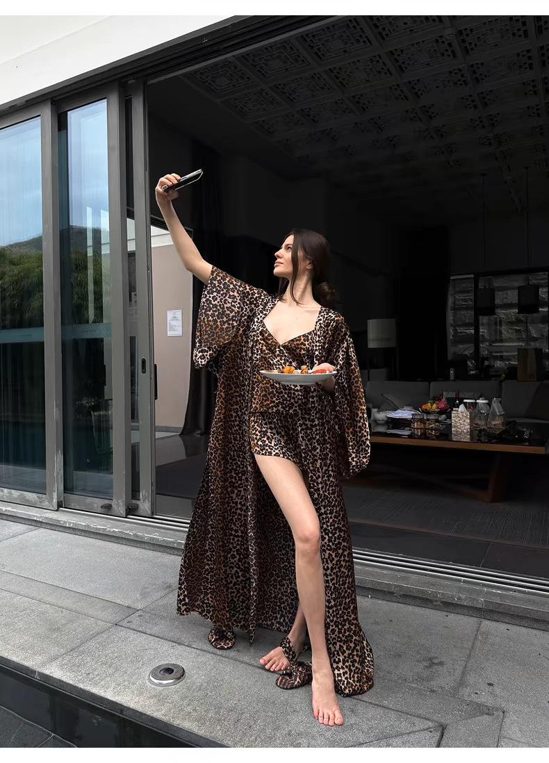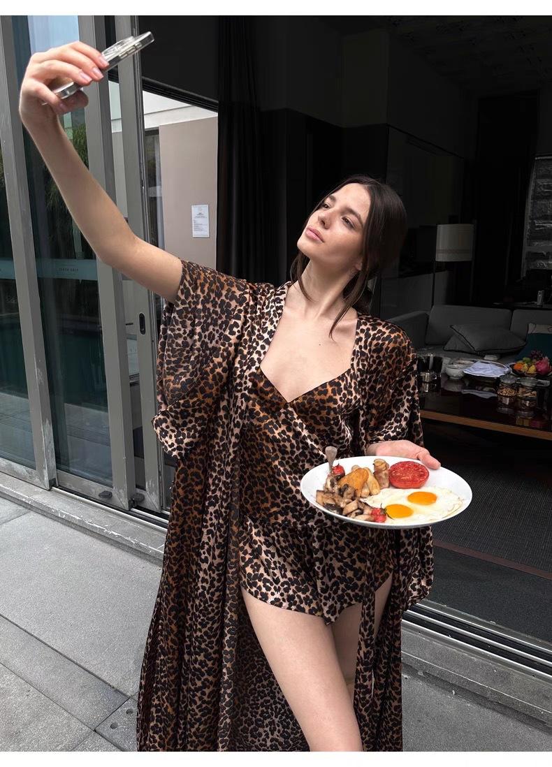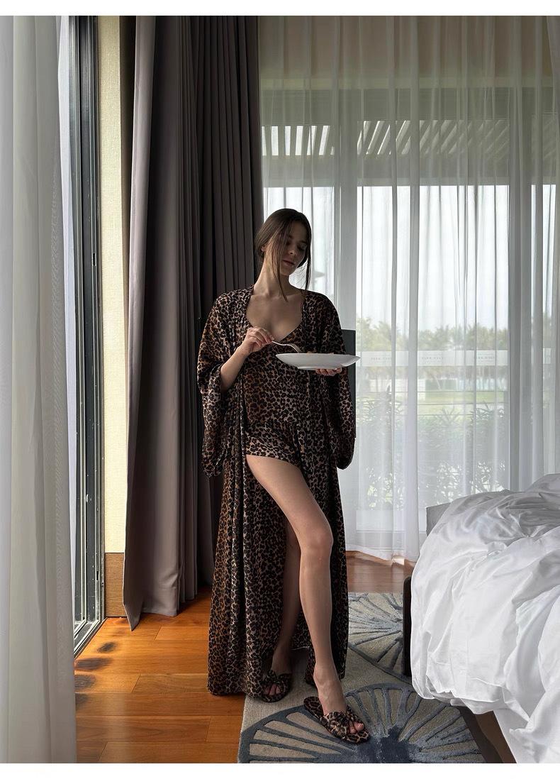 Camisola Sexy de Mujer con Cuello en V, Shorts, Cárdigan Largo con Estampado de Leopardo, Nuevo Conjunto para Estar en Casa, Se Puede Usar Afuera