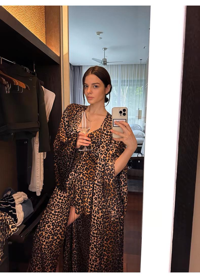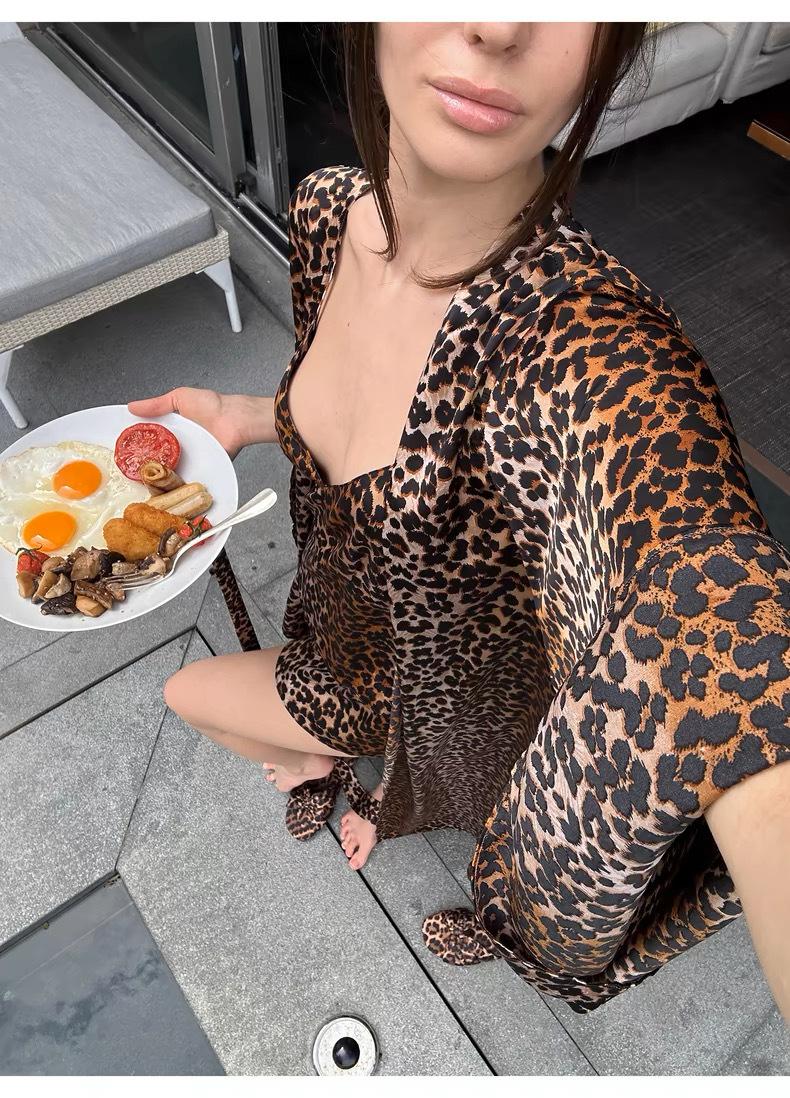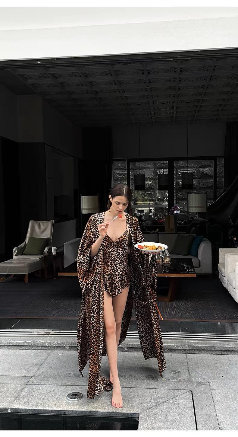 Camisola Sexy de Mujer con Cuello en V, Shorts, Cárdigan Largo con Estampado de Leopardo, Nuevo Conjunto para Estar en Casa, Se Puede Usar Afuera