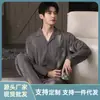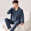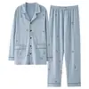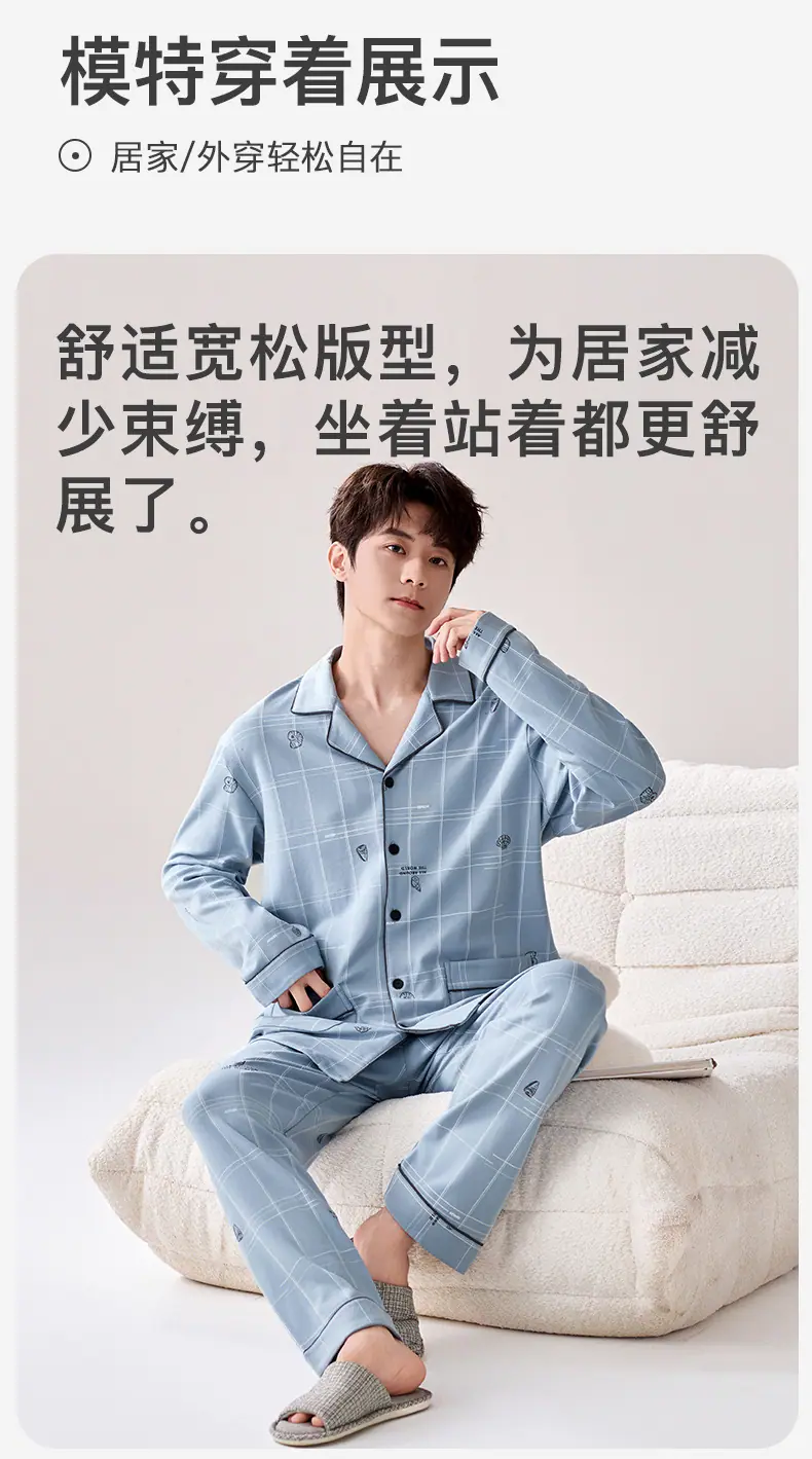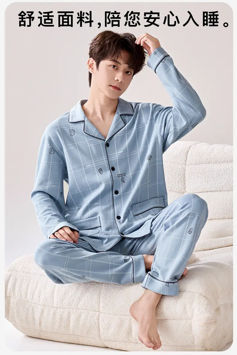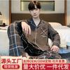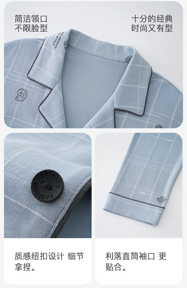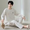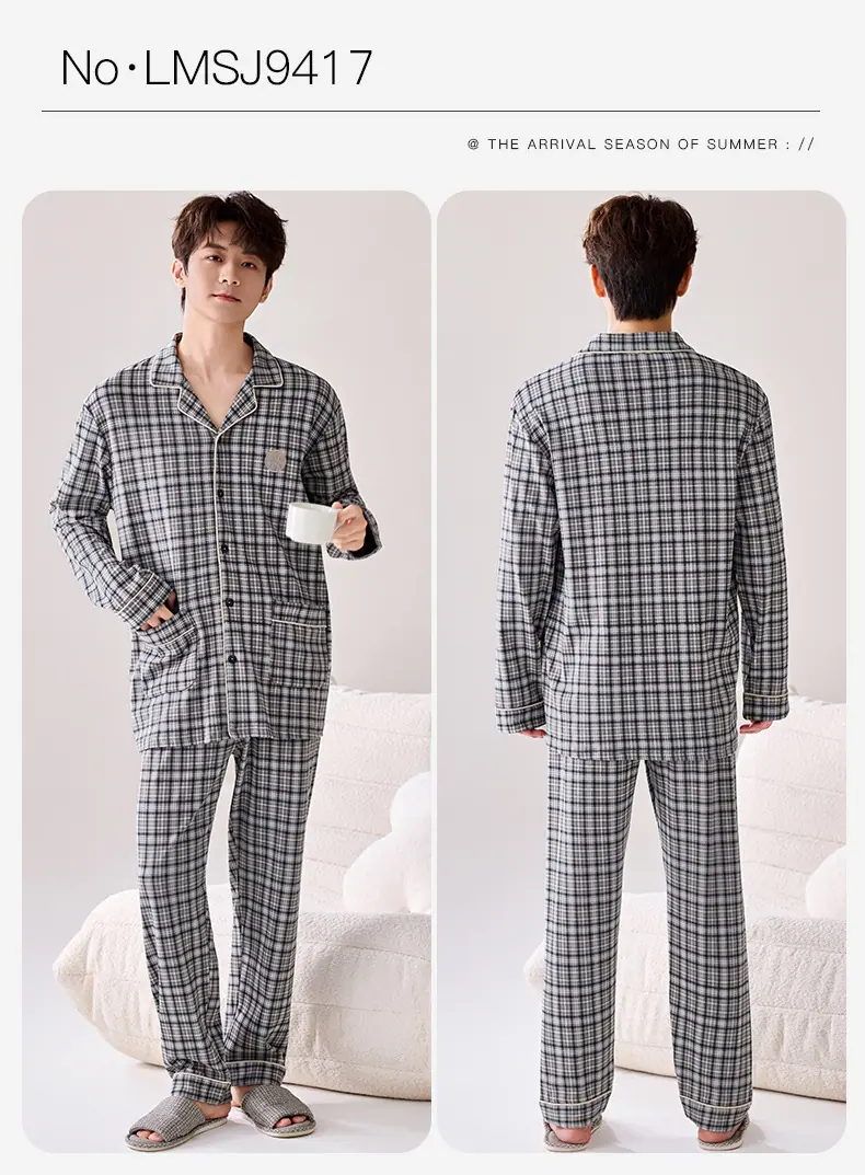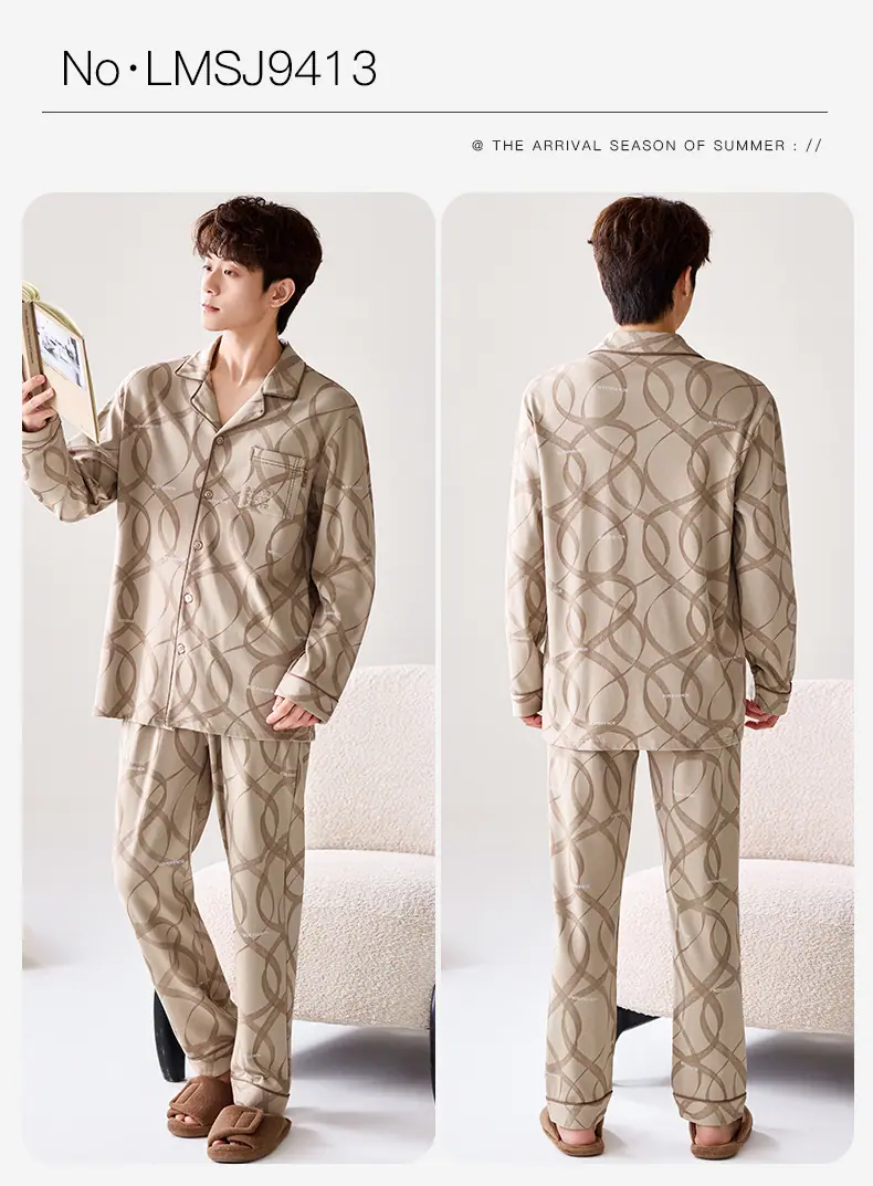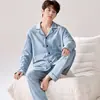 Pijama de Hombre de Primavera y Otoño de Alta Gama de Manga Larga y Pantalón Largo, Cárdigan de Lycra de Algodón Puro, Conjunto Casual Cómodo para Estar en Casa