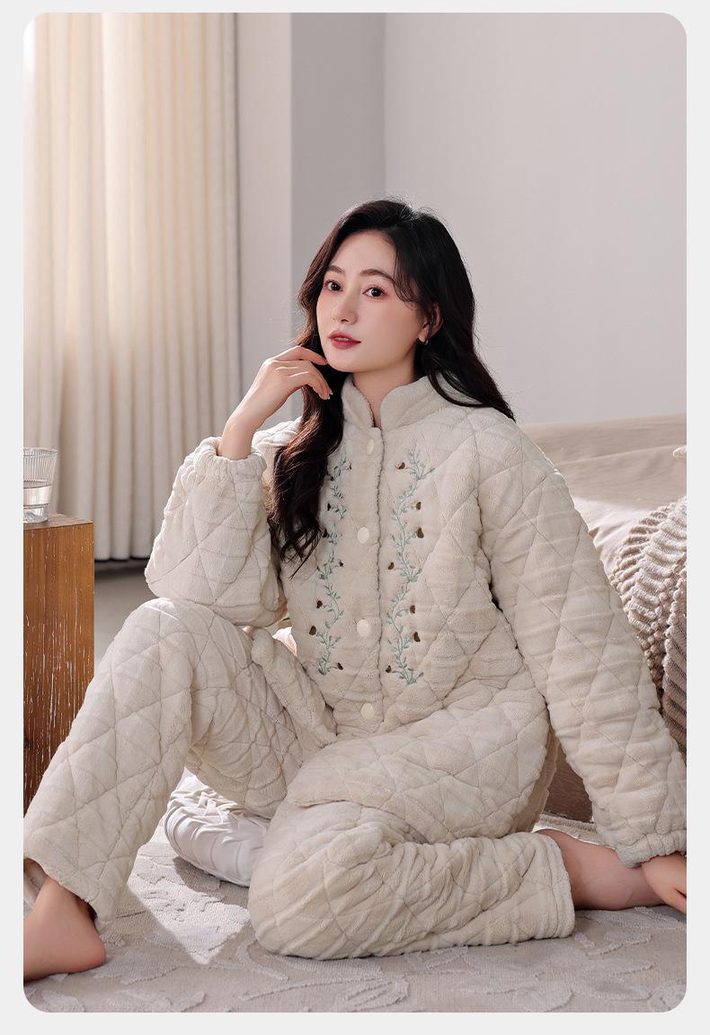 Compra Pijama de Invierno para Mujer de Tres Capas Extra Grueso Acolchado de Franela de Forro Polar Coral Estilo Otoño e Invierno Invierno al por mayor en Joom.pro