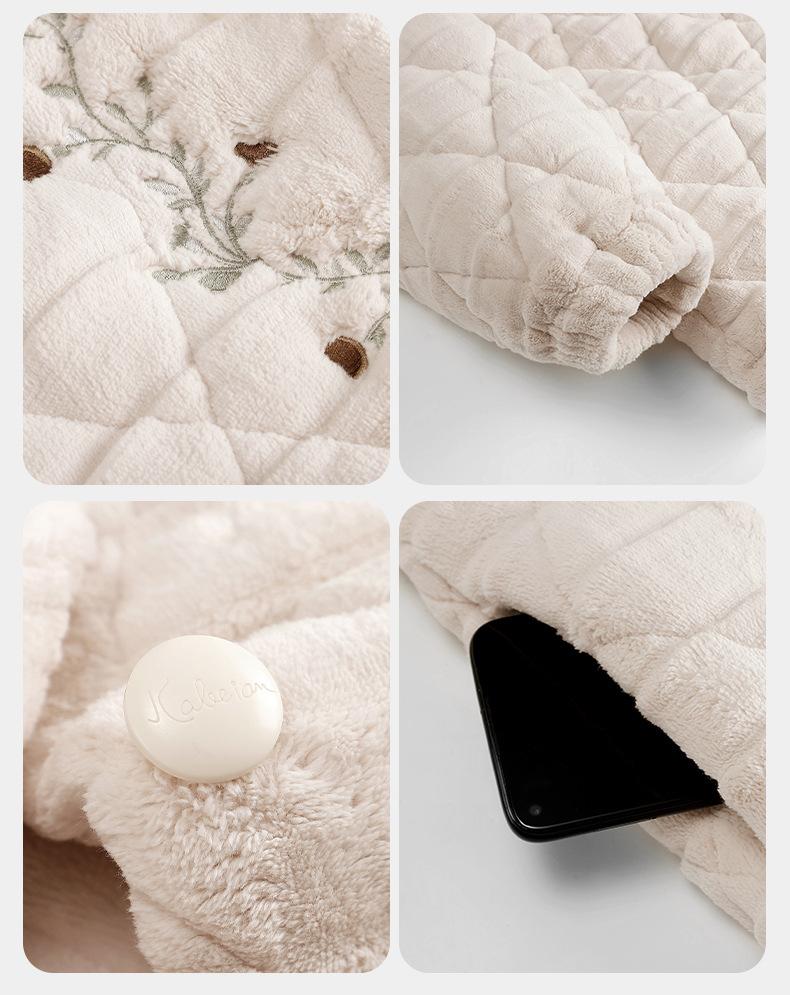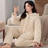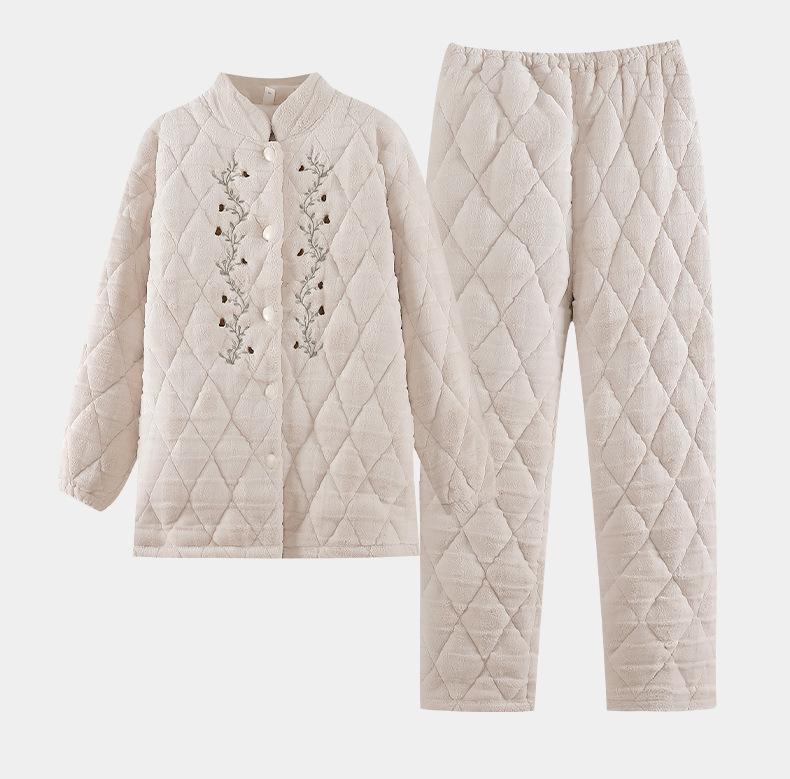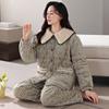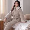 Pijama de Invierno para Mujer de Tres Capas Extra Grueso Acolchado de Franela de Forro Polar Coral Estilo Otoño e Invierno Invierno