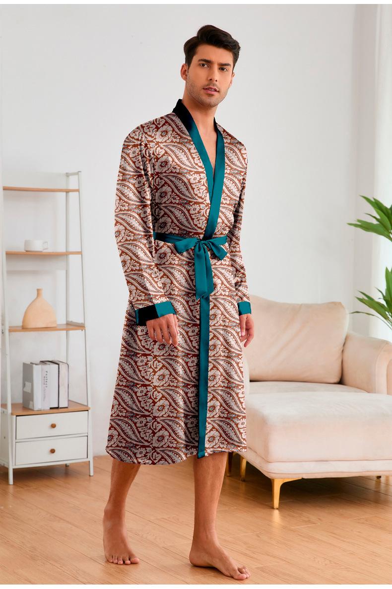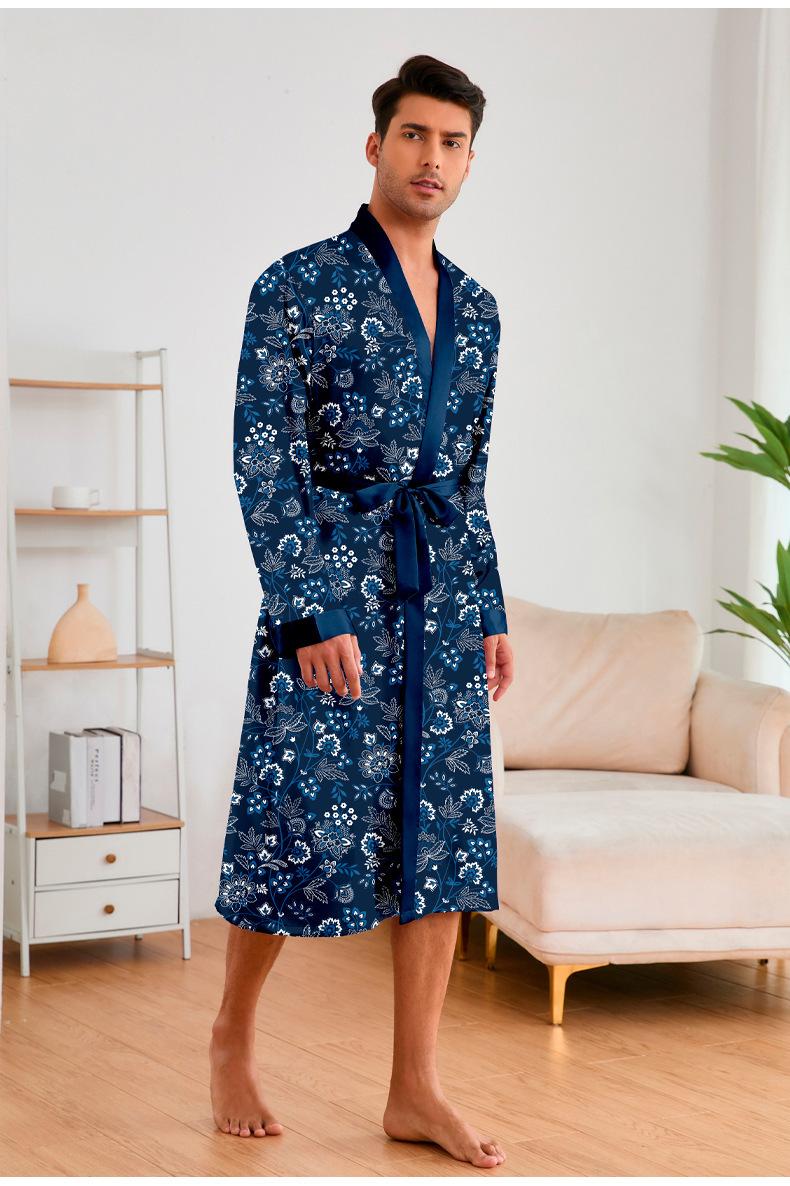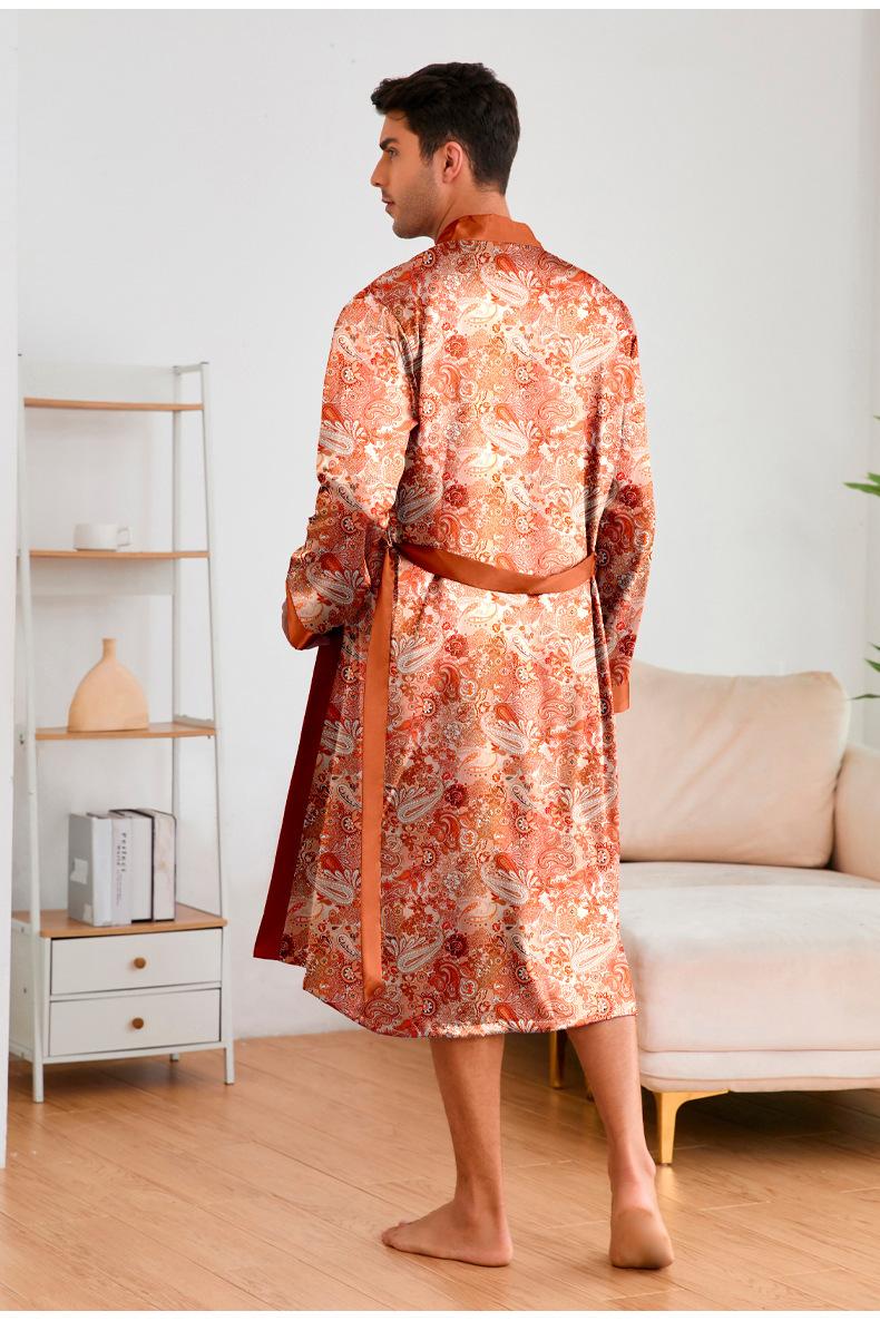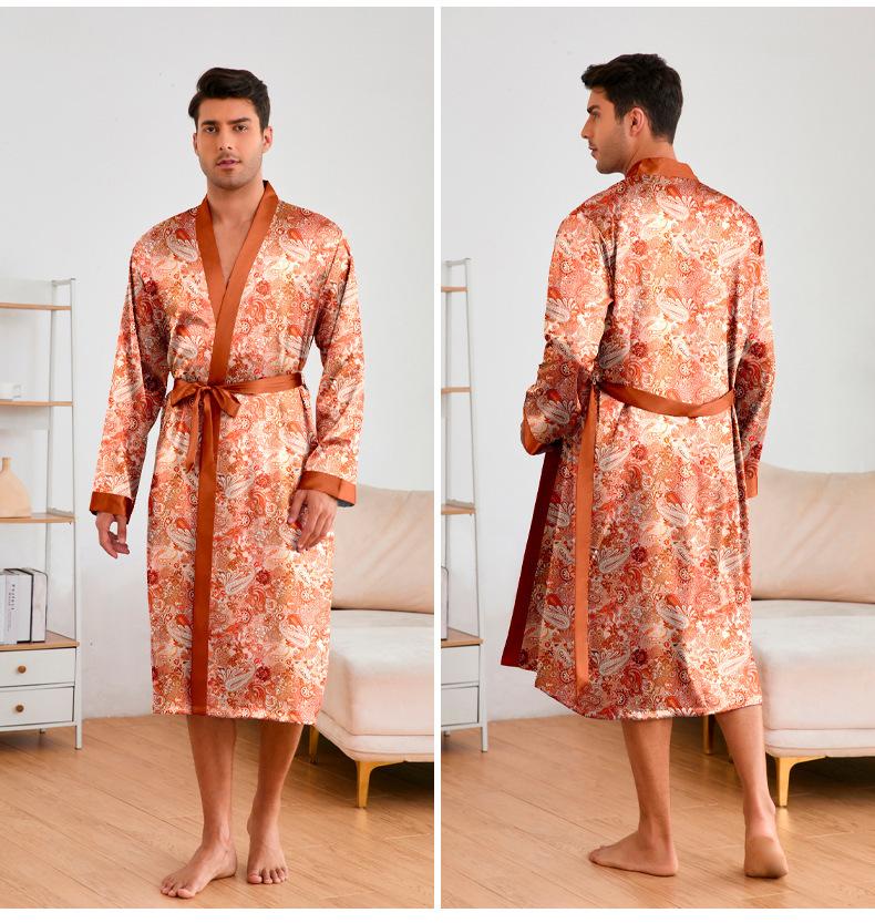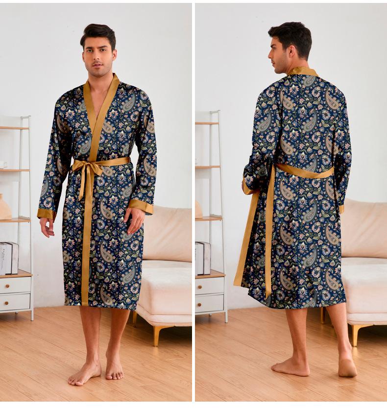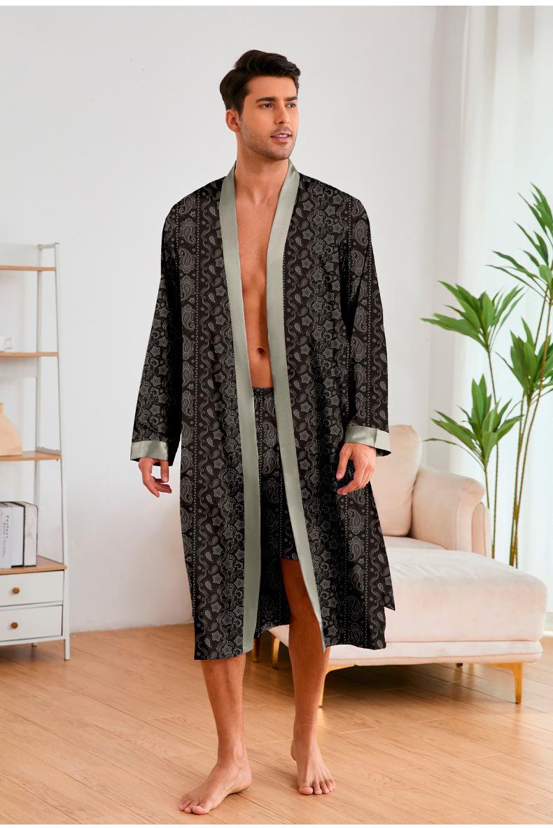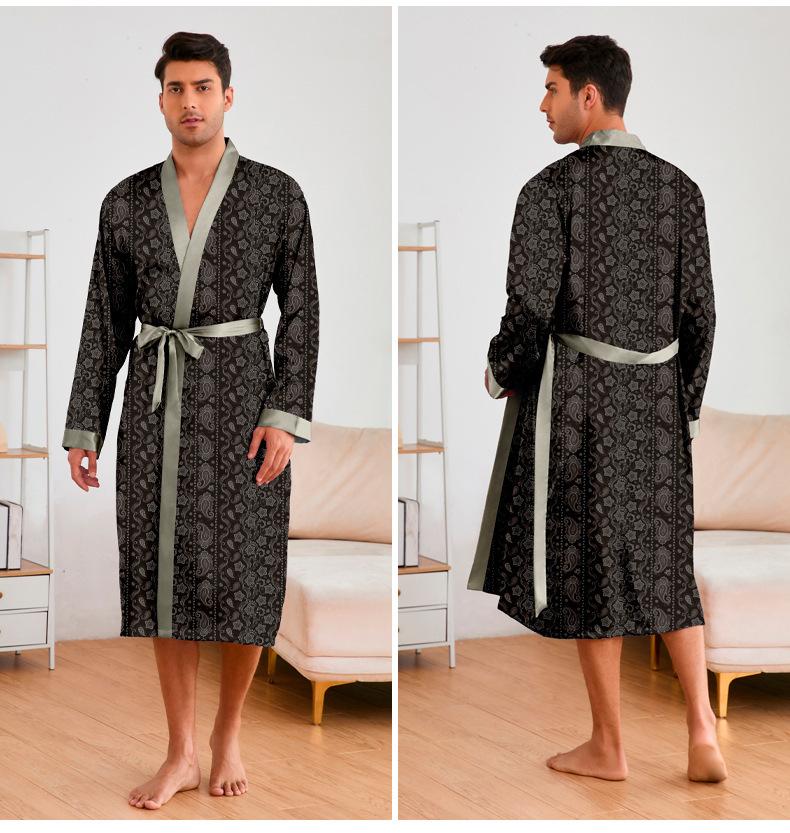 Yaoting Comercio Exterior Transfronterizo Bata Europea y Americana Pijama de Seda de Hielo Bata de Manga Larga para Hombre Albornoz Ropa para el Hogar TZ22290