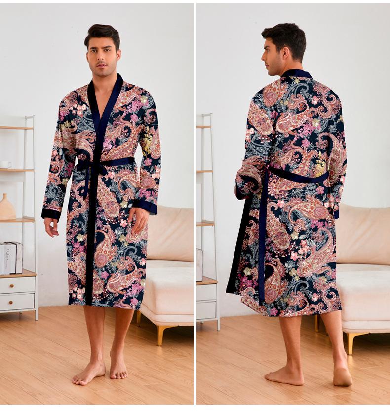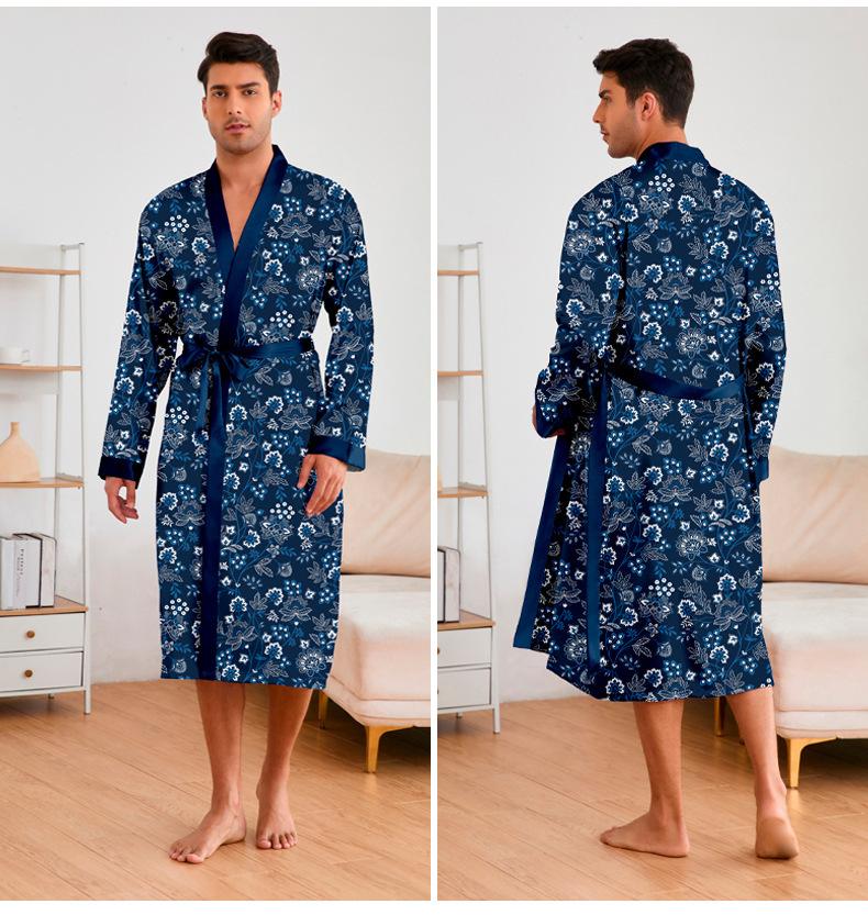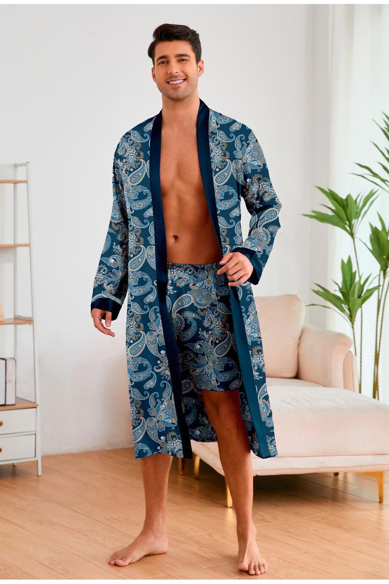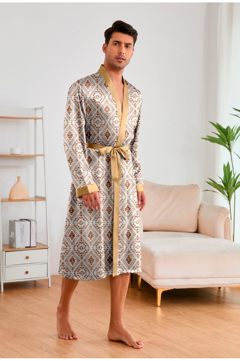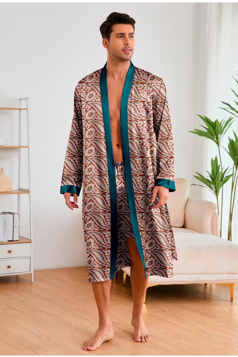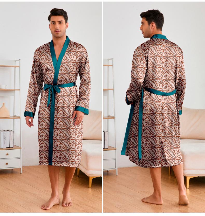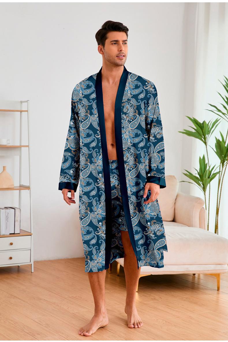 Yaoting Comercio Exterior Transfronterizo Bata Europea y Americana Pijama de Seda de Hielo Bata de Manga Larga para Hombre Albornoz Ropa para el Hogar TZ22290