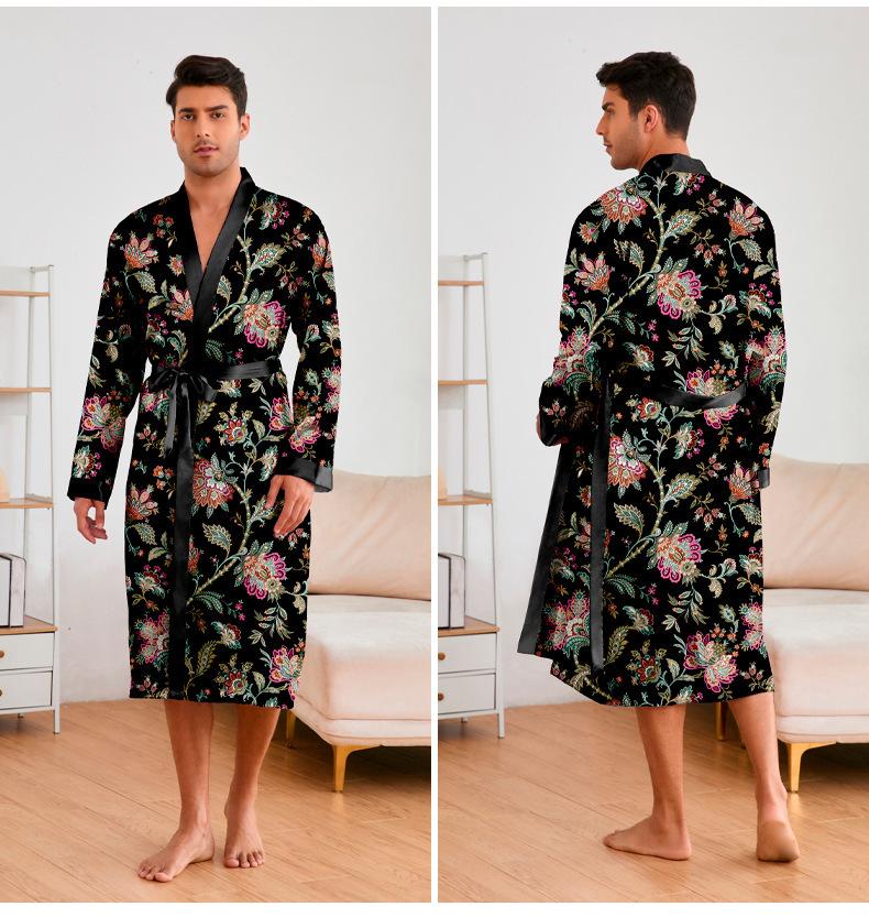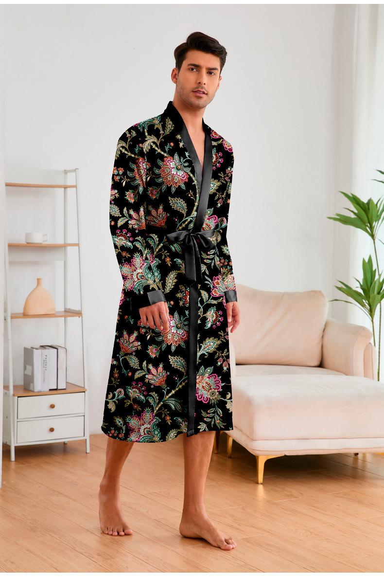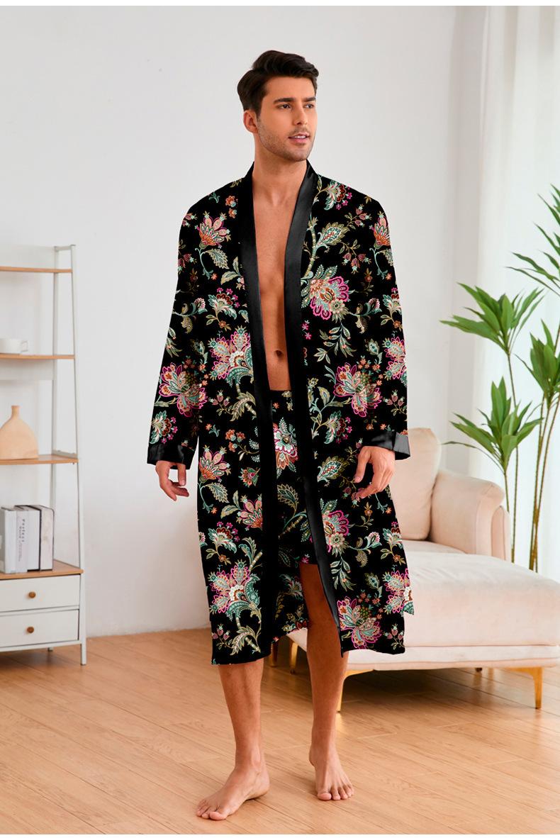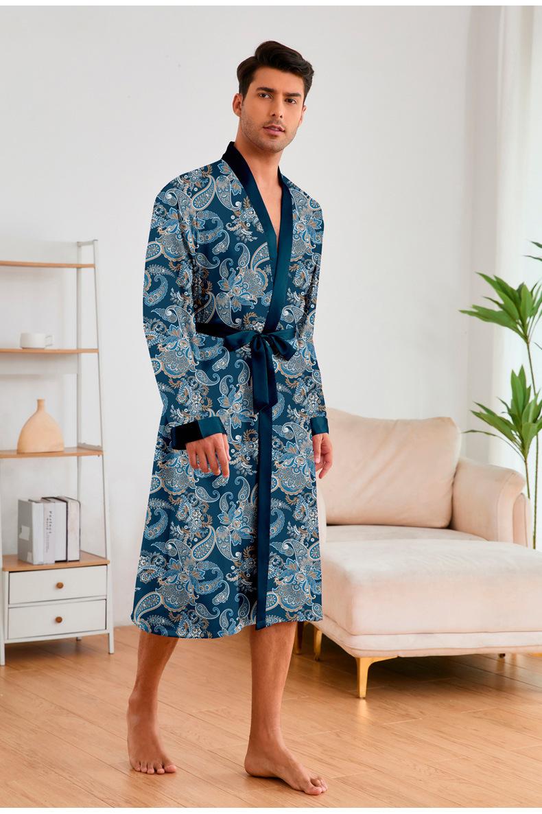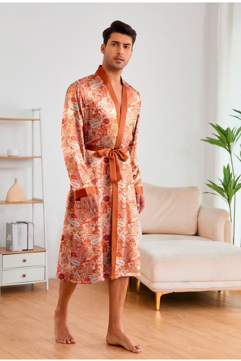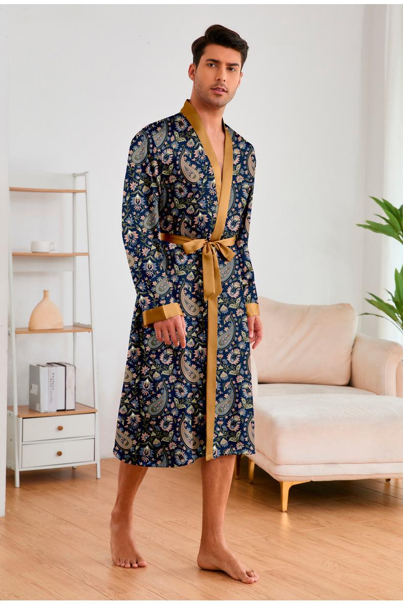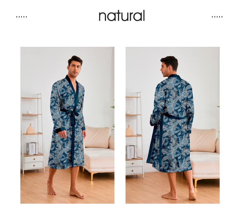 Yaoting Comercio Exterior Transfronterizo Bata Europea y Americana Pijama de Seda de Hielo Bata de Manga Larga para Hombre Albornoz Ropa para el Hogar TZ22290