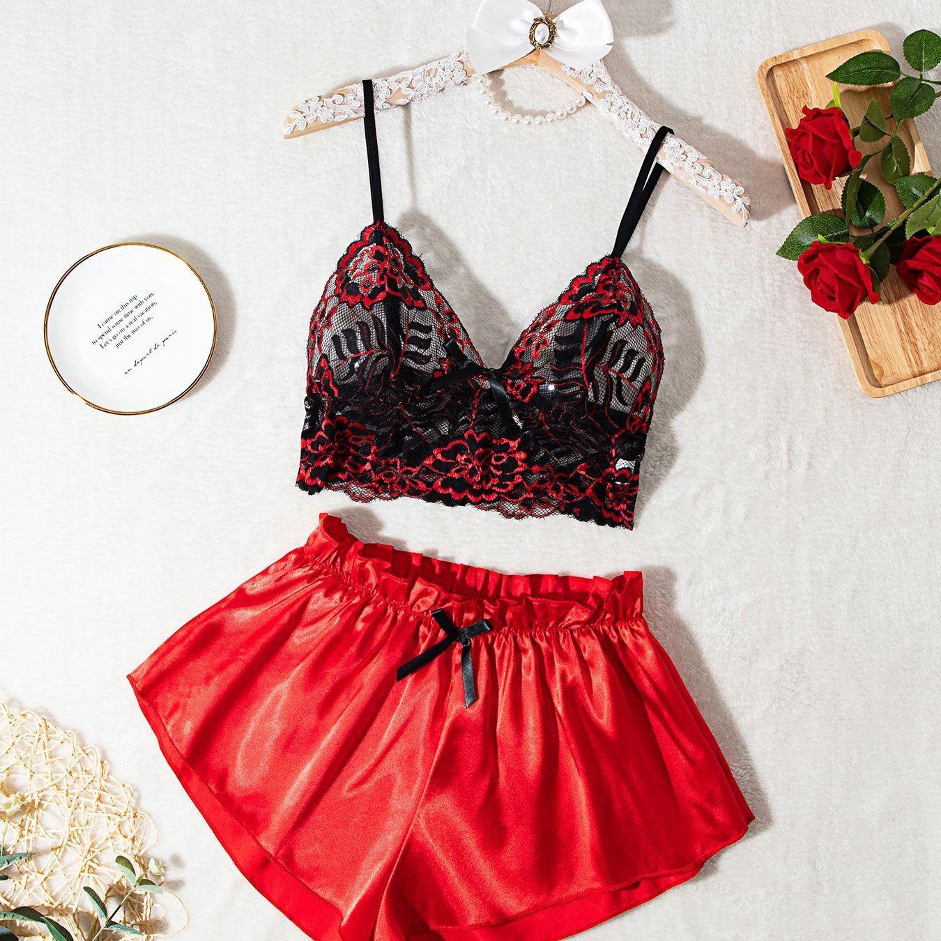 Compra Camisola Sexy de Encaje Shorts con Cordones Conjunto de Dos Piezas para el Hogar de Mujer Ventas Calientes Estilo Europeo y Americano Venta al por Mayor de Origen al por mayor en Joom.pro