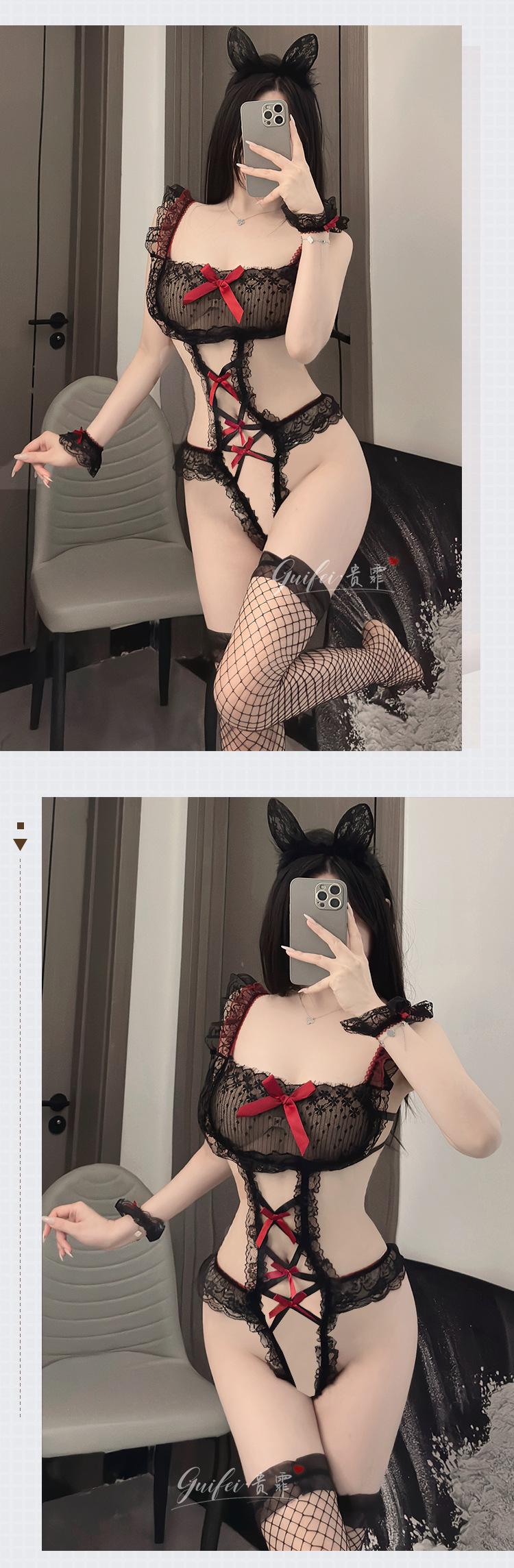 Encaje Entrepierna Abierta Atar Erotismo Tentación Broma Pasión Deseo Puro Lindo Set de Uniforme de Sirvienta