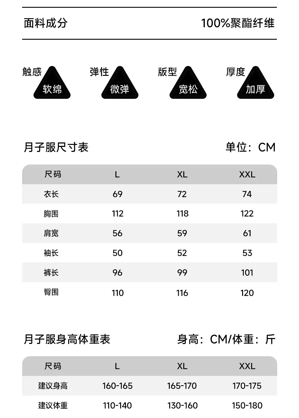 L size (110-140 pounds), XL (130-160 catties), XXL (150-180 catties)