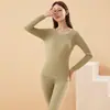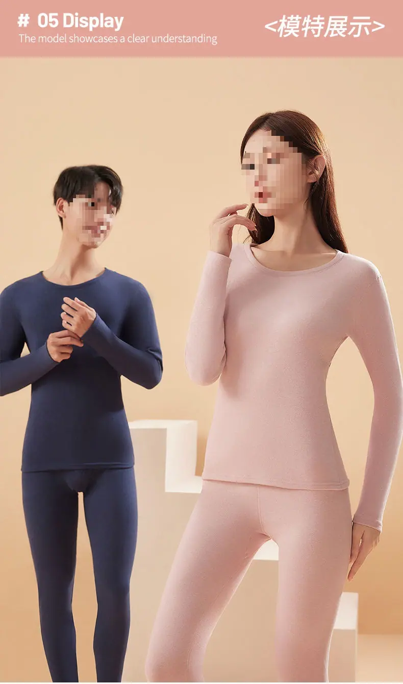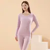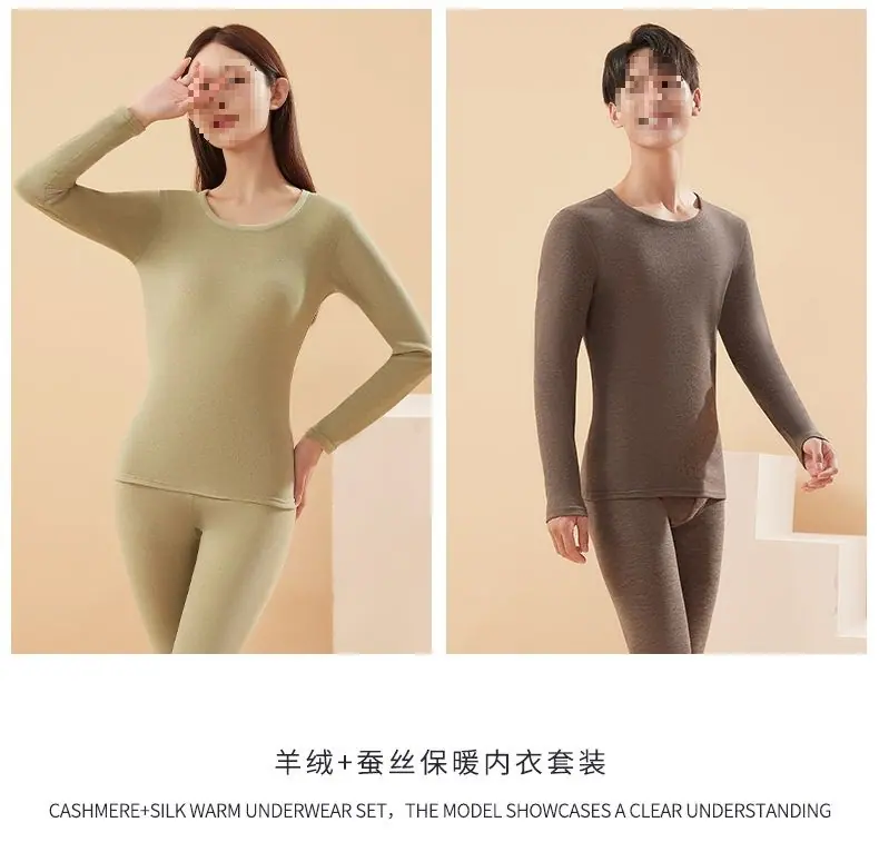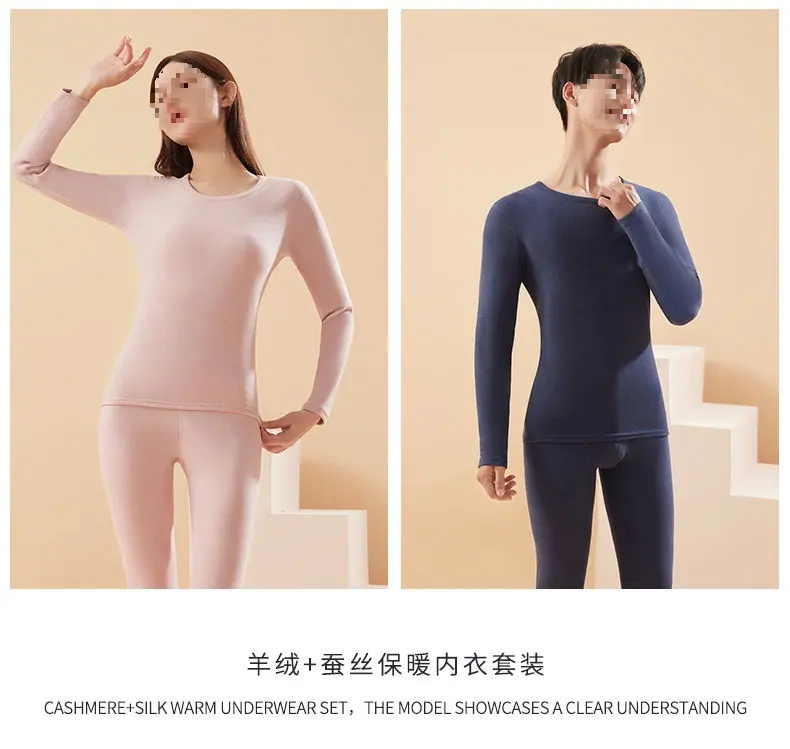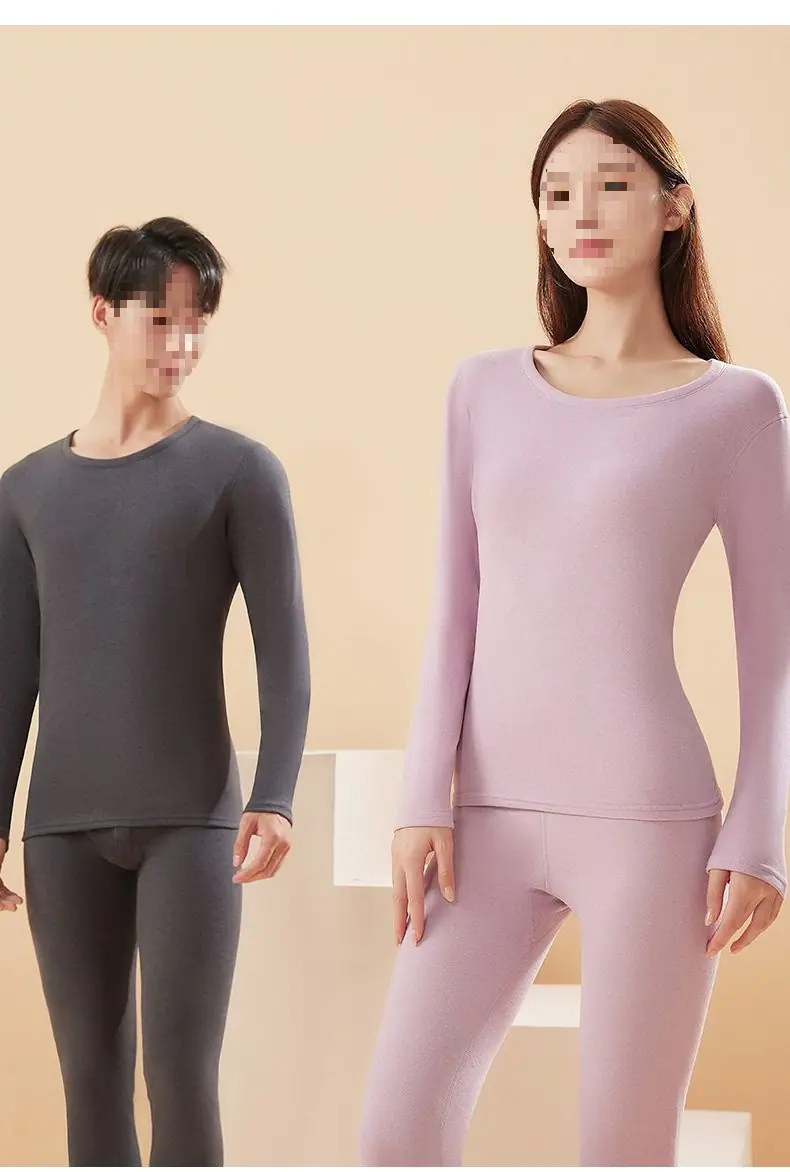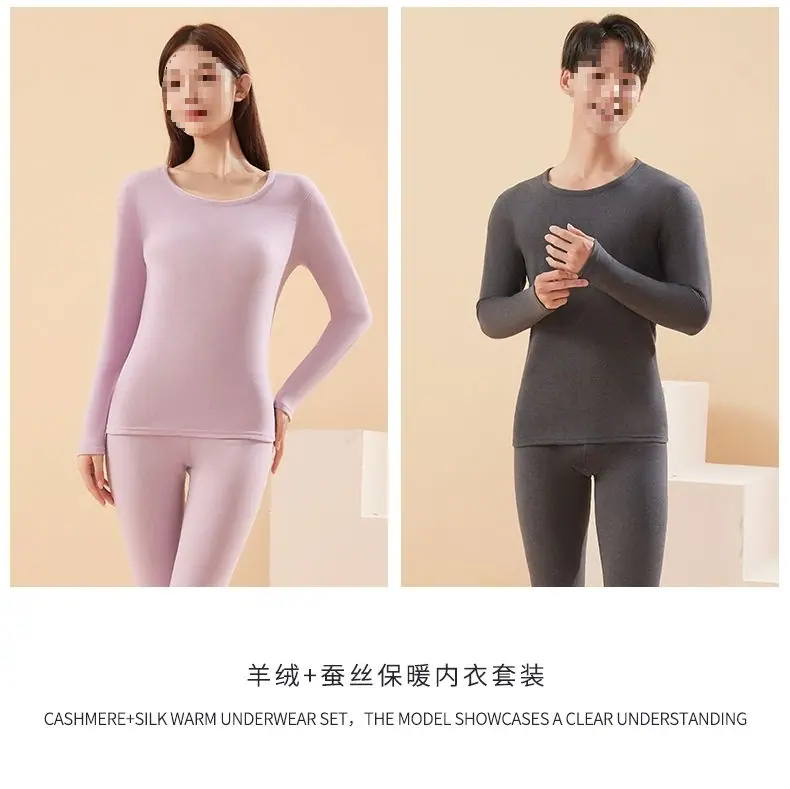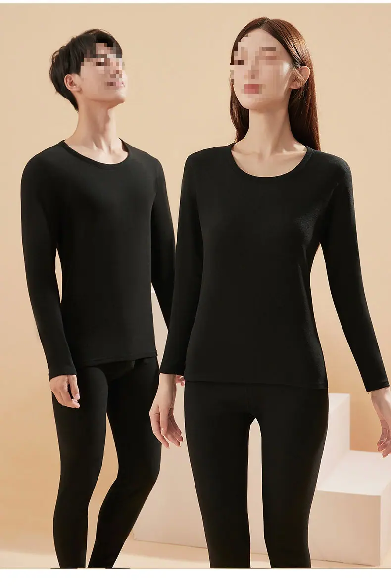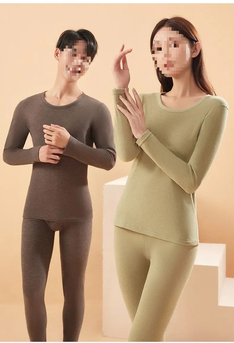 Conjunto de Ropa Interior Cálida de Lana y Seda para Pareja Otoño Invierno Camiseta Térmica y Calzoncillos Capa Base Adelgazante Sin Costuras para Hombre y Mujer