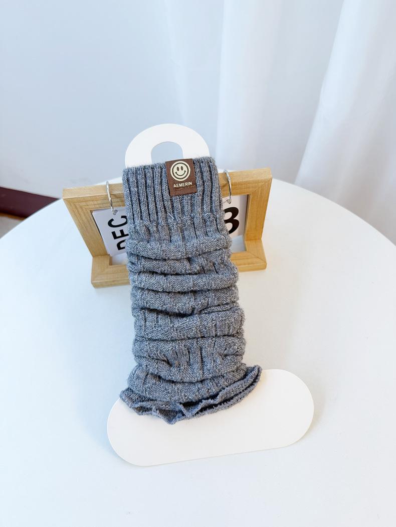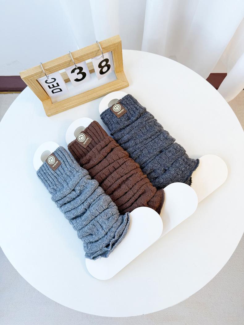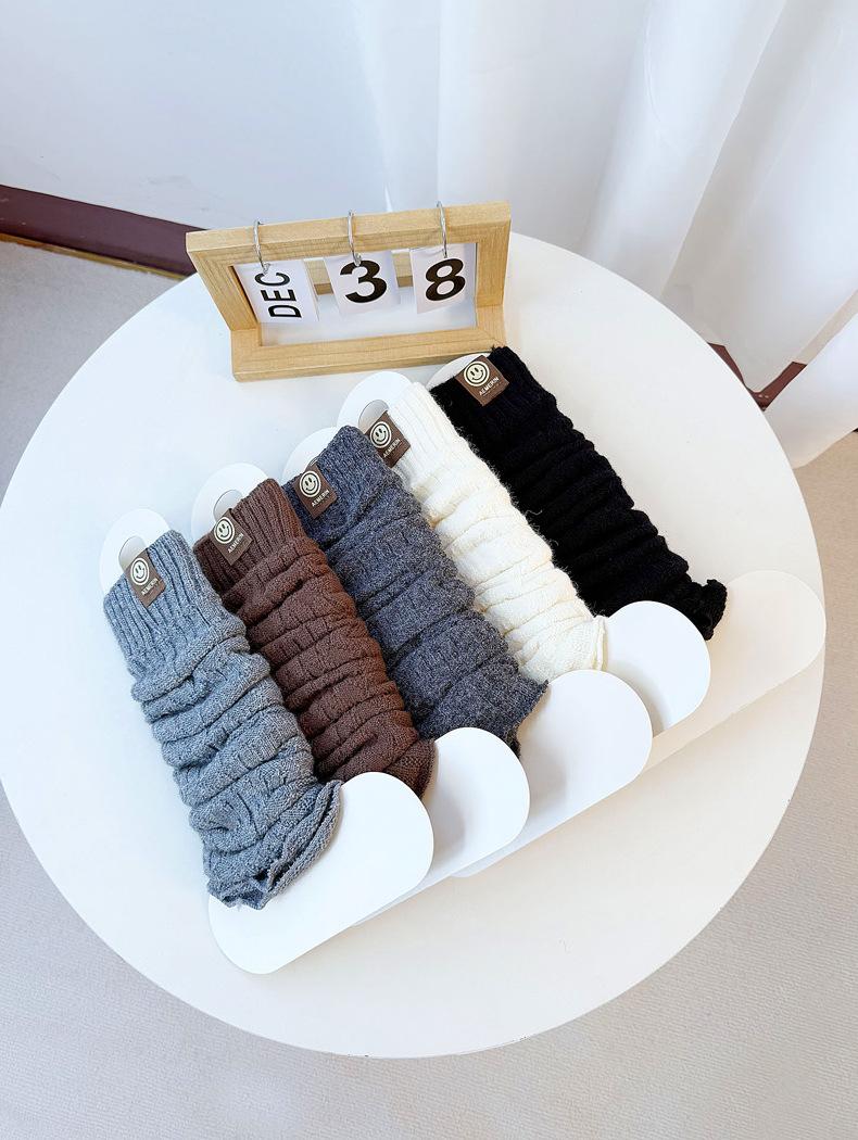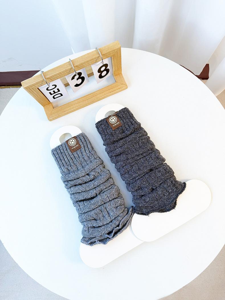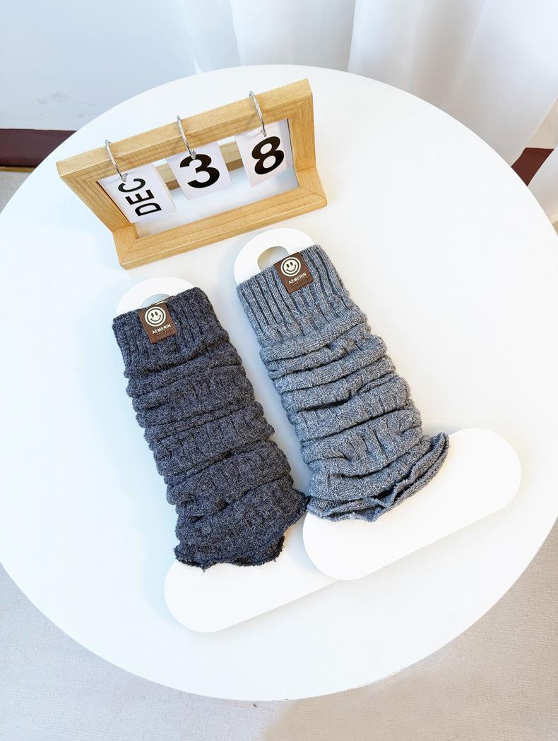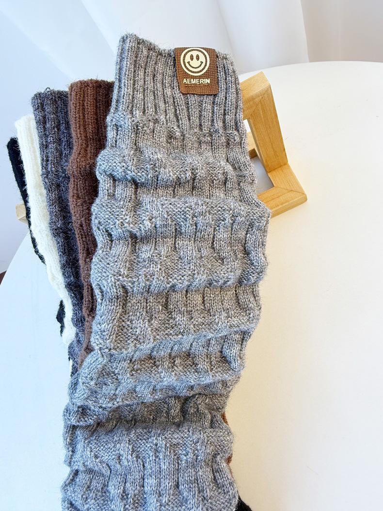 Calentadores de piernas de punto trenzado de cable de otoño e invierno estilo JK calcetines hasta media pantorrilla con cara sonriente calcetines holgados cálidos de punto calcetines de lana beige japoneses de punto grueso