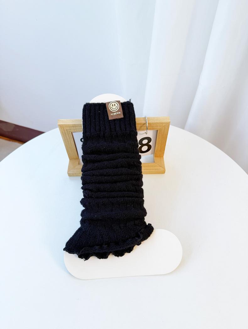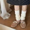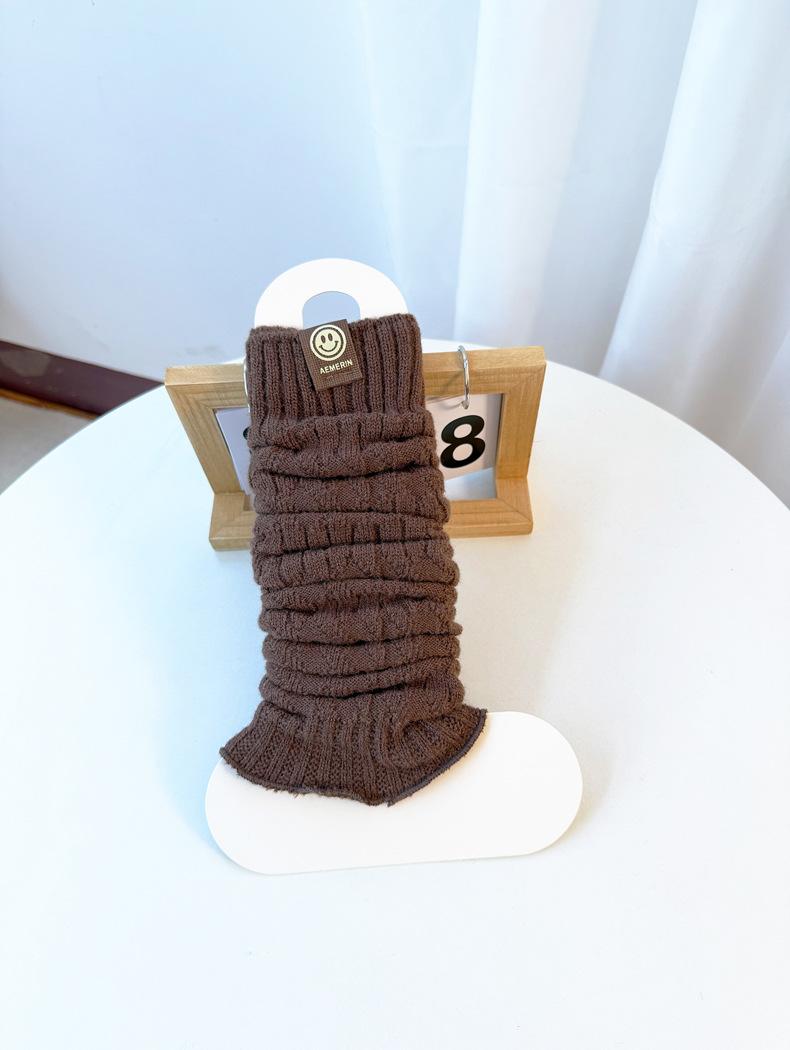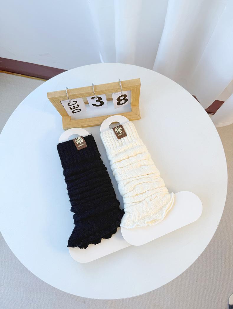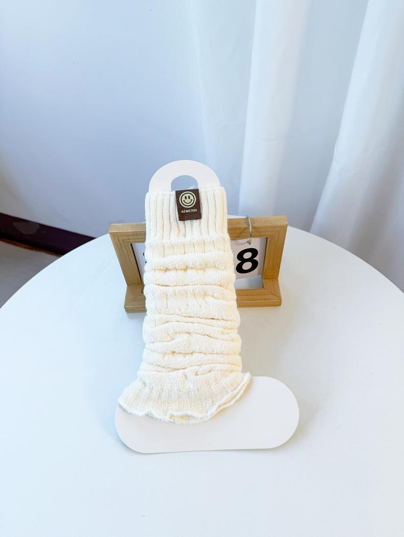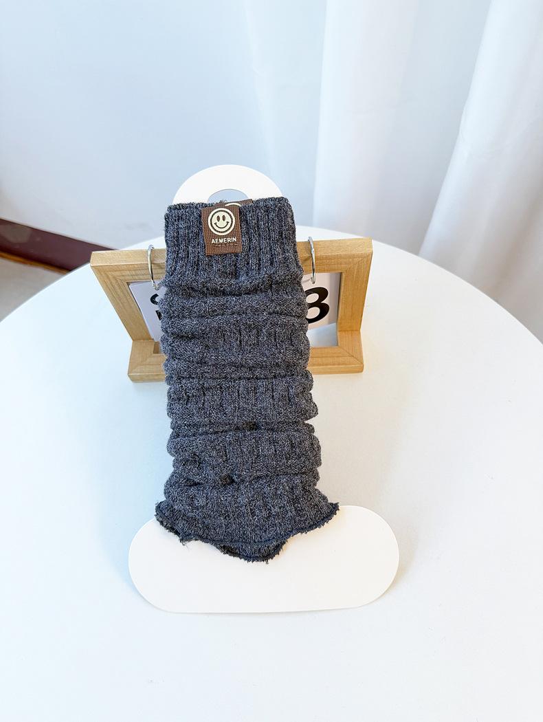 Calentadores de piernas de punto trenzado de cable de otoño e invierno estilo JK calcetines hasta media pantorrilla con cara sonriente calcetines holgados cálidos de punto calcetines de lana beige japoneses de punto grueso