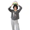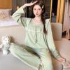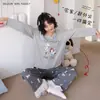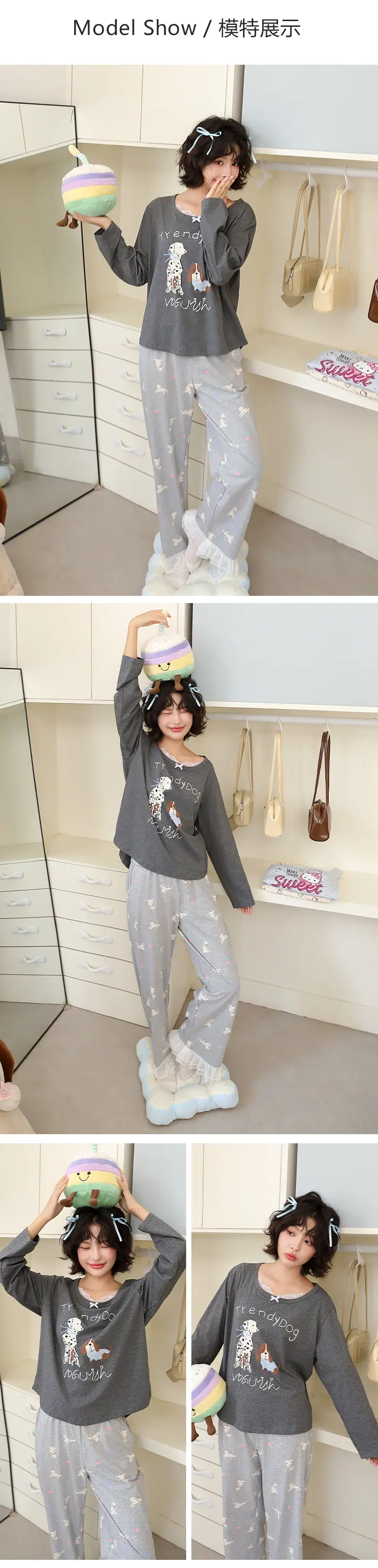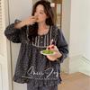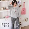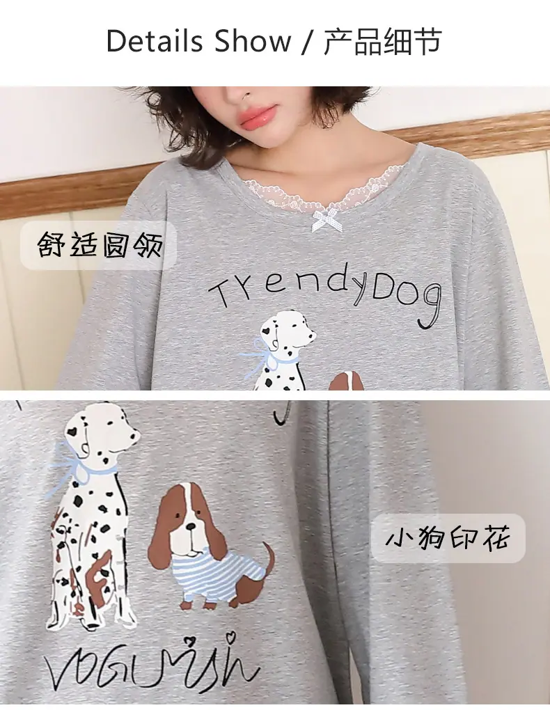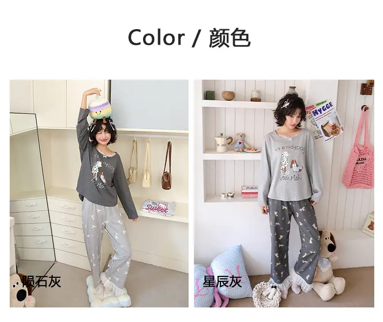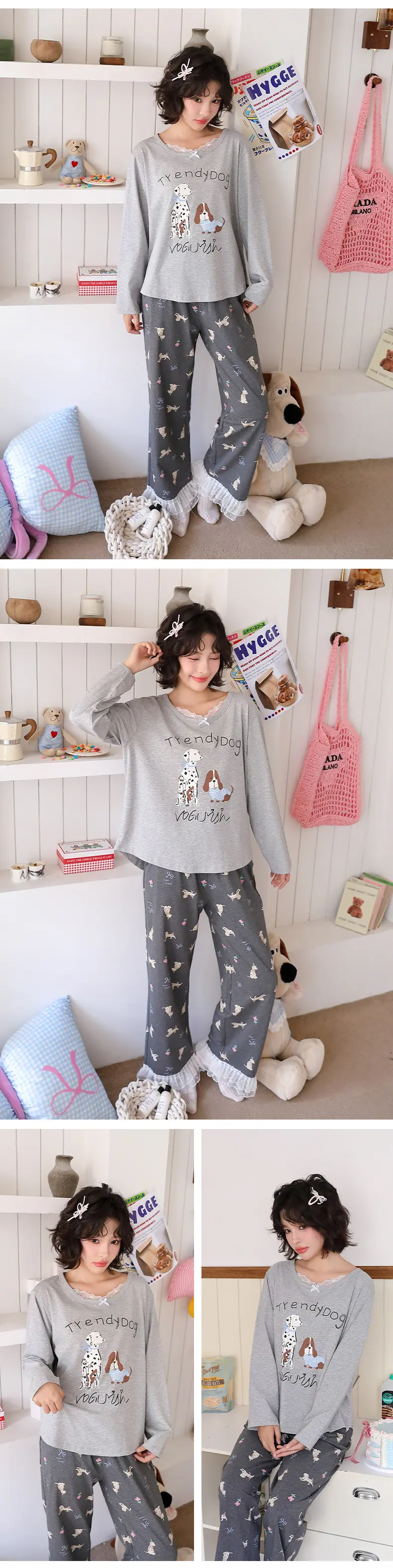 Pijama de Otoño para Mujer Dulce Encaje Patrón de Cachorros Lazo Ropa para el Hogar Manga Larga Pantalón Largo Se Puede Usar Afuera Pijama Mujer