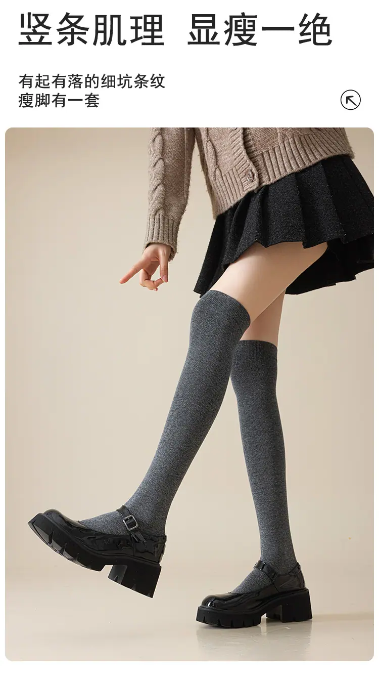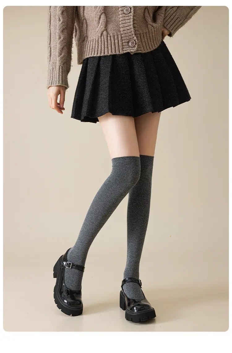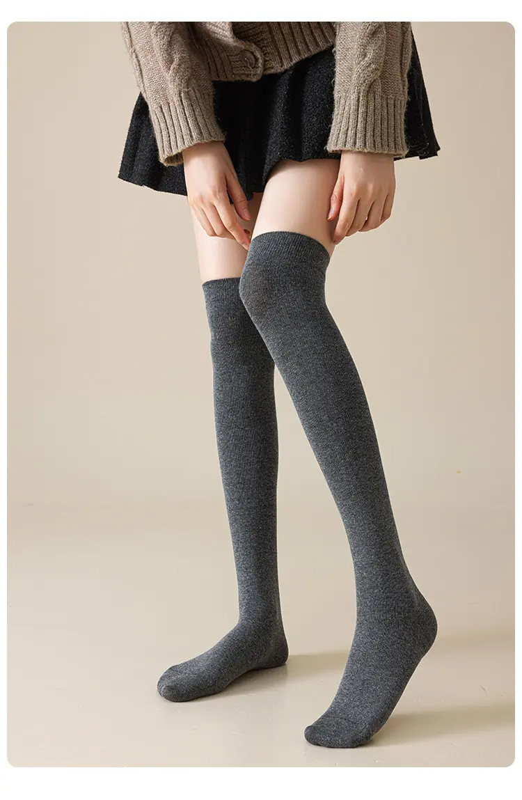 Calcetines de Presión para Mujer Otoño Invierno Calcetines por Encima de la Rodilla para Dama JK Adelgazantes Hasta el Muslo Antideslizantes Rodilleras Altas Japonesas Calcetines de Algodón Calcetines Largos