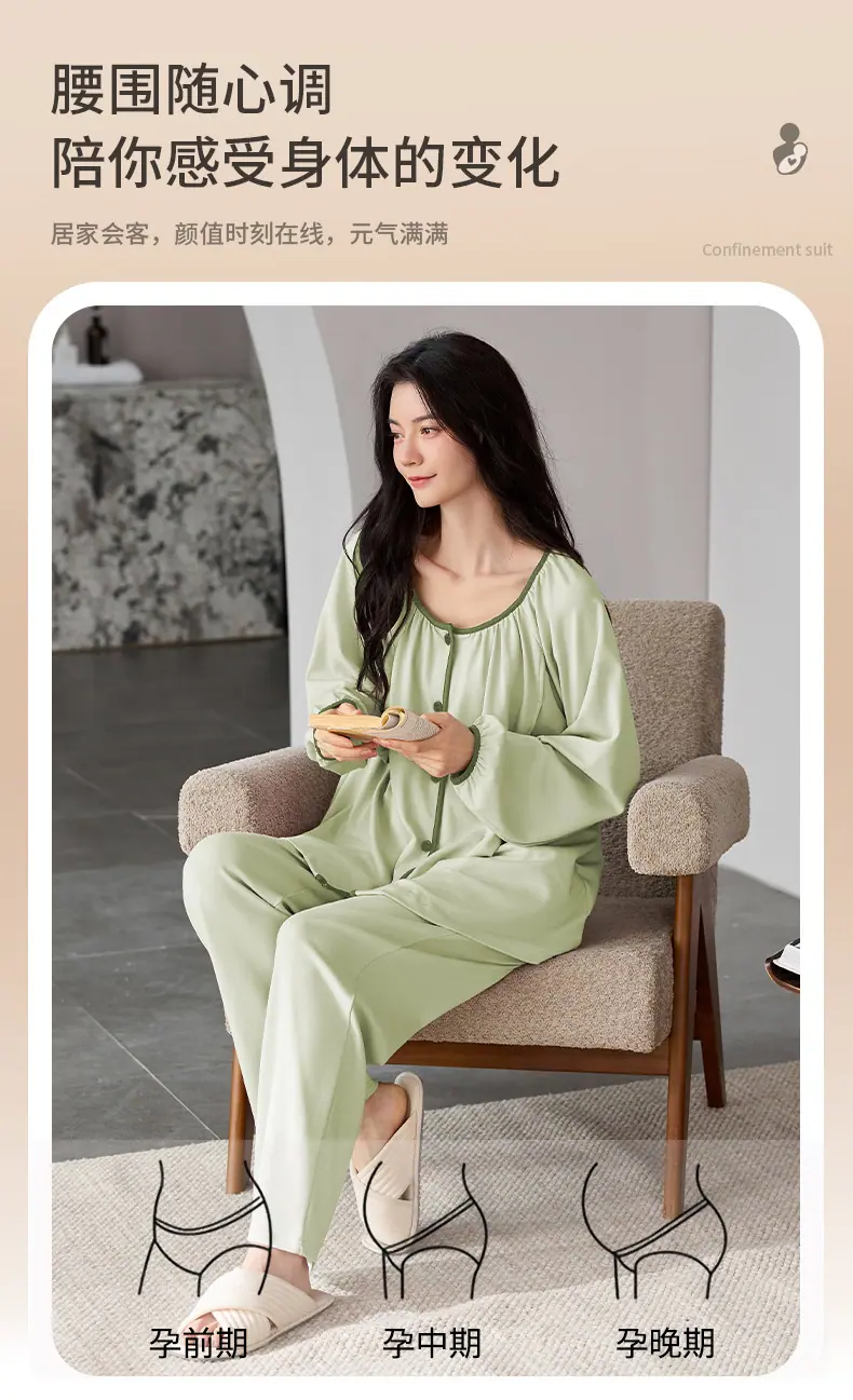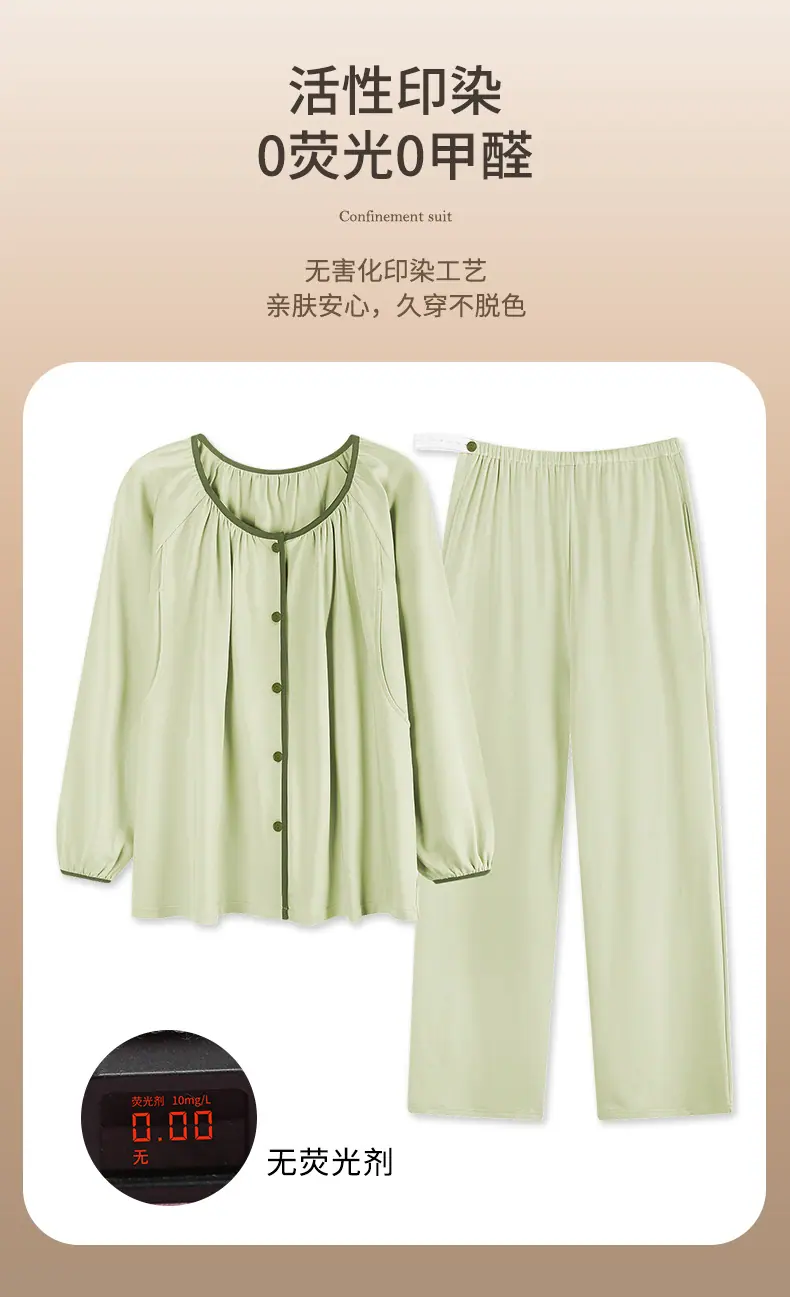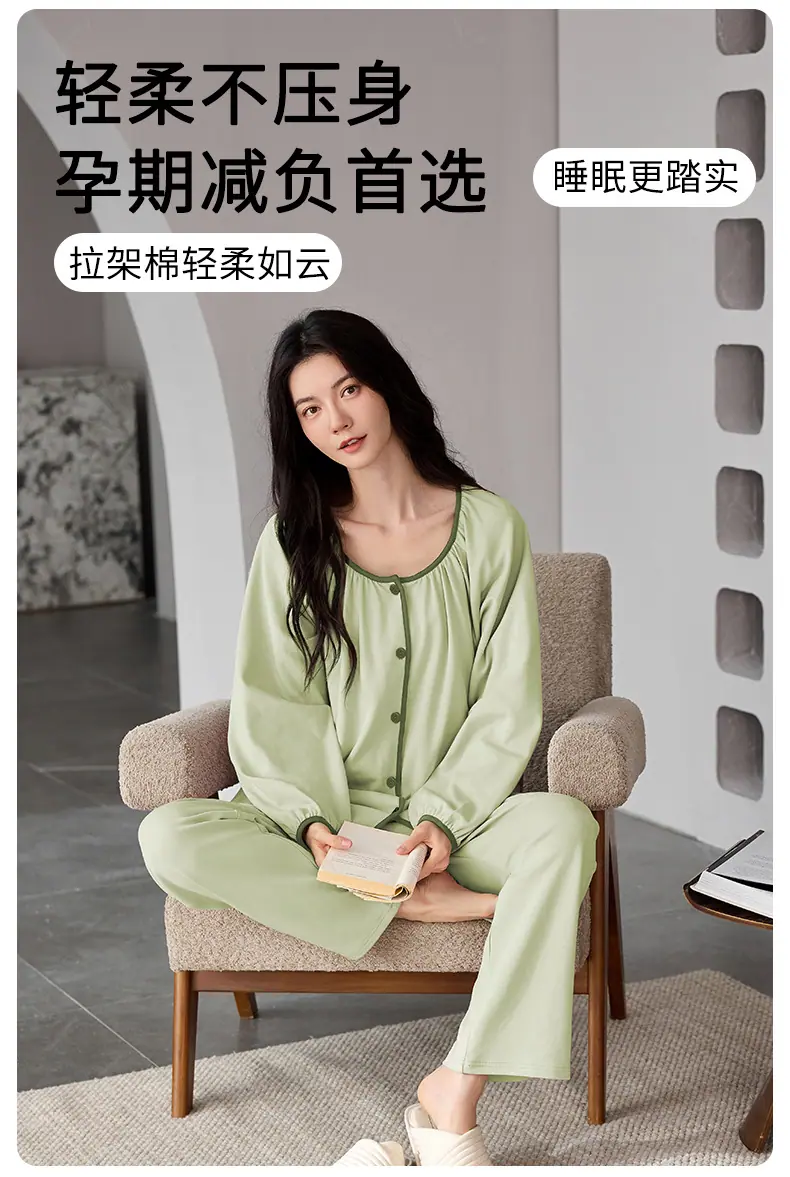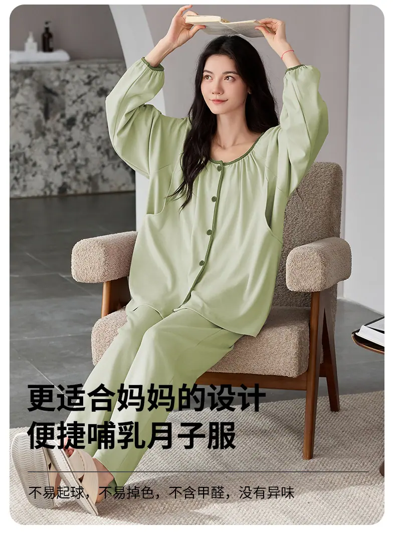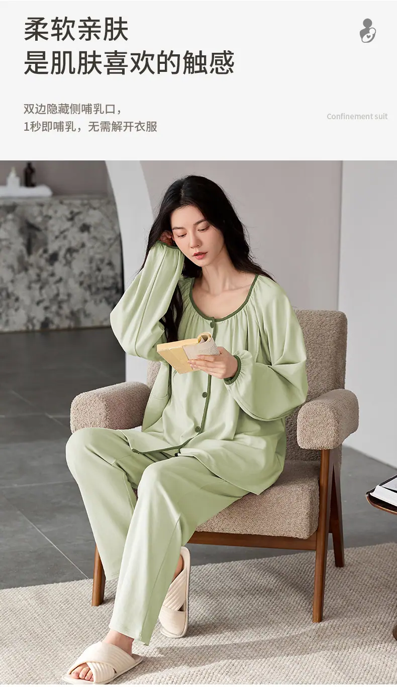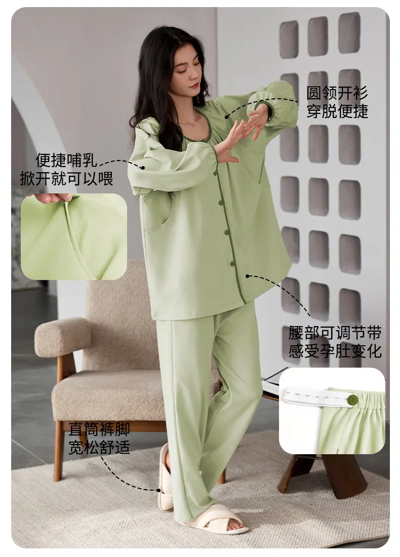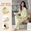 Feliz Luna 2025 Nueva Primavera y Otoño Algodón Puro Lycra Ropa de Maternidad Postparto Lactancia Color Sólido Ropa de Casa Pijama