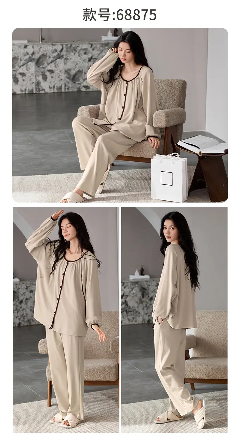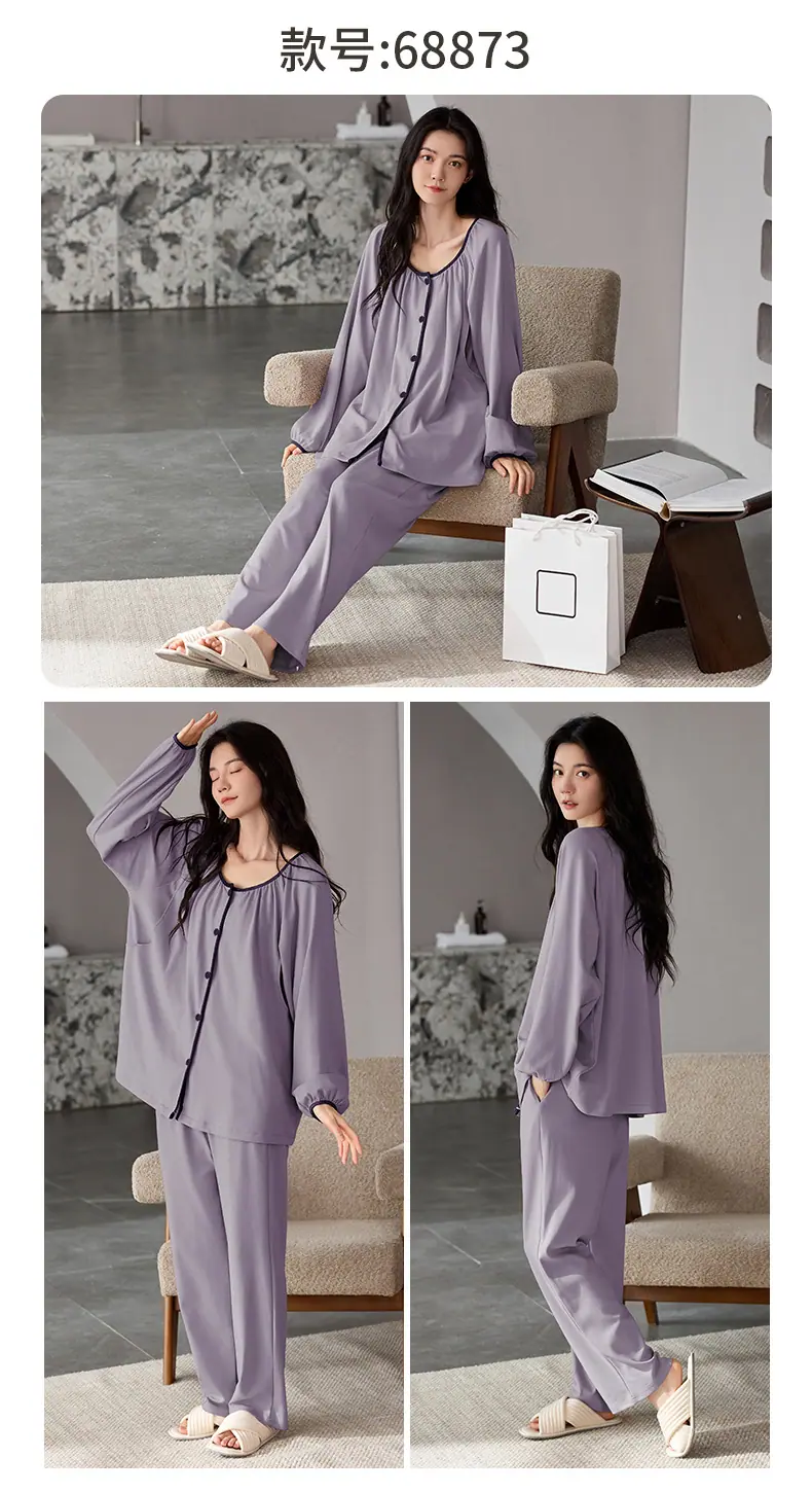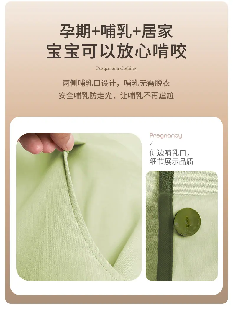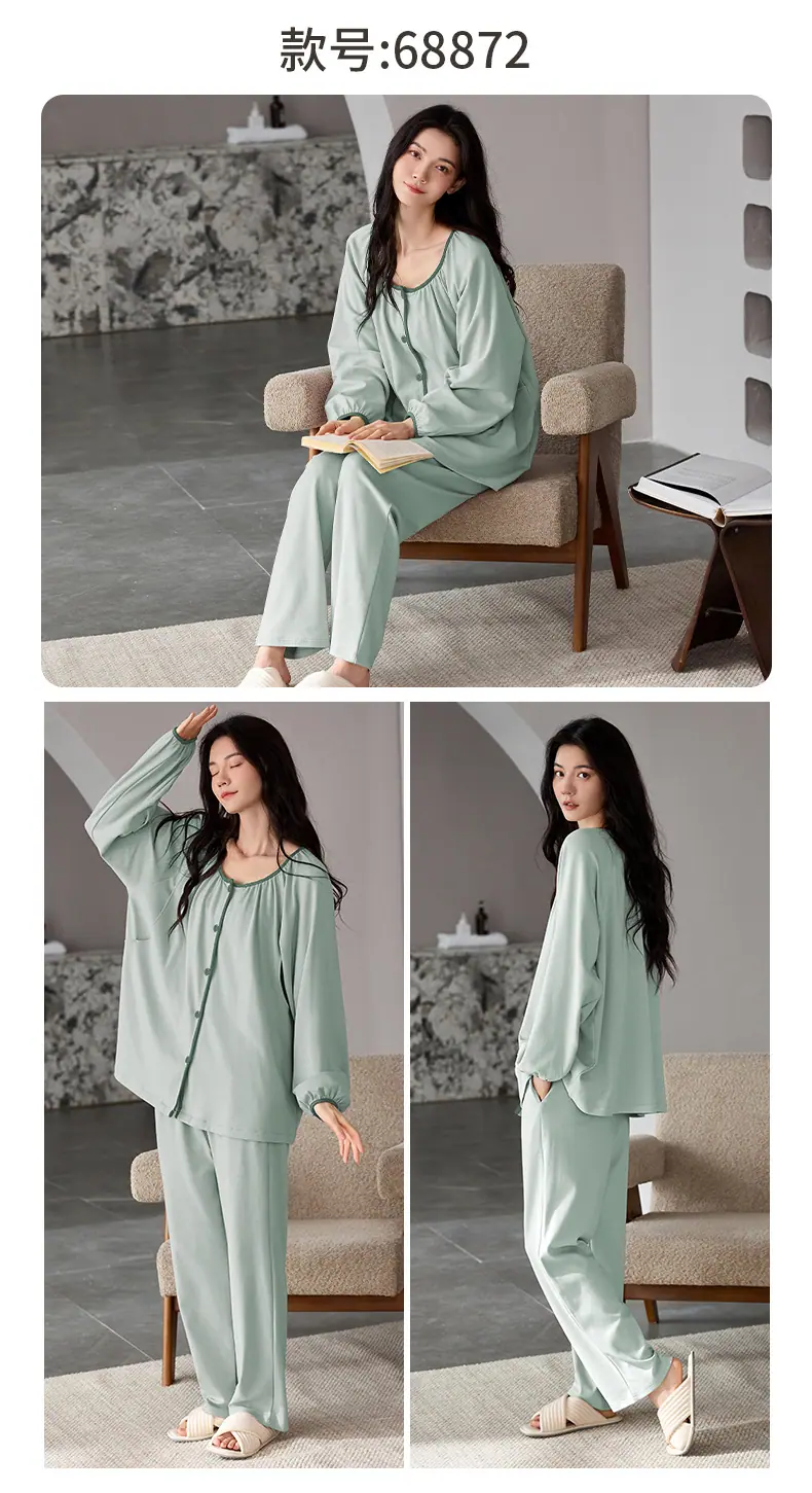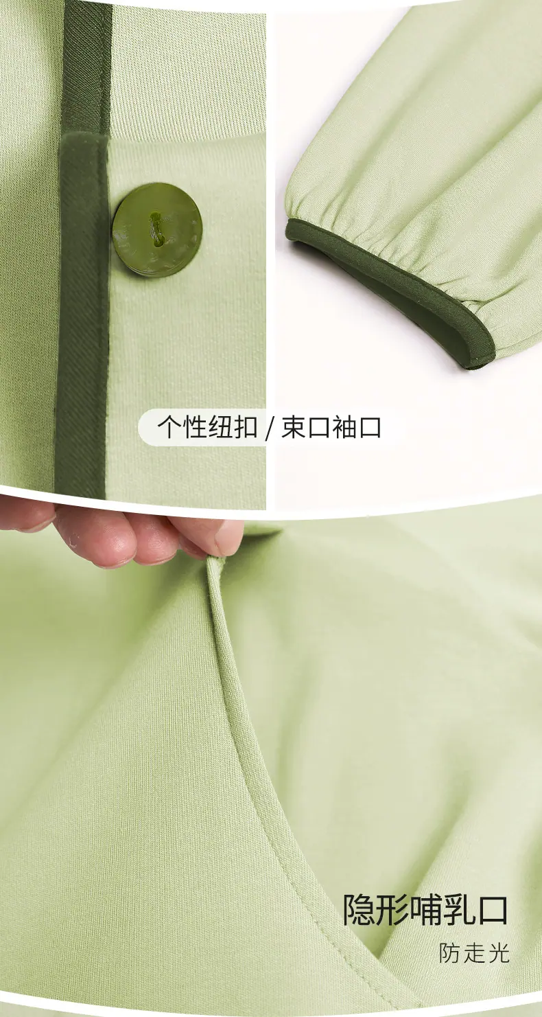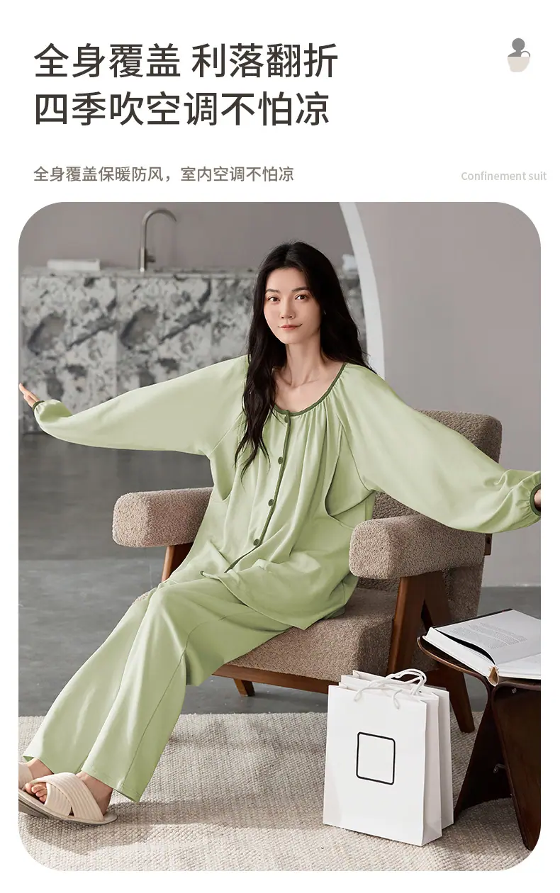 Feliz Luna 2025 Nueva Primavera y Otoño Algodón Puro Lycra Ropa de Maternidad Postparto Lactancia Color Sólido Ropa de Casa Pijama