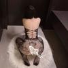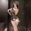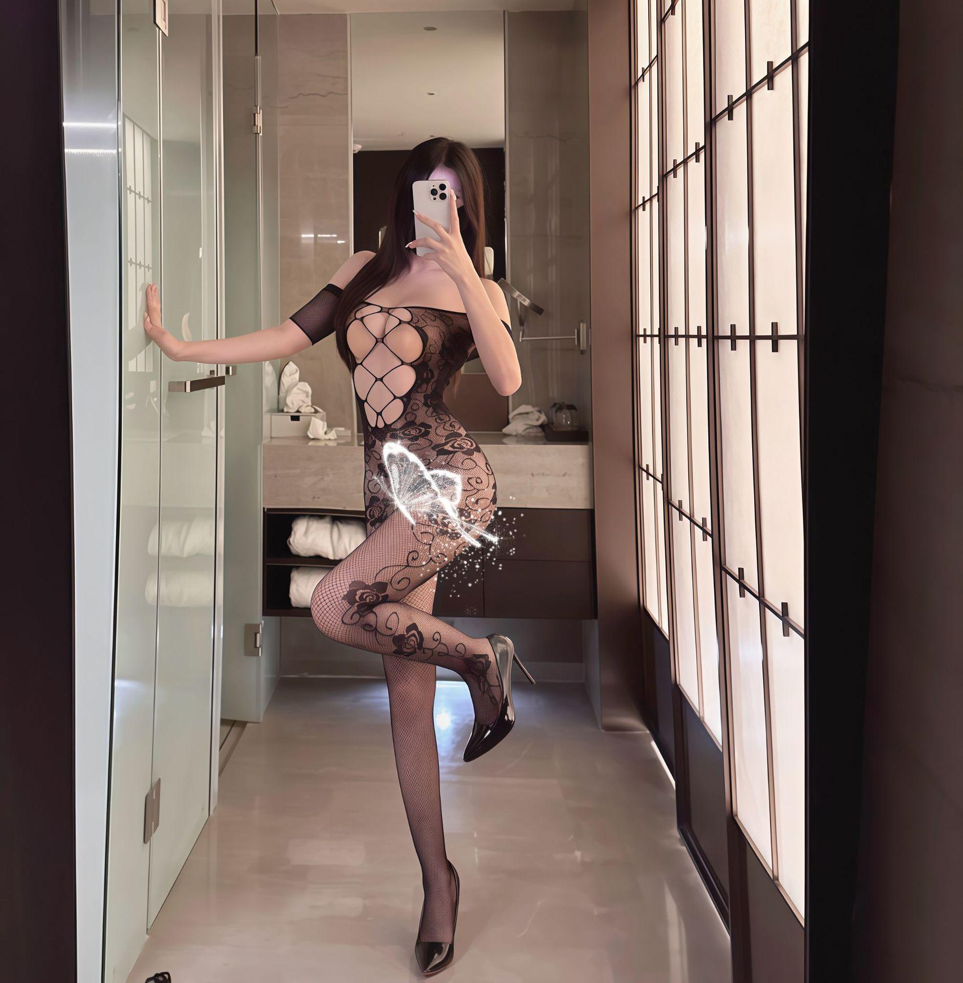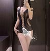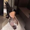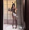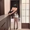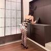 Bar de Club Nocturno Sexy Corte Bajo Halter Espalda Descubierta Recorte Body de Red de Pesca Negro Medias Transparente Medias de Red Pantimedias Tendencia