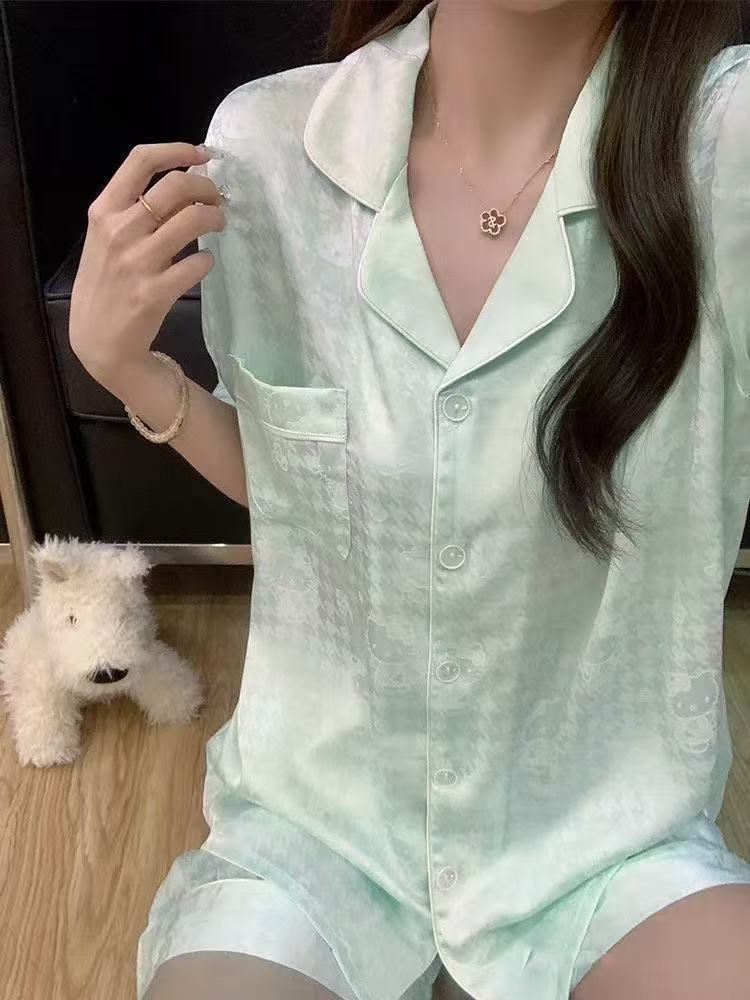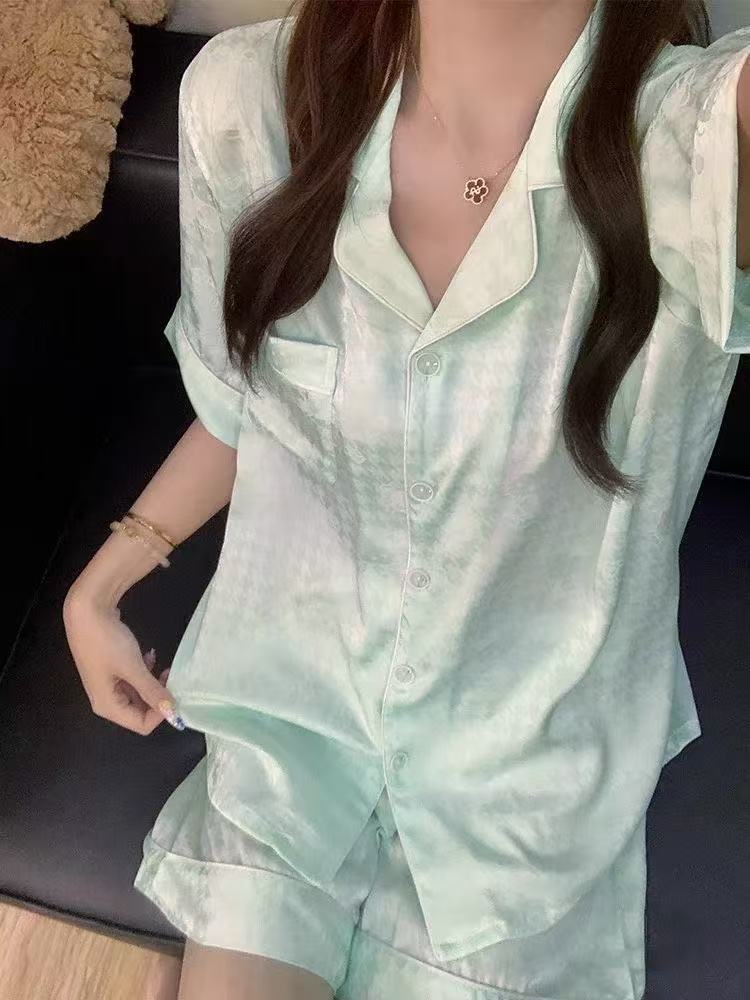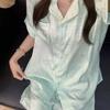 Pijama francés de seda de hielo de alta gama para mujer, verano nuevo, talla grande, fresco, manga corta, shorts, conjunto fino para estar en casa