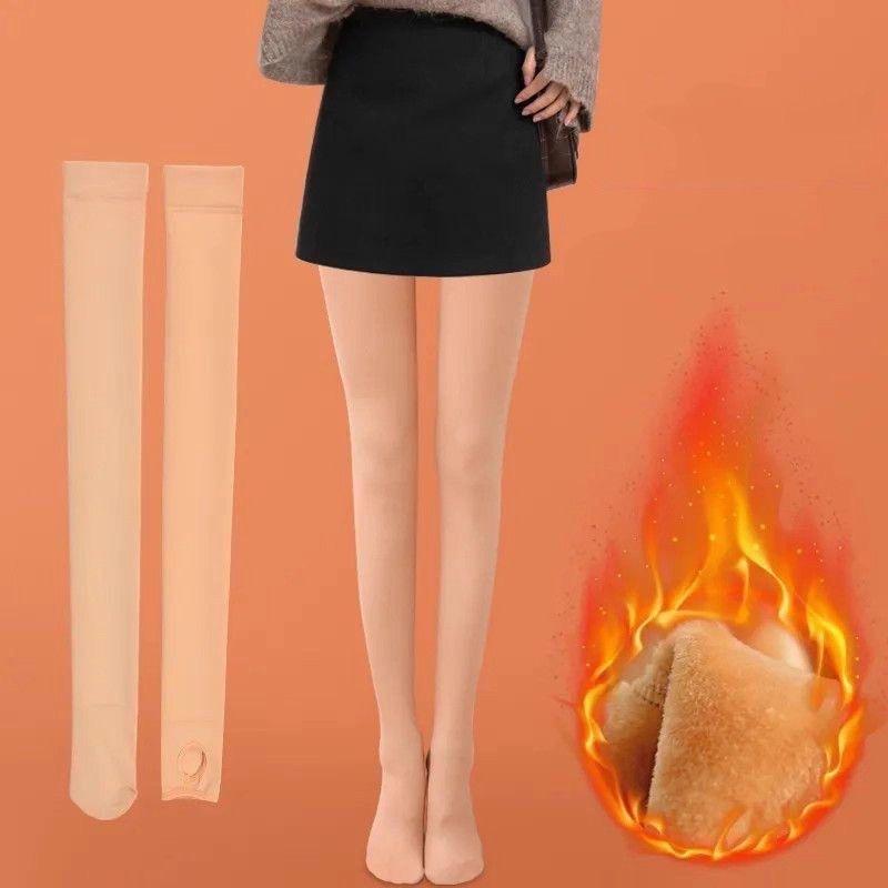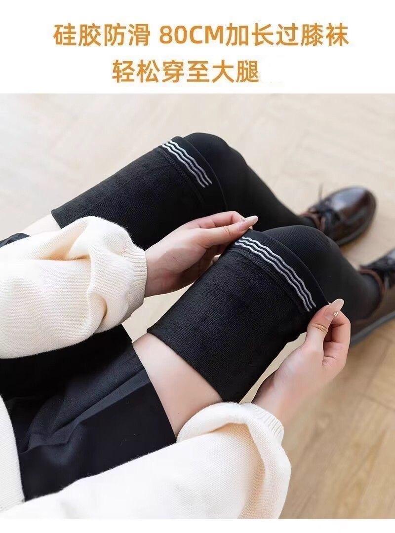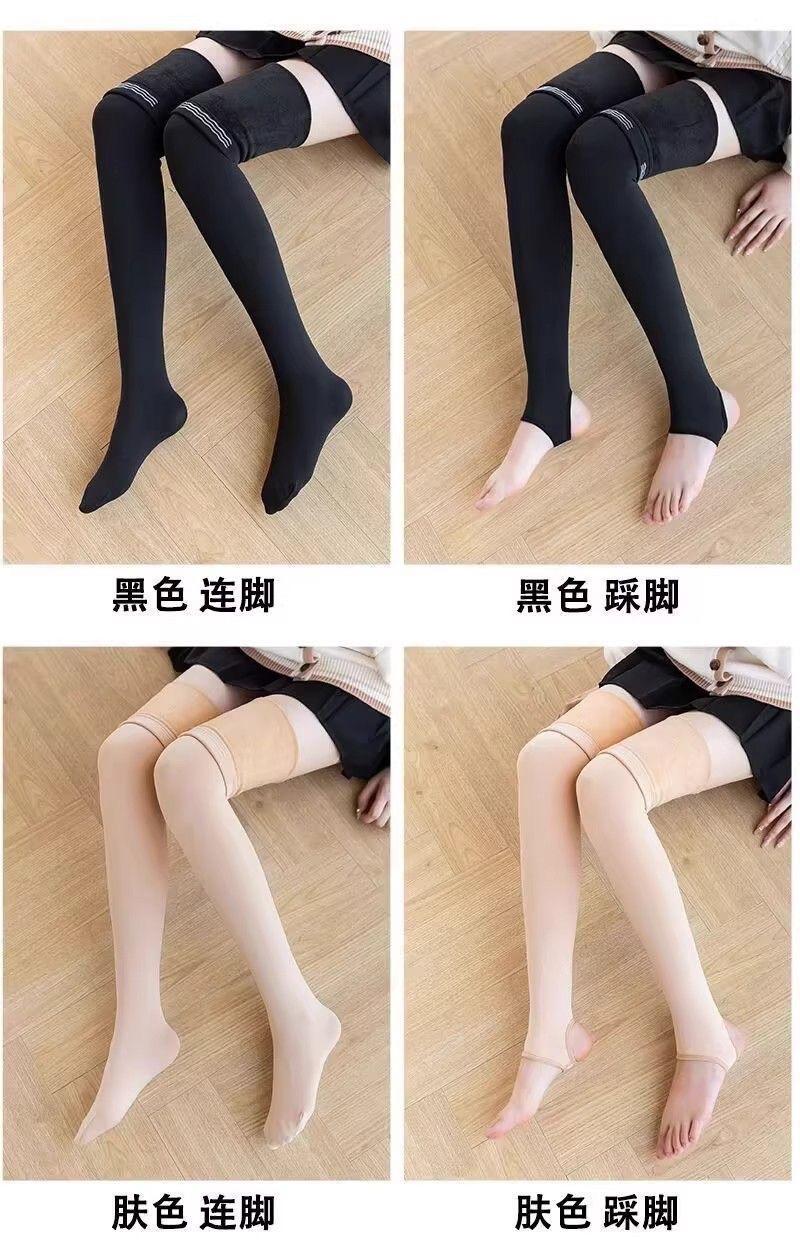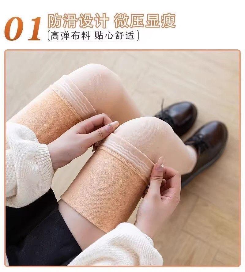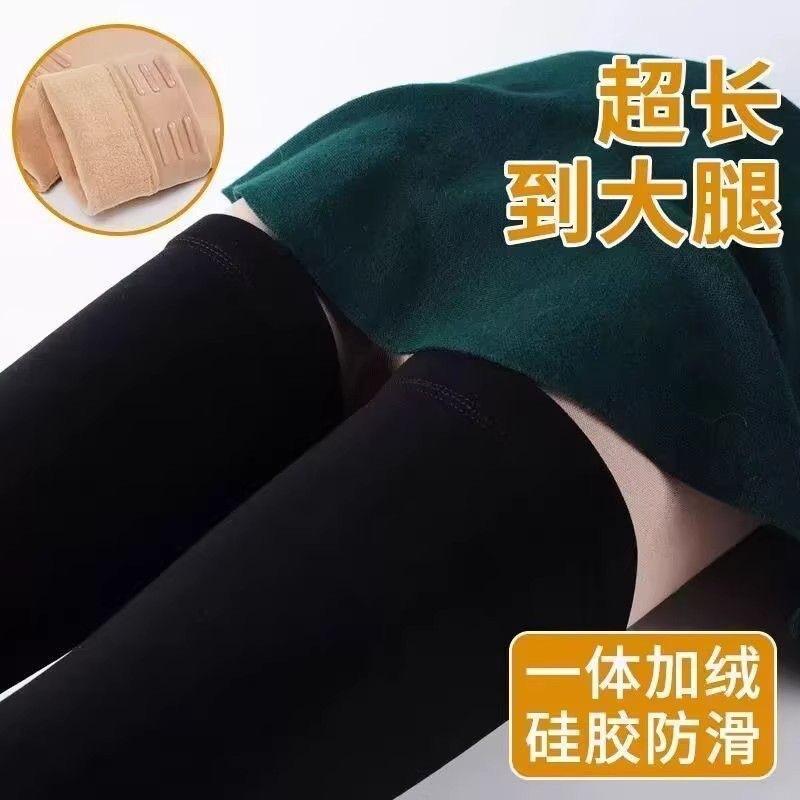 Otoño e invierno más terciopelo más grueso calcetines hasta el muslo mujer cálido silicona antideslizante negro color piel leggings con pie estribo fábrica