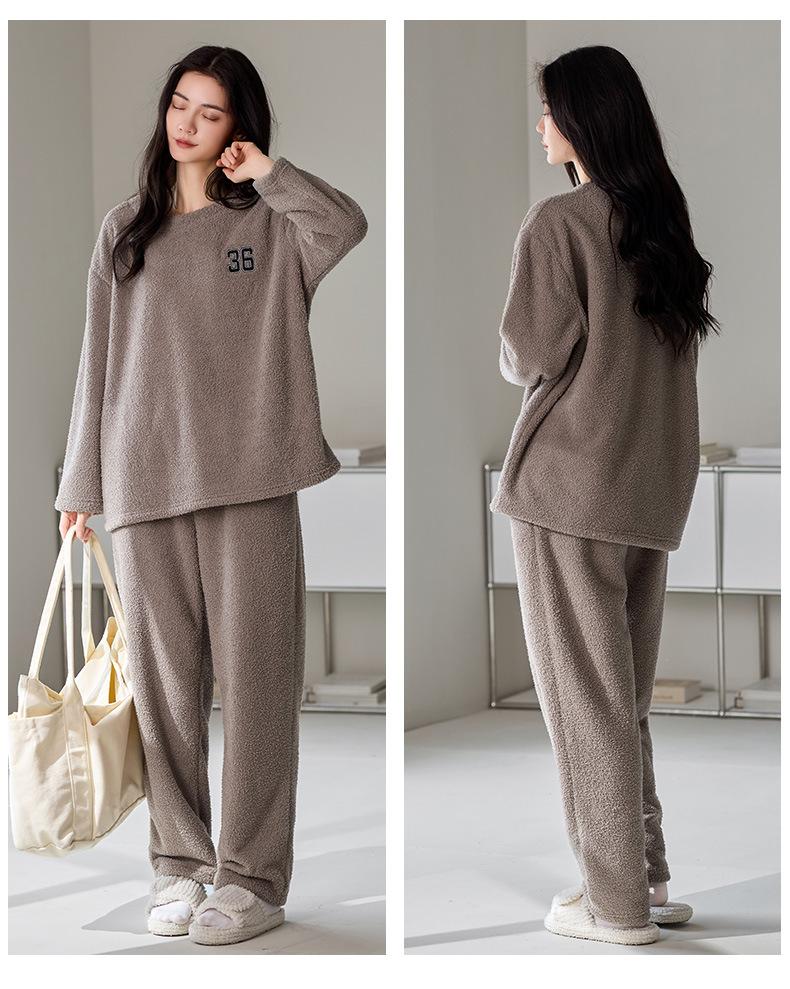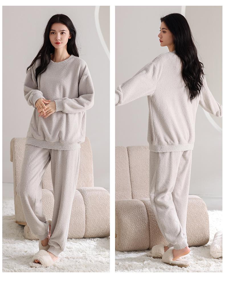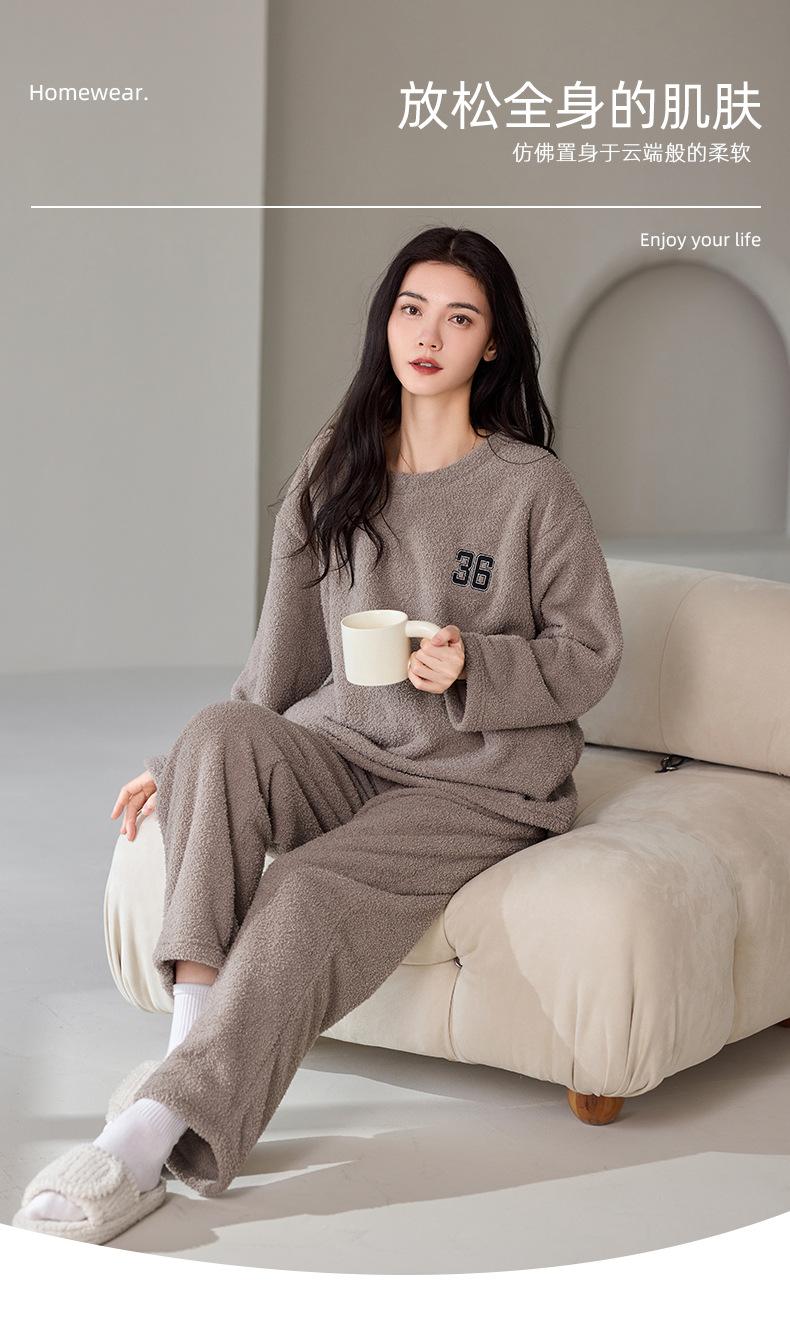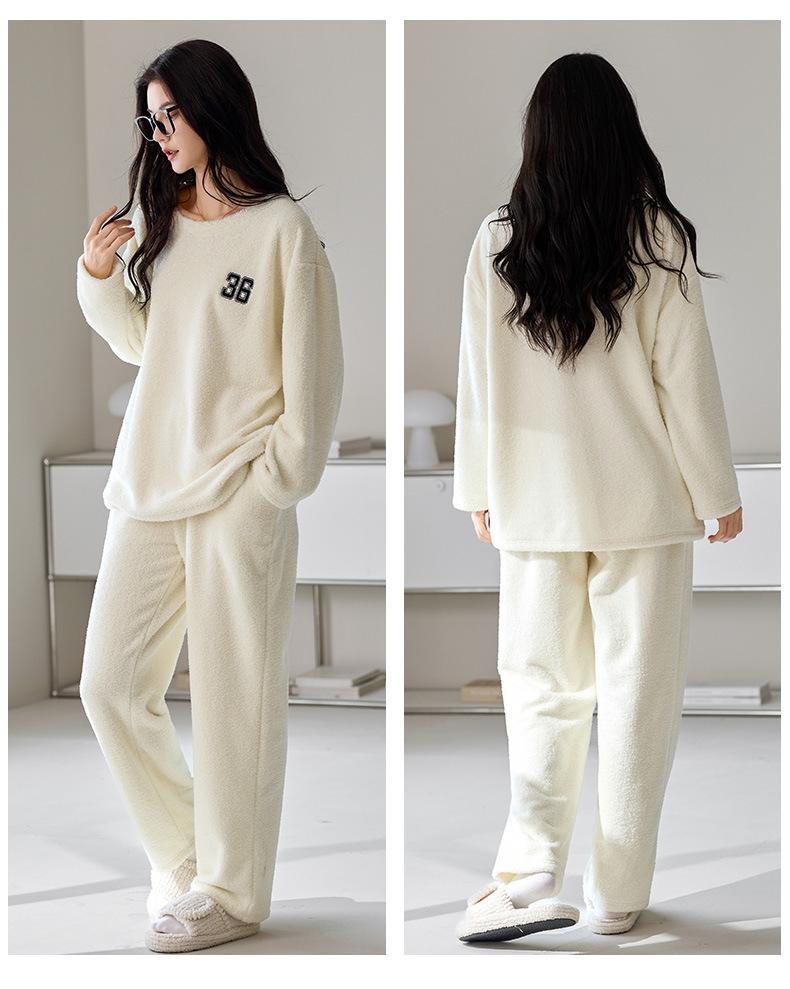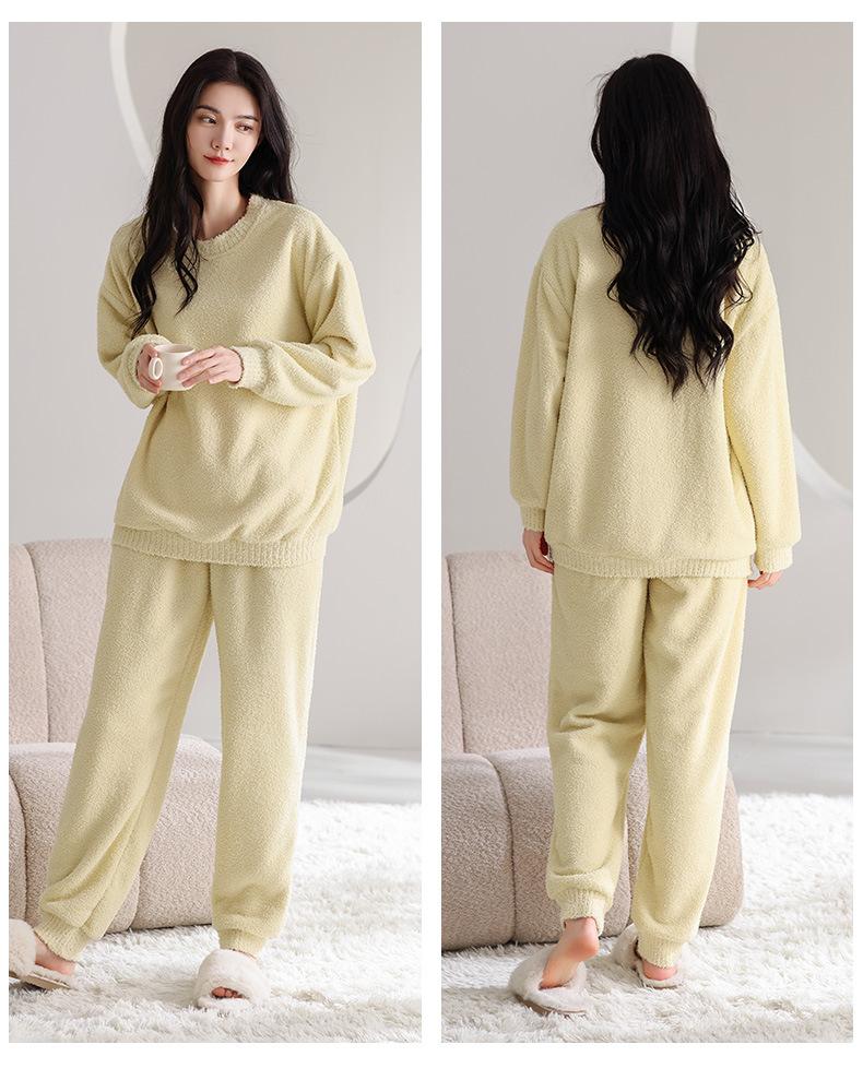 Pijama de Otoño e Invierno de Terciopelo para Mujer Manga Larga Pantalón Largo Dulce y Lindo Se Puede Usar Fuera Ropa de Casa Set Grueso y Cálido