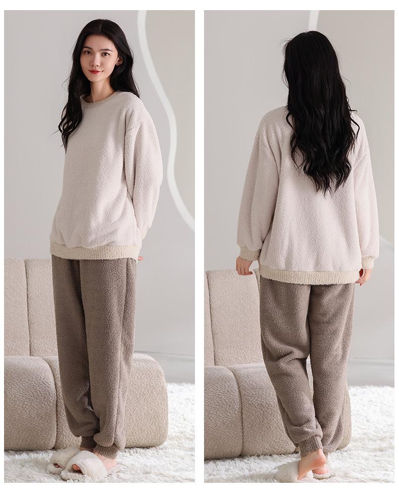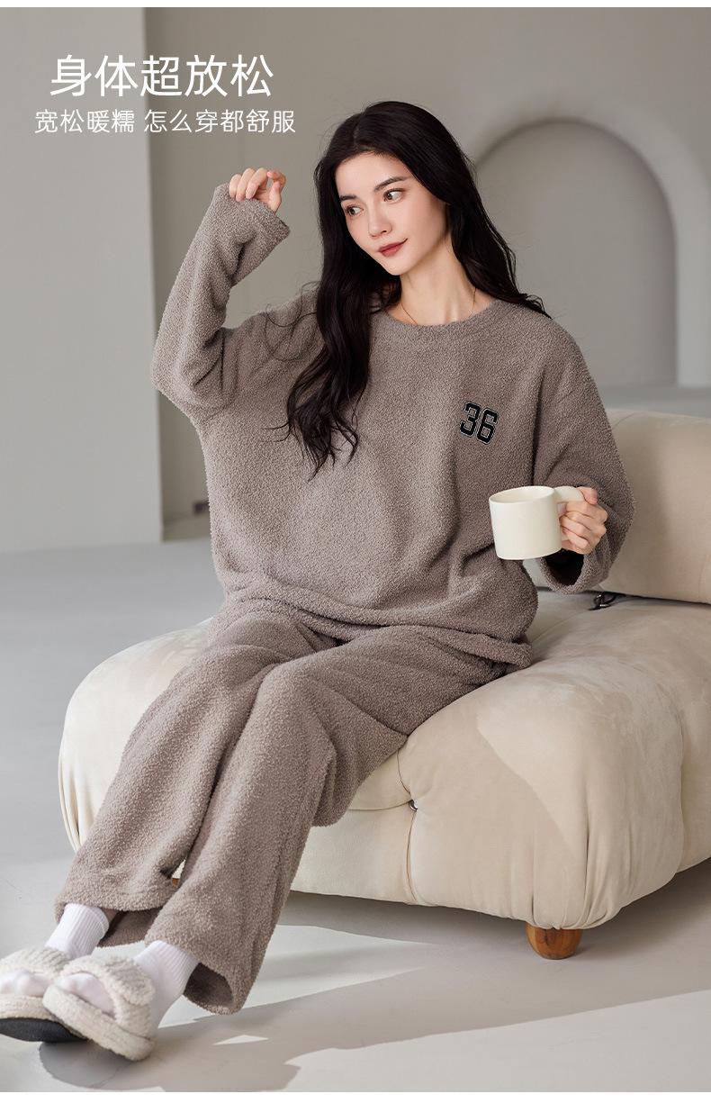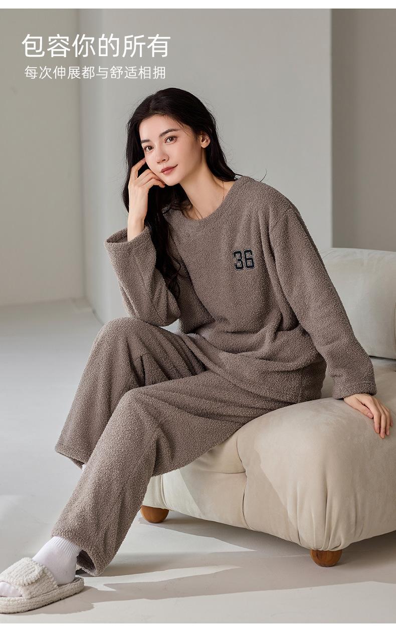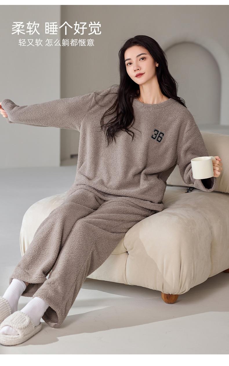 Pijama de Otoño e Invierno de Terciopelo para Mujer Manga Larga Pantalón Largo Dulce y Lindo Se Puede Usar Fuera Ropa de Casa Set Grueso y Cálido