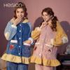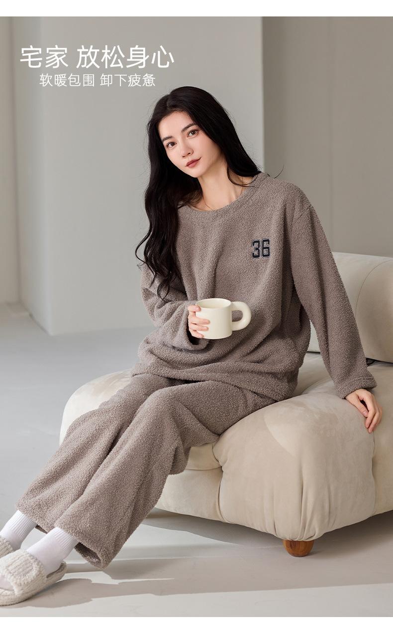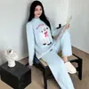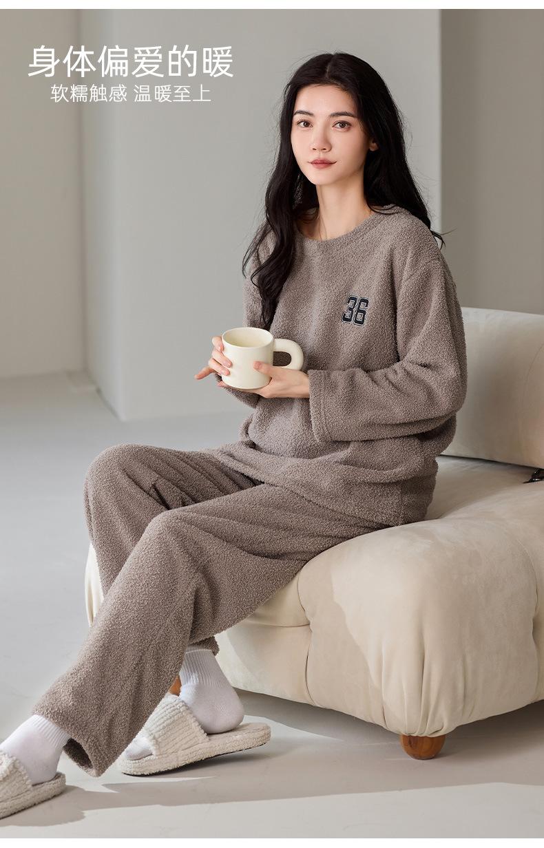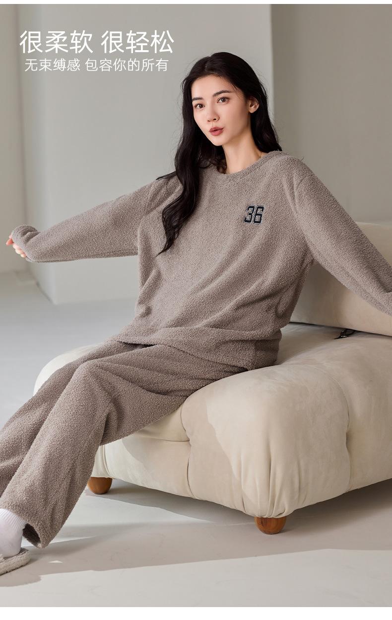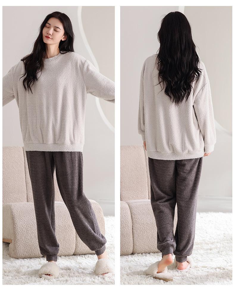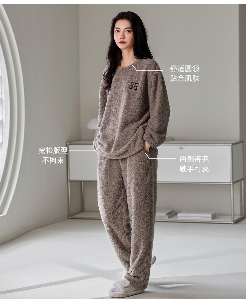 Pijama de Otoño e Invierno de Terciopelo para Mujer Manga Larga Pantalón Largo Dulce y Lindo Se Puede Usar Fuera Ropa de Casa Set Grueso y Cálido