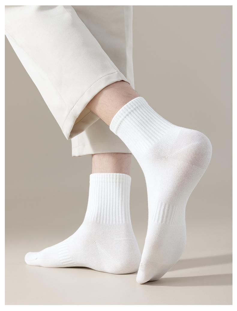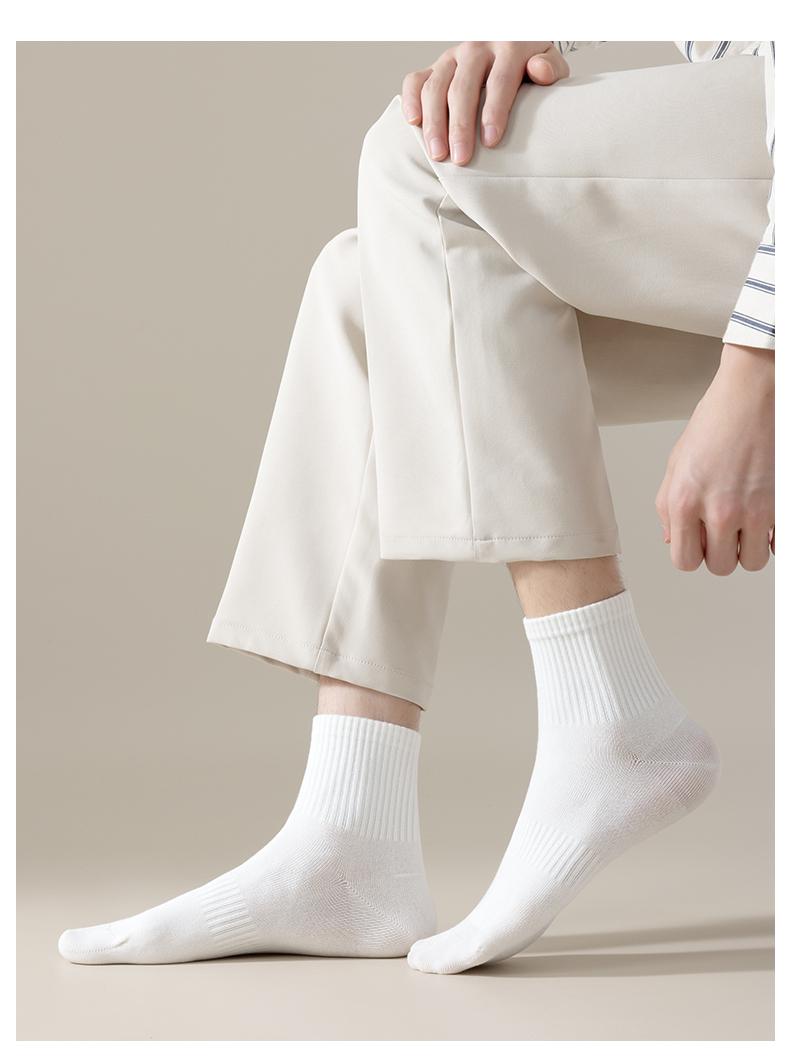 Calcetines blancos y negros para hombre de algodón de Xinjiang para deporte hasta media pantorrilla otoño e invierno color sólido calcetines cortos desodorantes calcetines largos de primavera y otoño