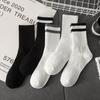 Socks Men Autumn Winter Solid Color Mid-Calf Cotton Socks Men's Over-the-Knee Black and White Style Sweat-Abso...