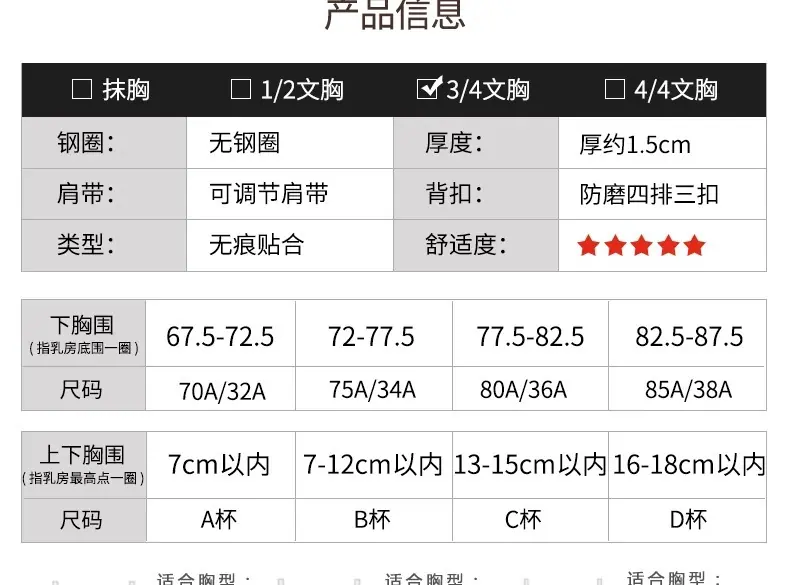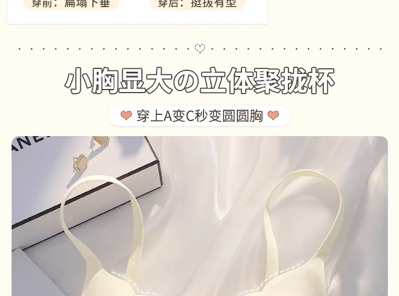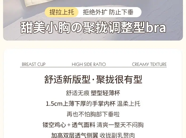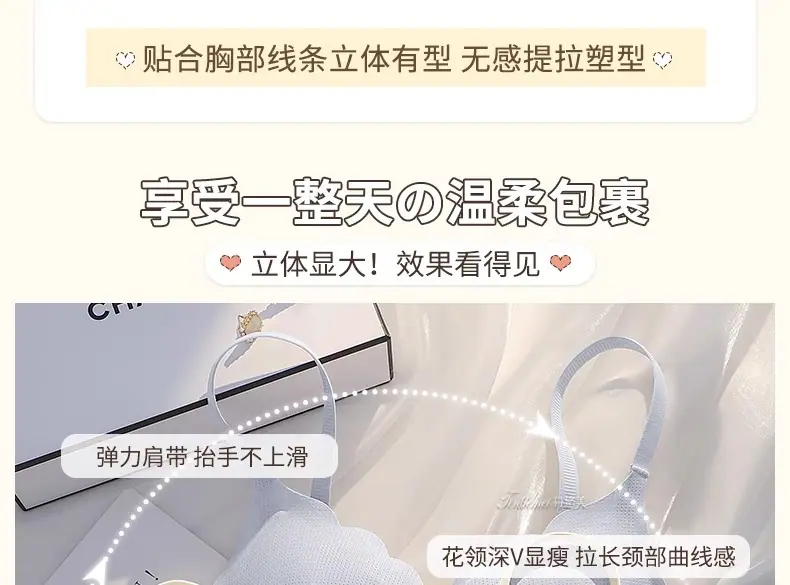 Gather, Traceless, Push up, Adjustable, Comfortable, Breast reinforcement