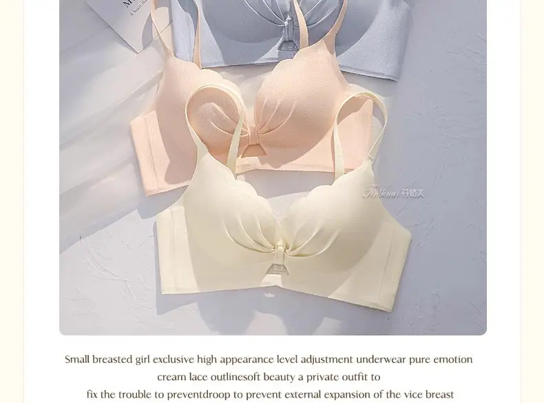 Ropa Interior sin Costuras para Mujer Pecho Pequeño Reunido Grande Sin Aro de Acero Sujetador Ajustable para Seno Auxiliar Anticaída Verano