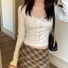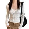 Principios de Otoño Pura Lujuria Cuello de Encaje Camisa de Manga Larga Top de Mujer Dulce Floral Ajustado Capa Interior