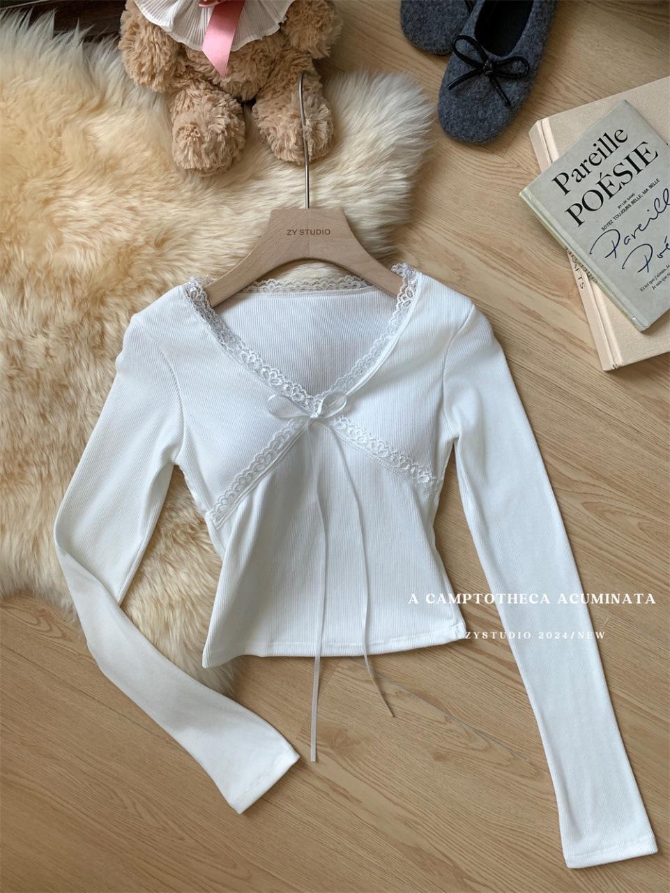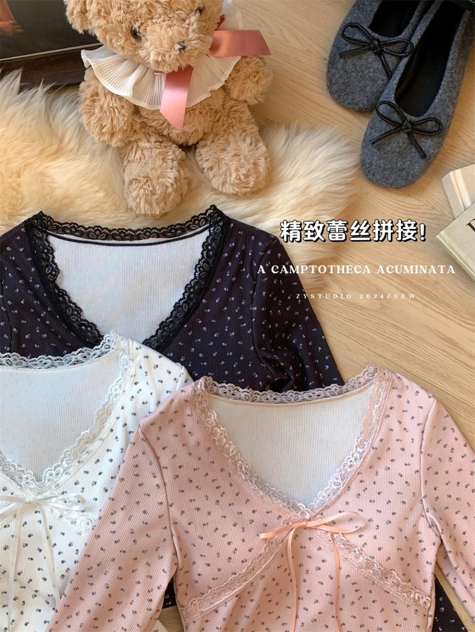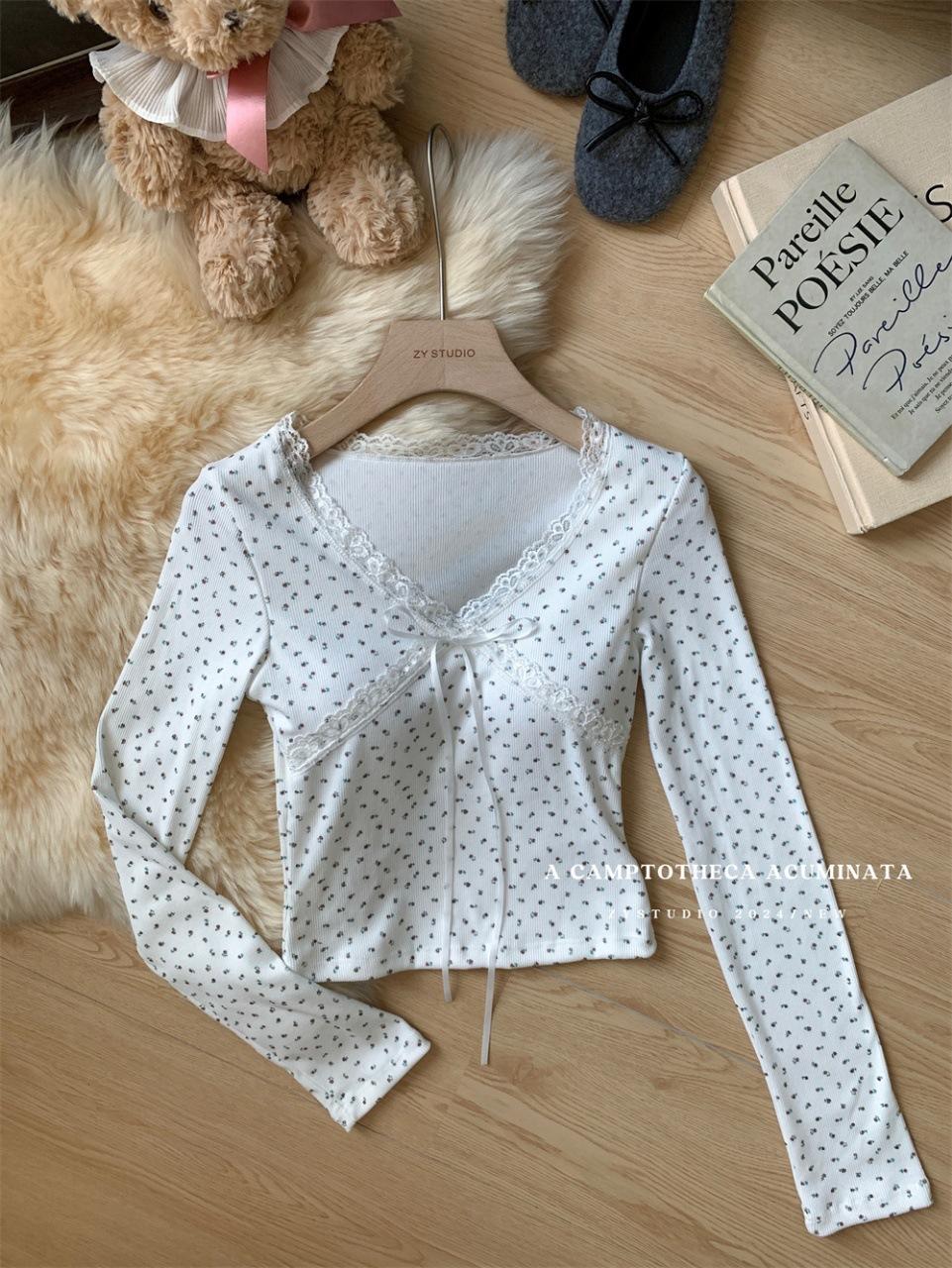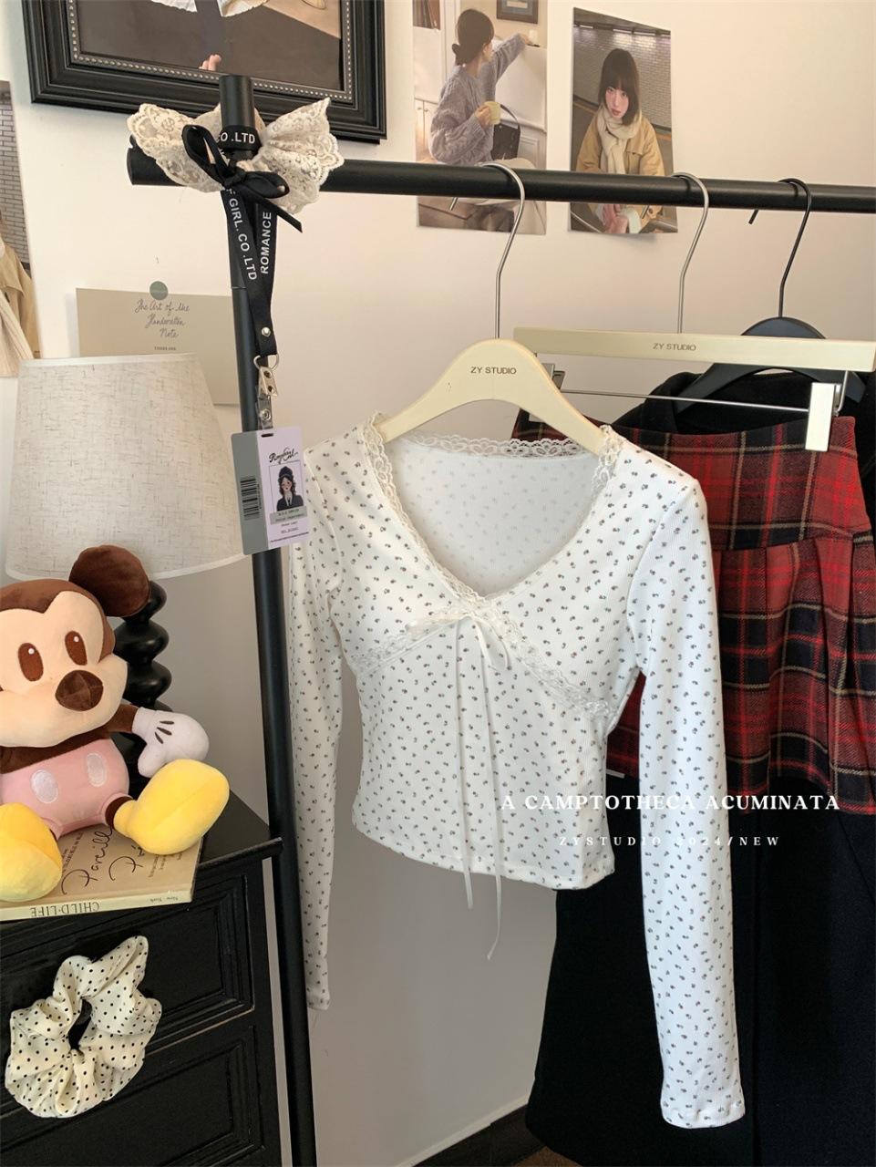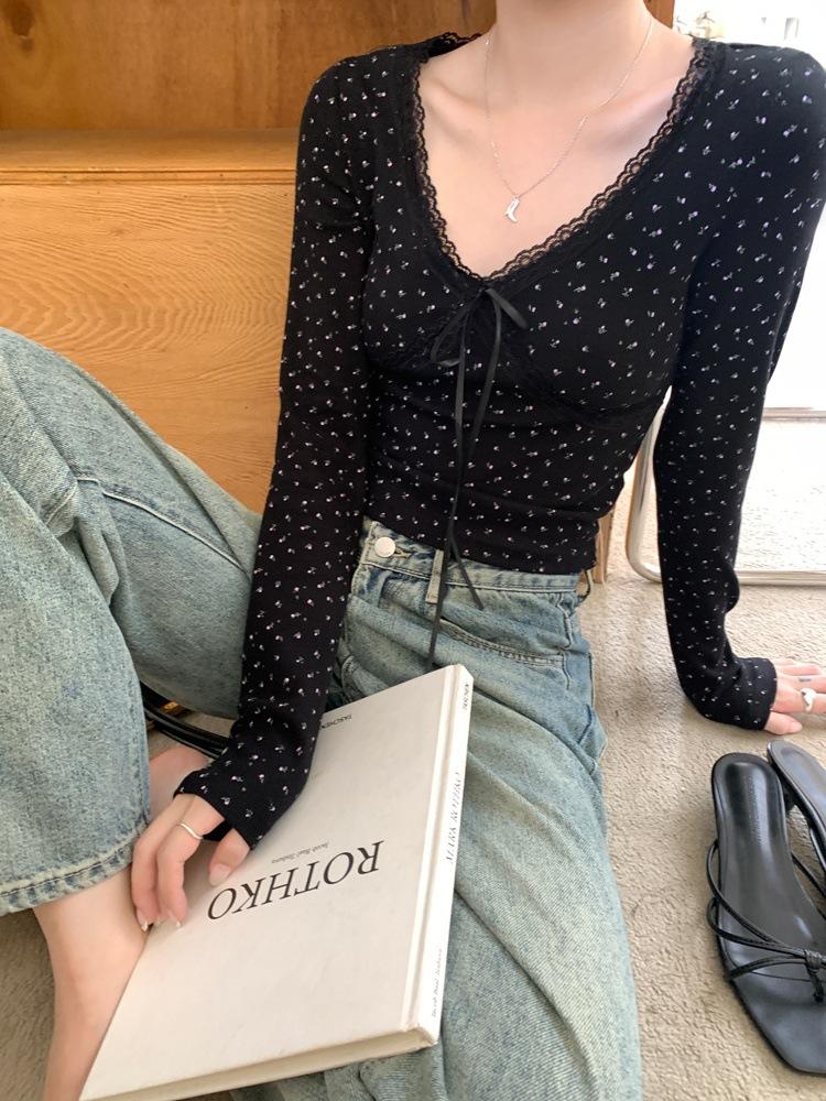 Compra Principios de Otoño Pura Lujuria Cuello de Encaje Camisa de Manga Larga Top de Mujer Dulce Floral Ajustado Capa Interior al por mayor en Joom.pro