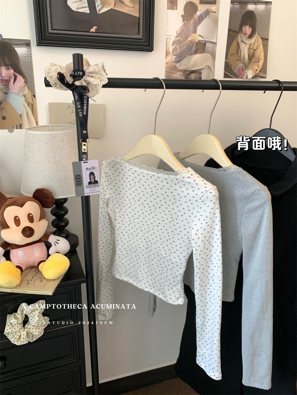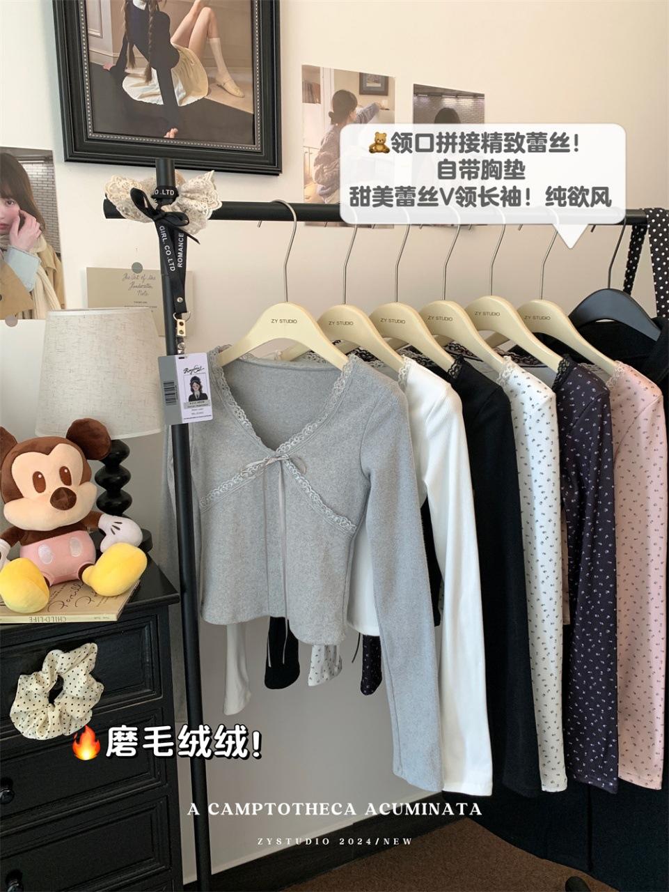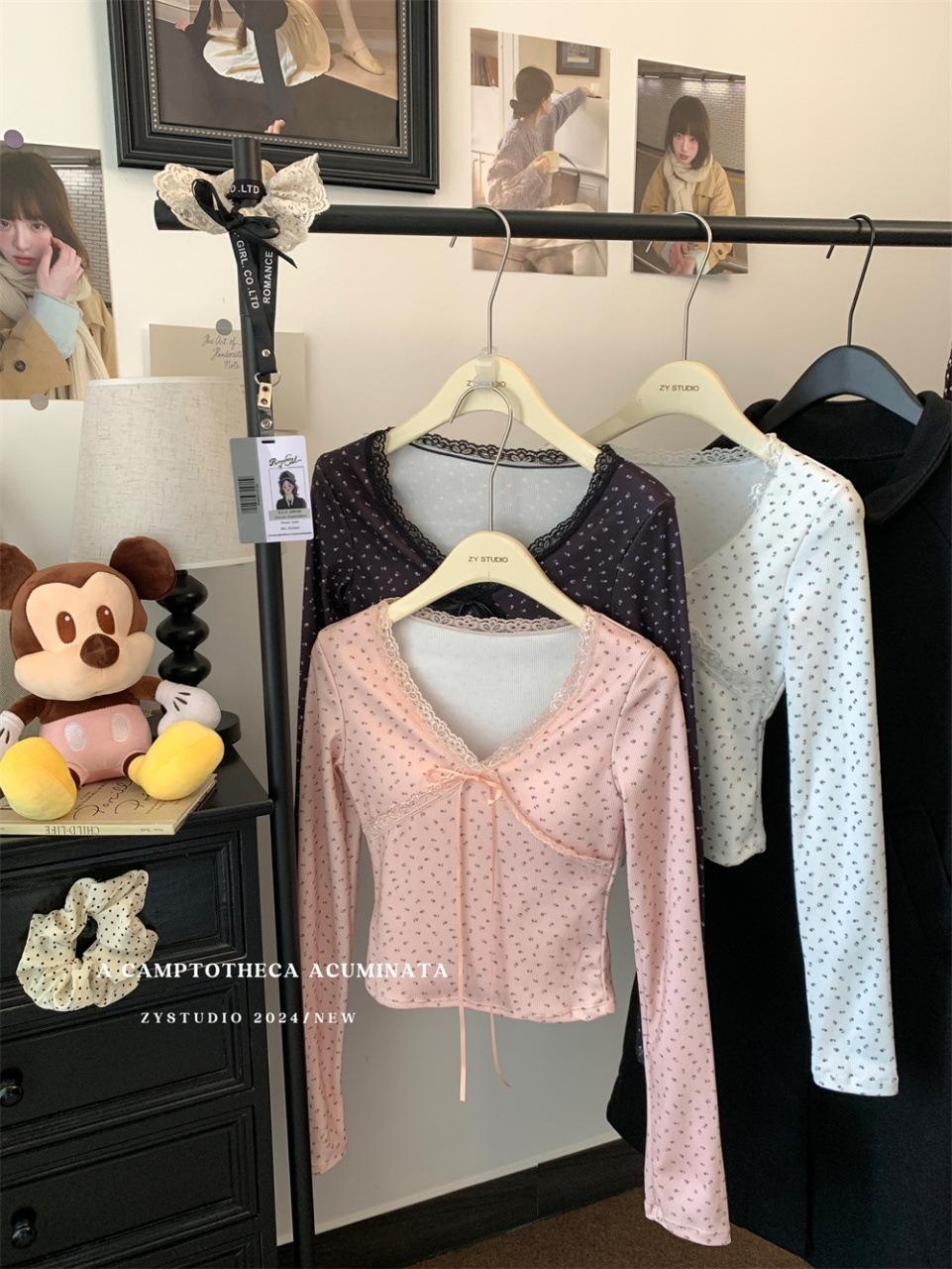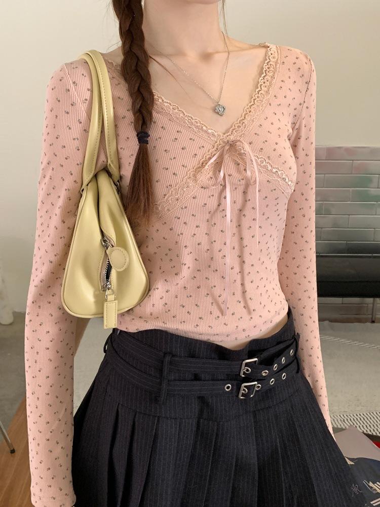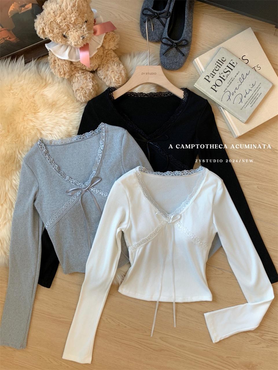 Compra Principios de Otoño Pura Lujuria Cuello de Encaje Camisa de Manga Larga Top de Mujer Dulce Floral Ajustado Capa Interior al por mayor en Joom.pro