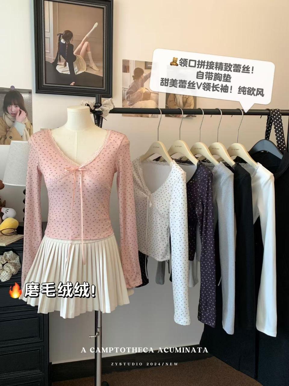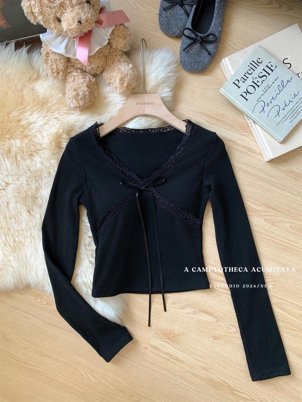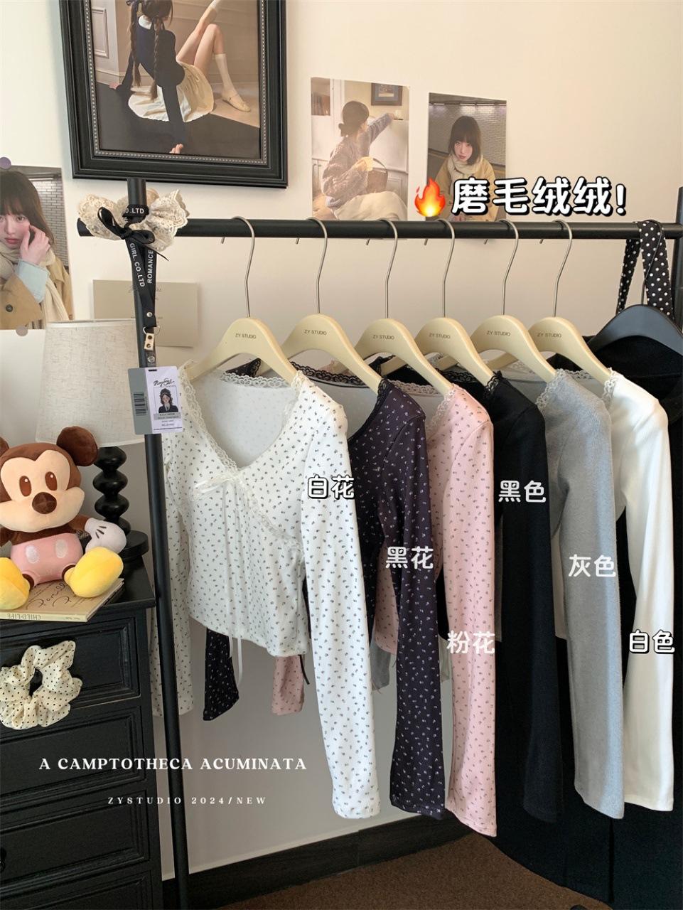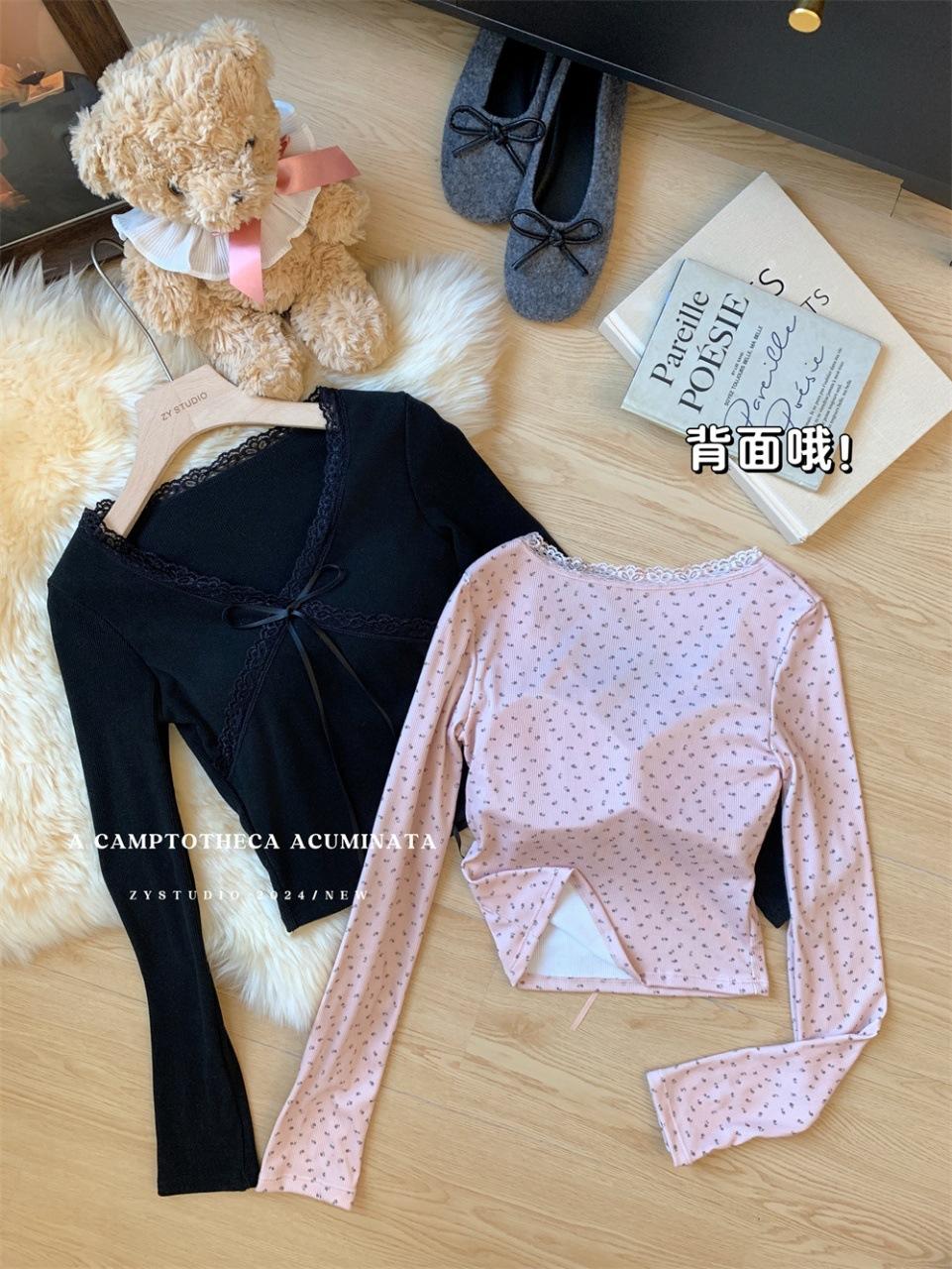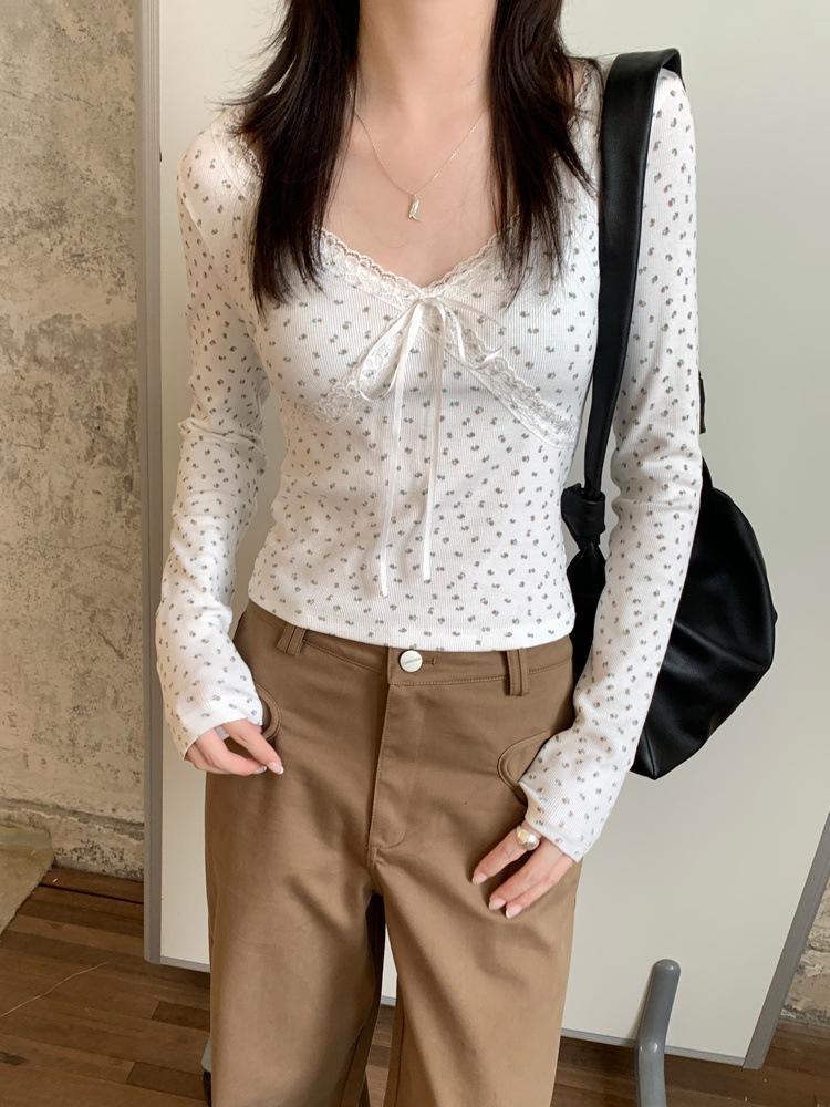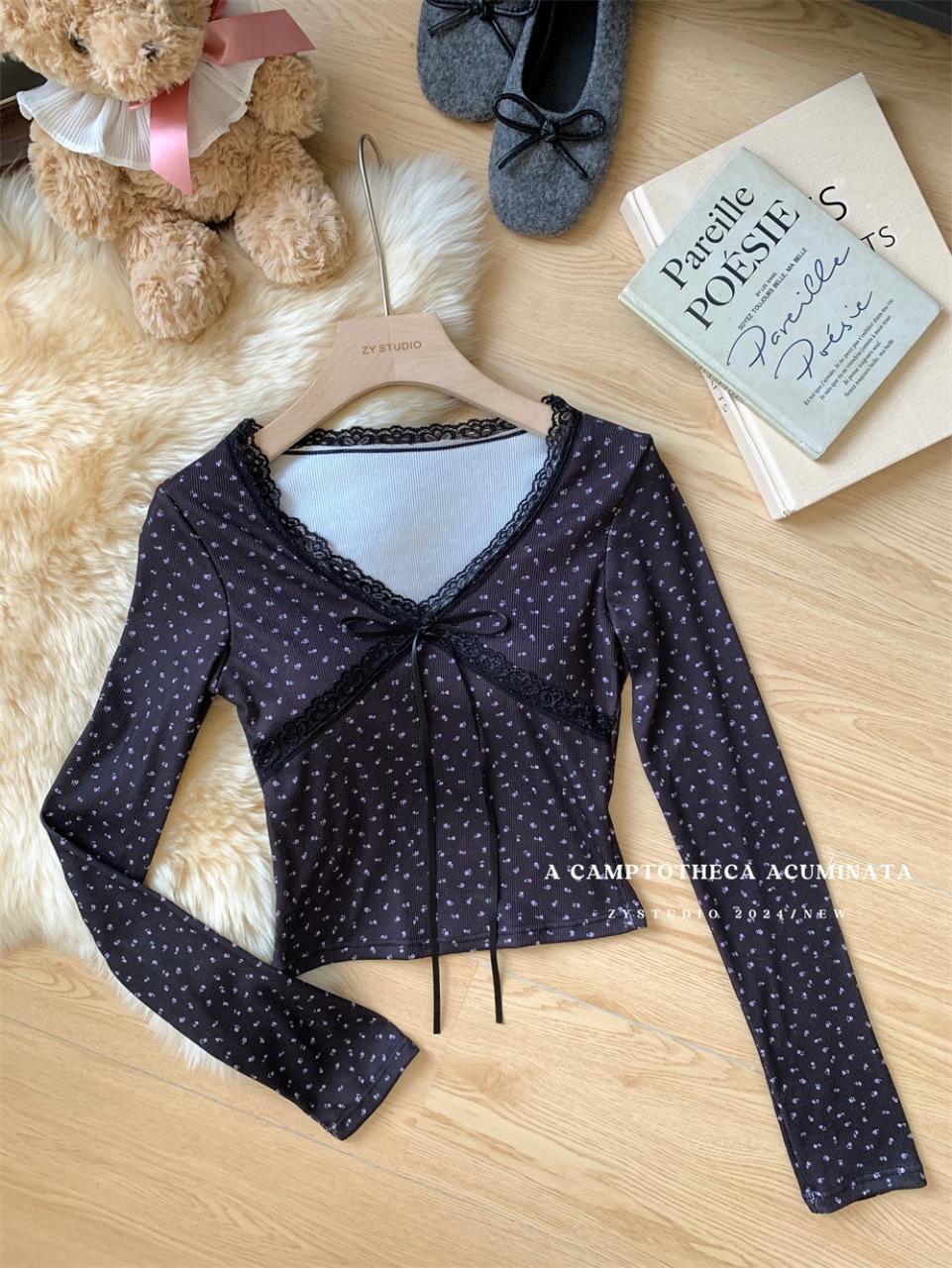 Compra Principios de Otoño Pura Lujuria Cuello de Encaje Camisa de Manga Larga Top de Mujer Dulce Floral Ajustado Capa Interior al por mayor en Joom.pro