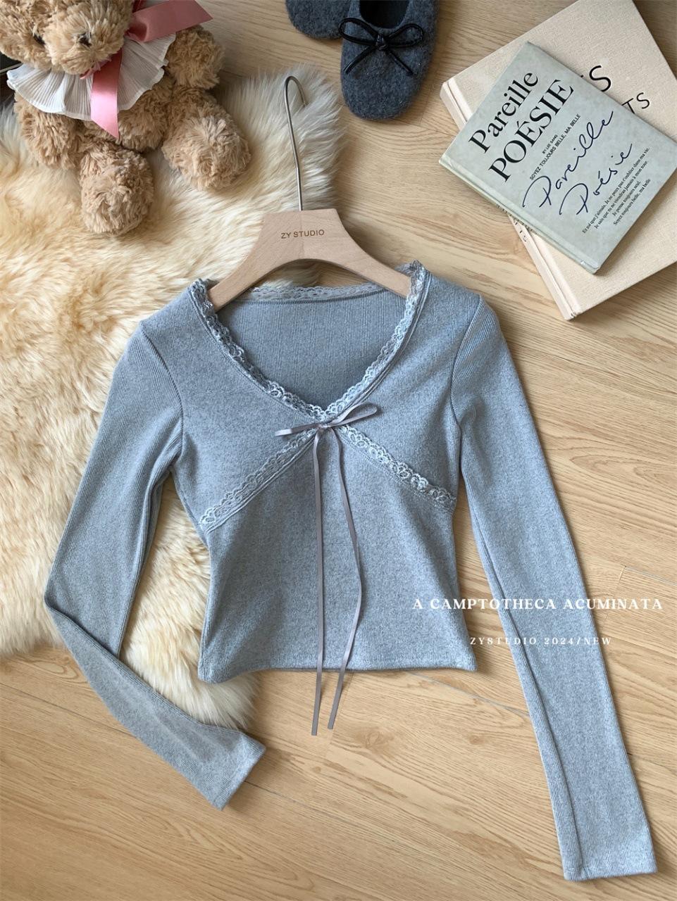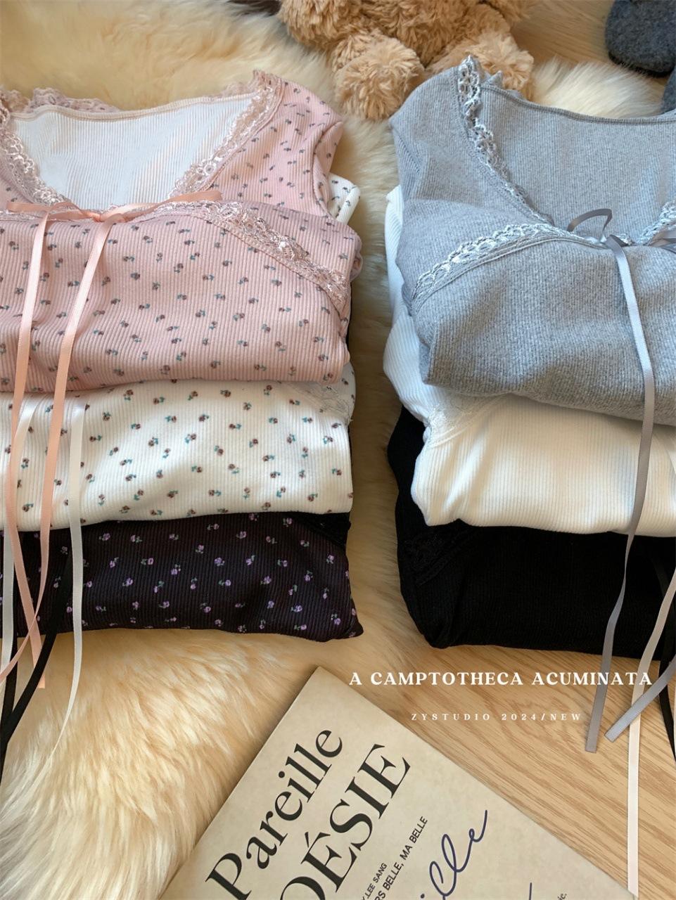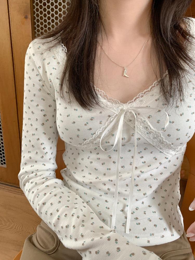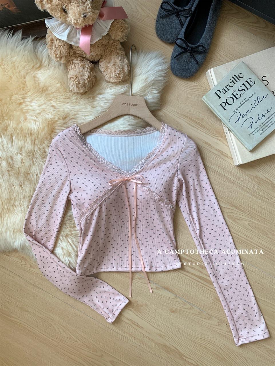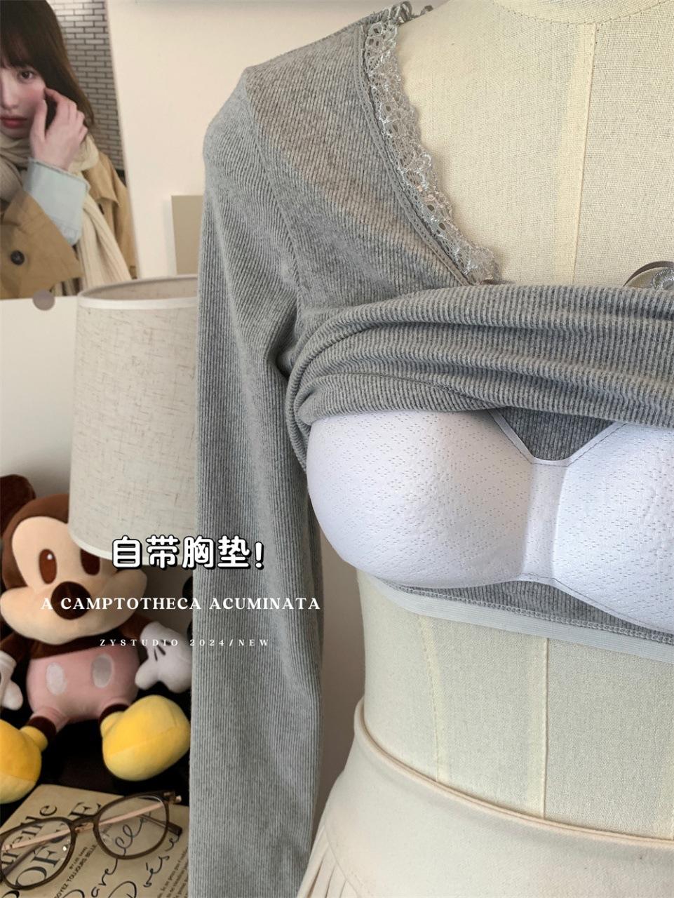 Compra Principios de Otoño Pura Lujuria Cuello de Encaje Camisa de Manga Larga Top de Mujer Dulce Floral Ajustado Capa Interior al por mayor en Joom.pro