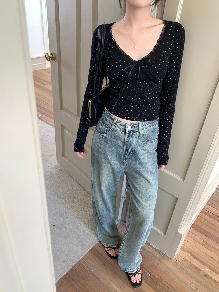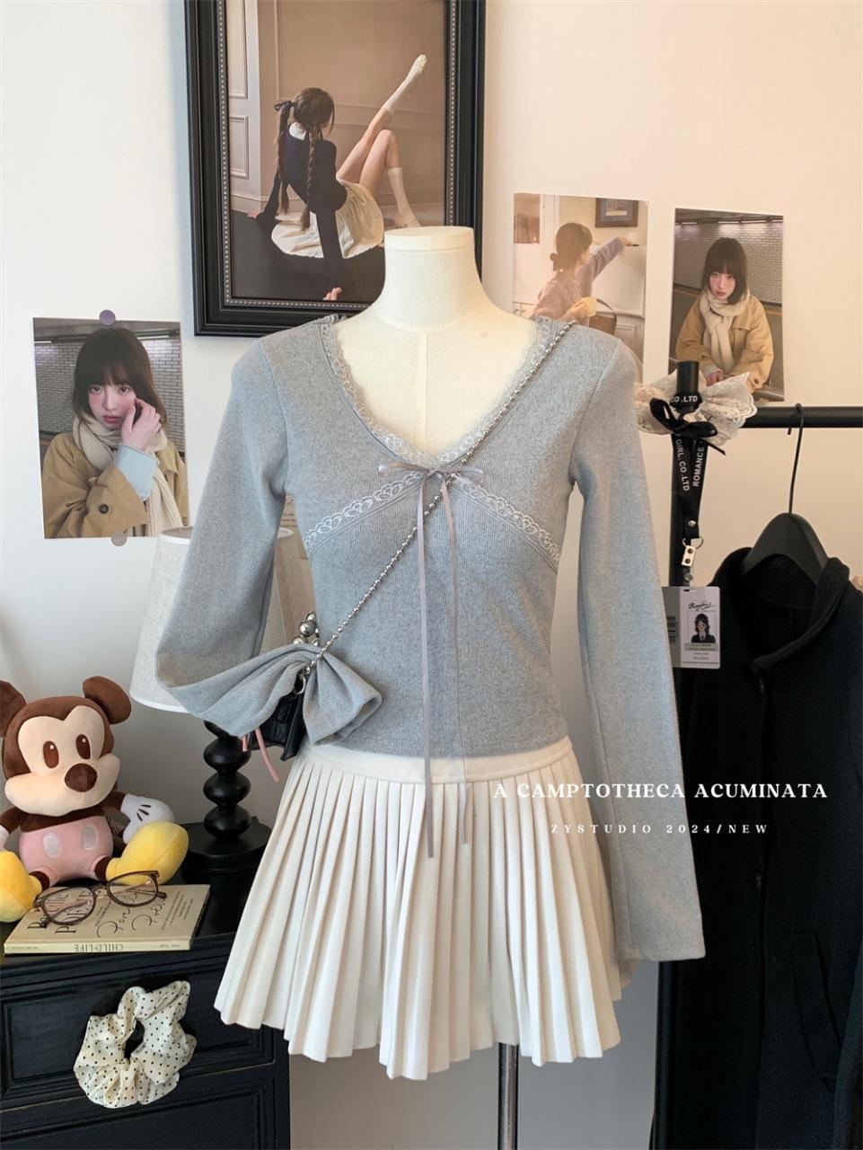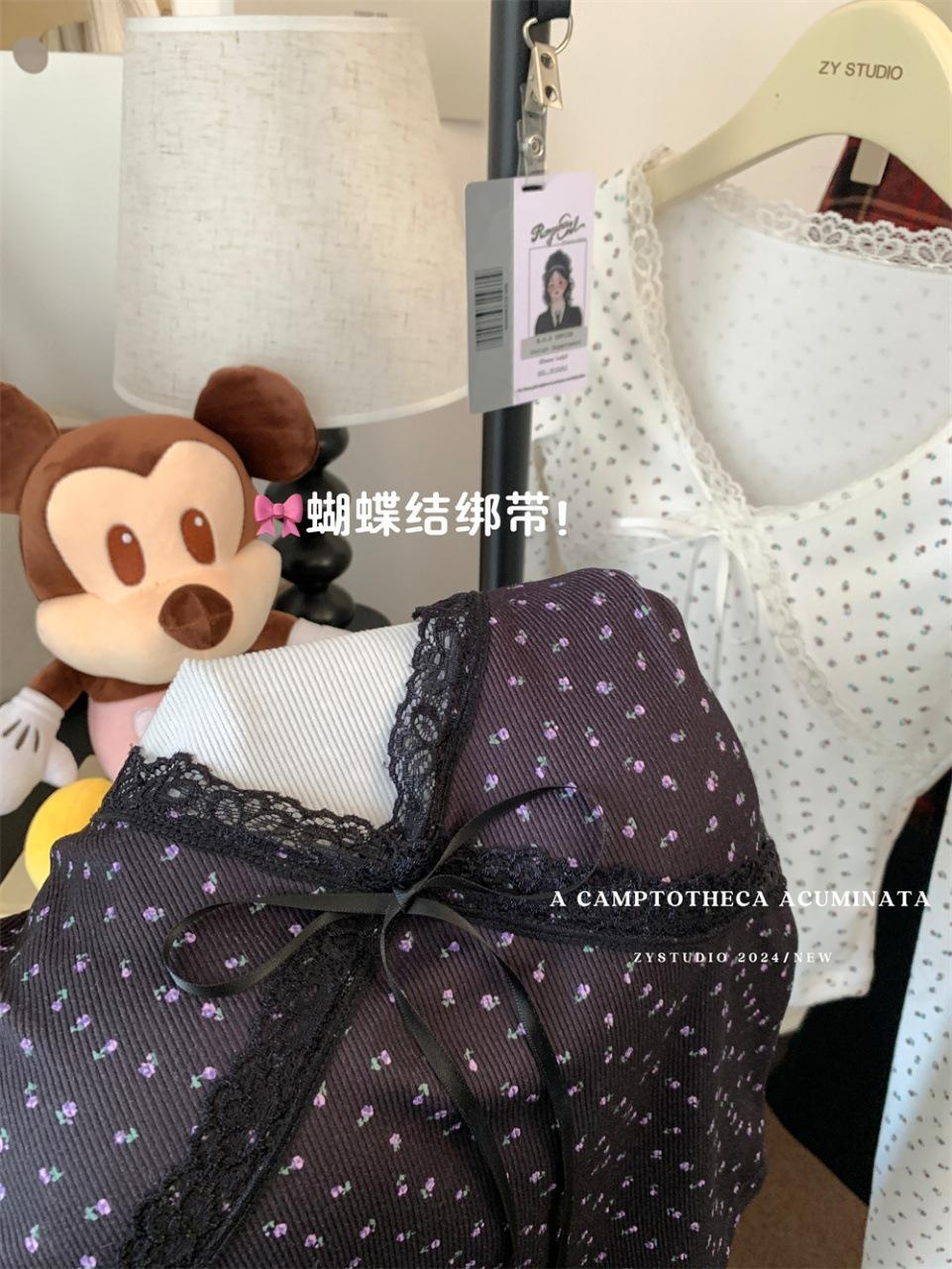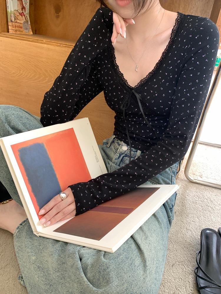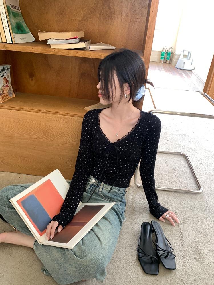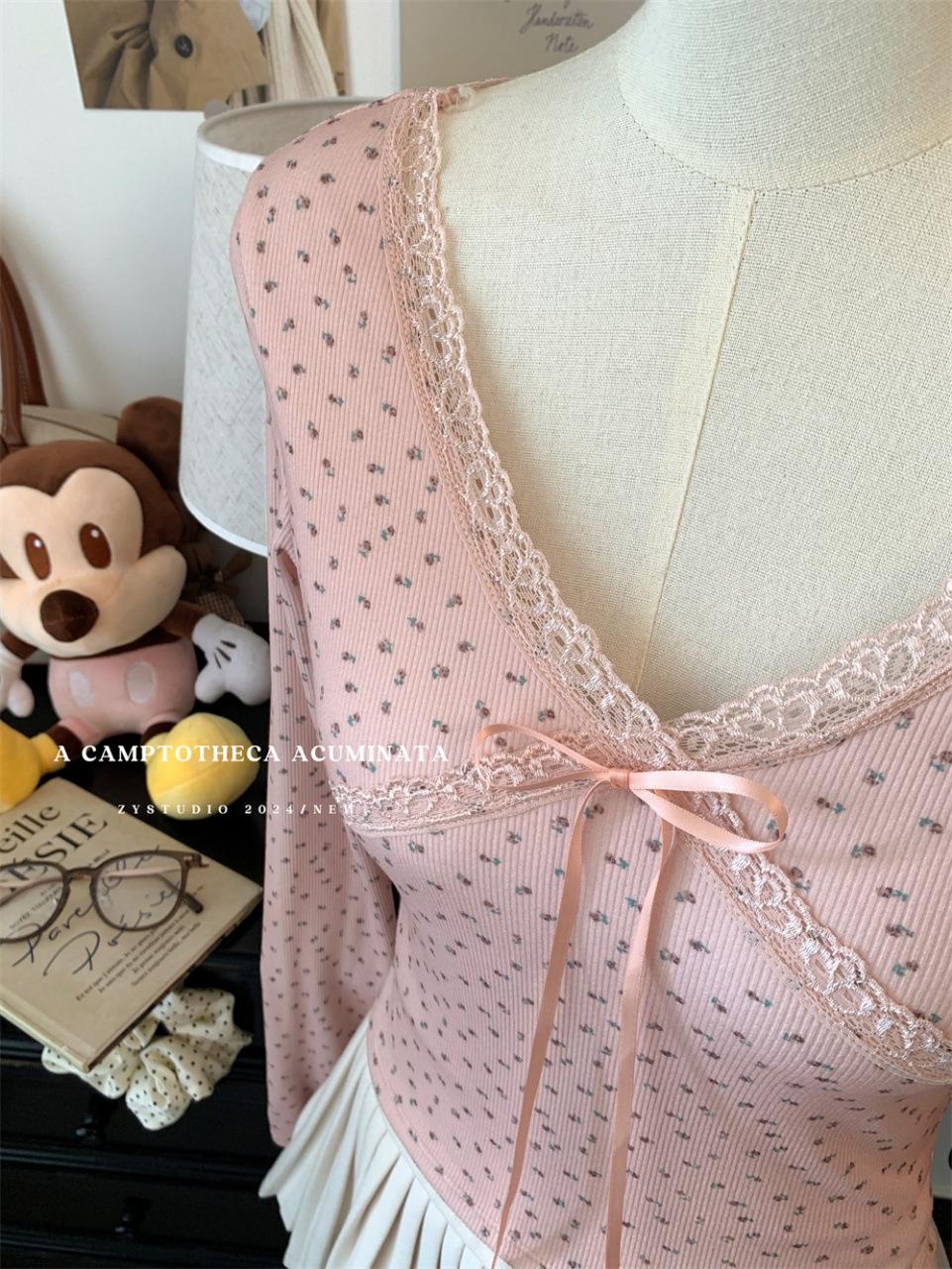 Compra Principios de Otoño Pura Lujuria Cuello de Encaje Camisa de Manga Larga Top de Mujer Dulce Floral Ajustado Capa Interior al por mayor en Joom.pro