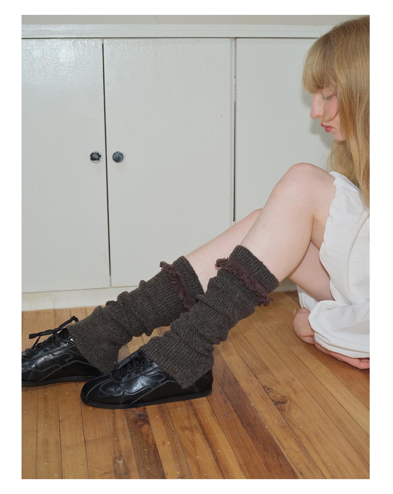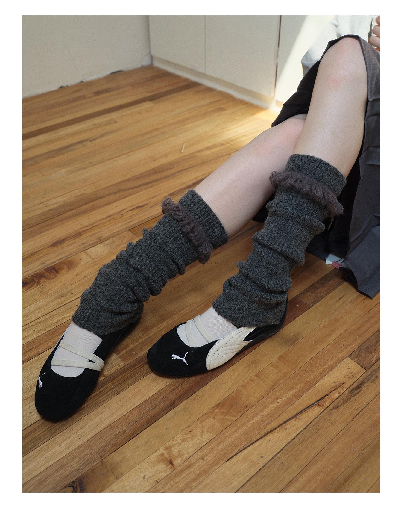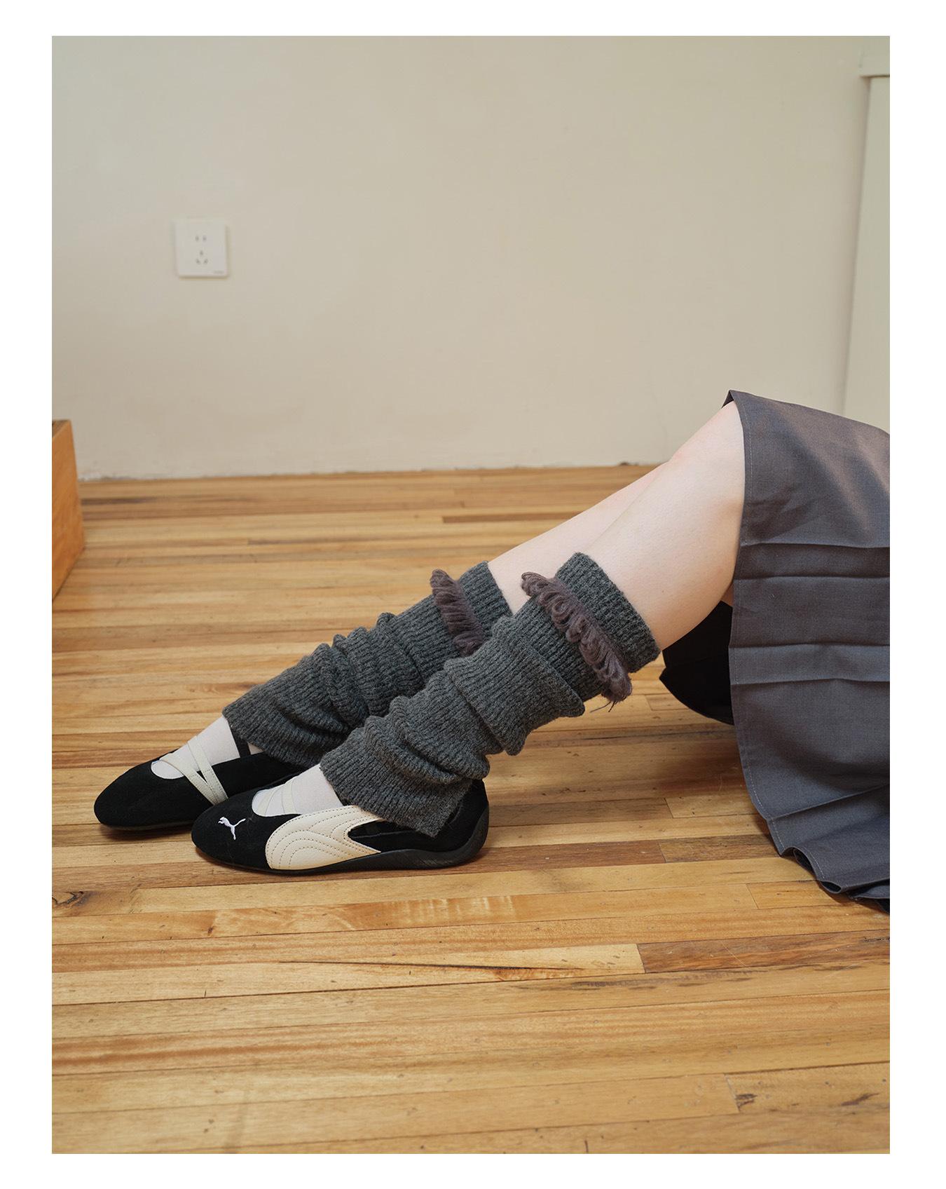 Calentadores de Pierna Tejidos de Mezcla de Lana con Borde de Borla Hechos a Mano para Mujer Estilo Coreano Femenino Cálidos Tejidos de Lana Mangas para Pantorrilla y2k Calentadores de Pies