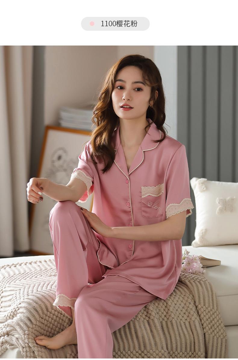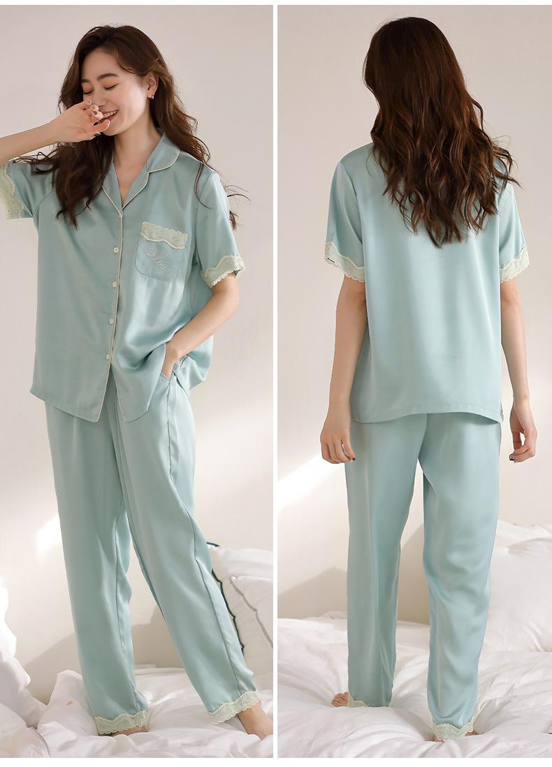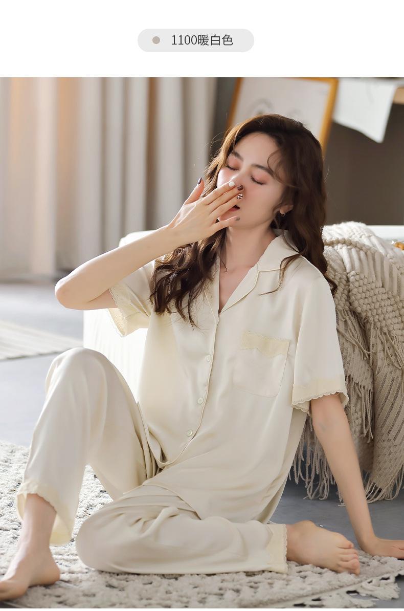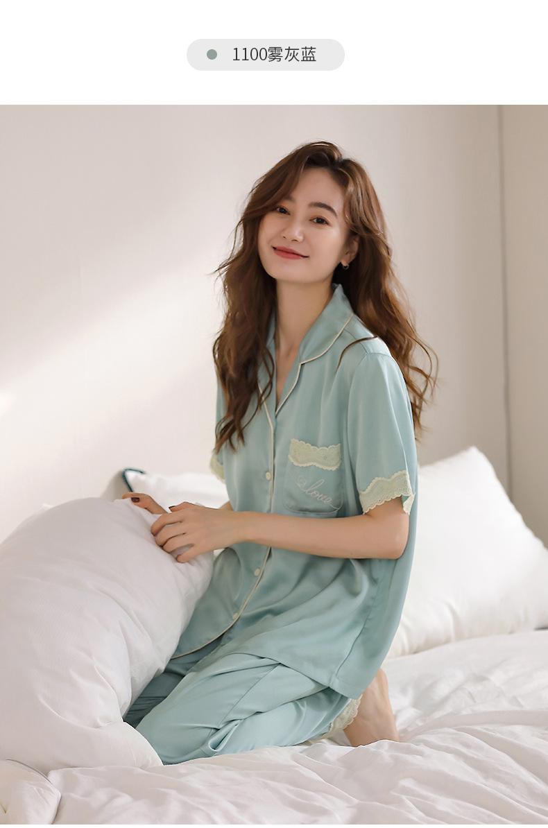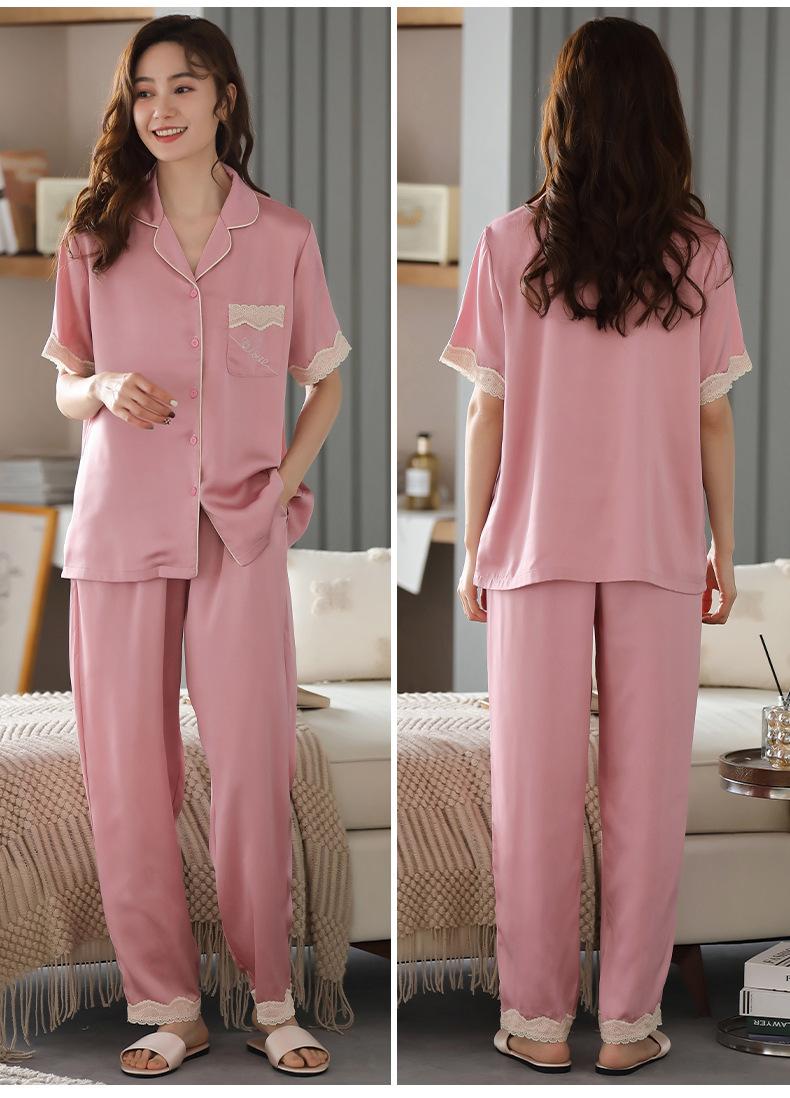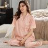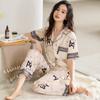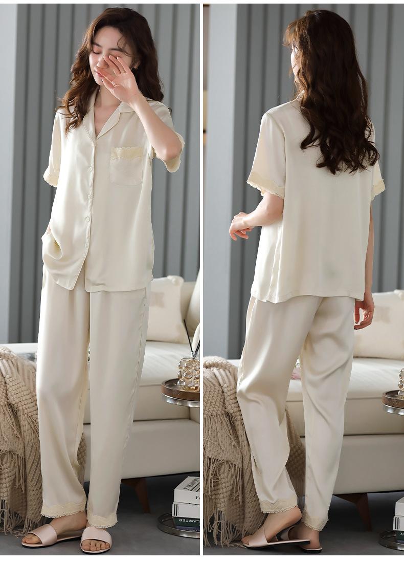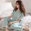 Pijama de Verano para Mujer, Manga Corta de Seda de Hielo y Pantalón Largo, Estilo Fino de Seda para Verano, Nuevo Ropa de Casa 2025, Set de Alta Gama