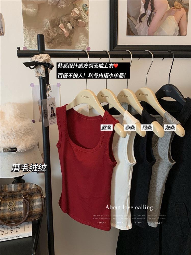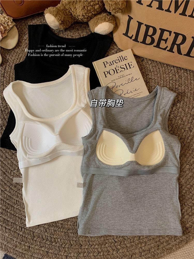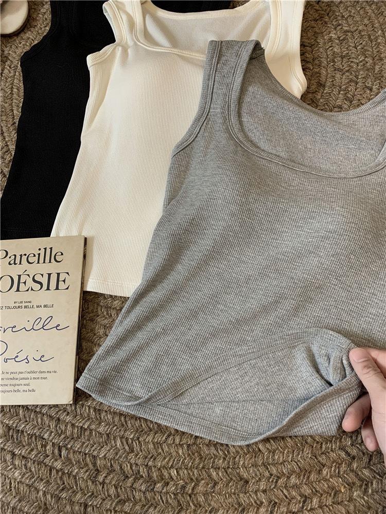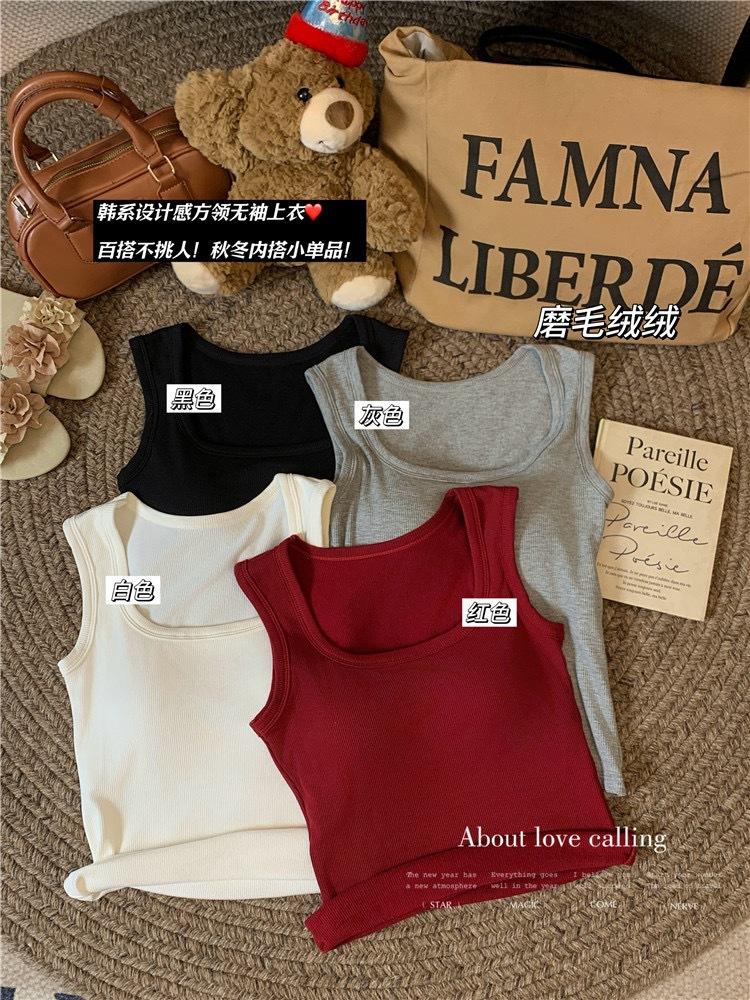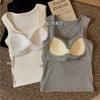 Chaleco cálido grueso de forro polar de otoño e invierno para mujer con copas fijas, top de una pieza de capa base interior que se puede usar afuera