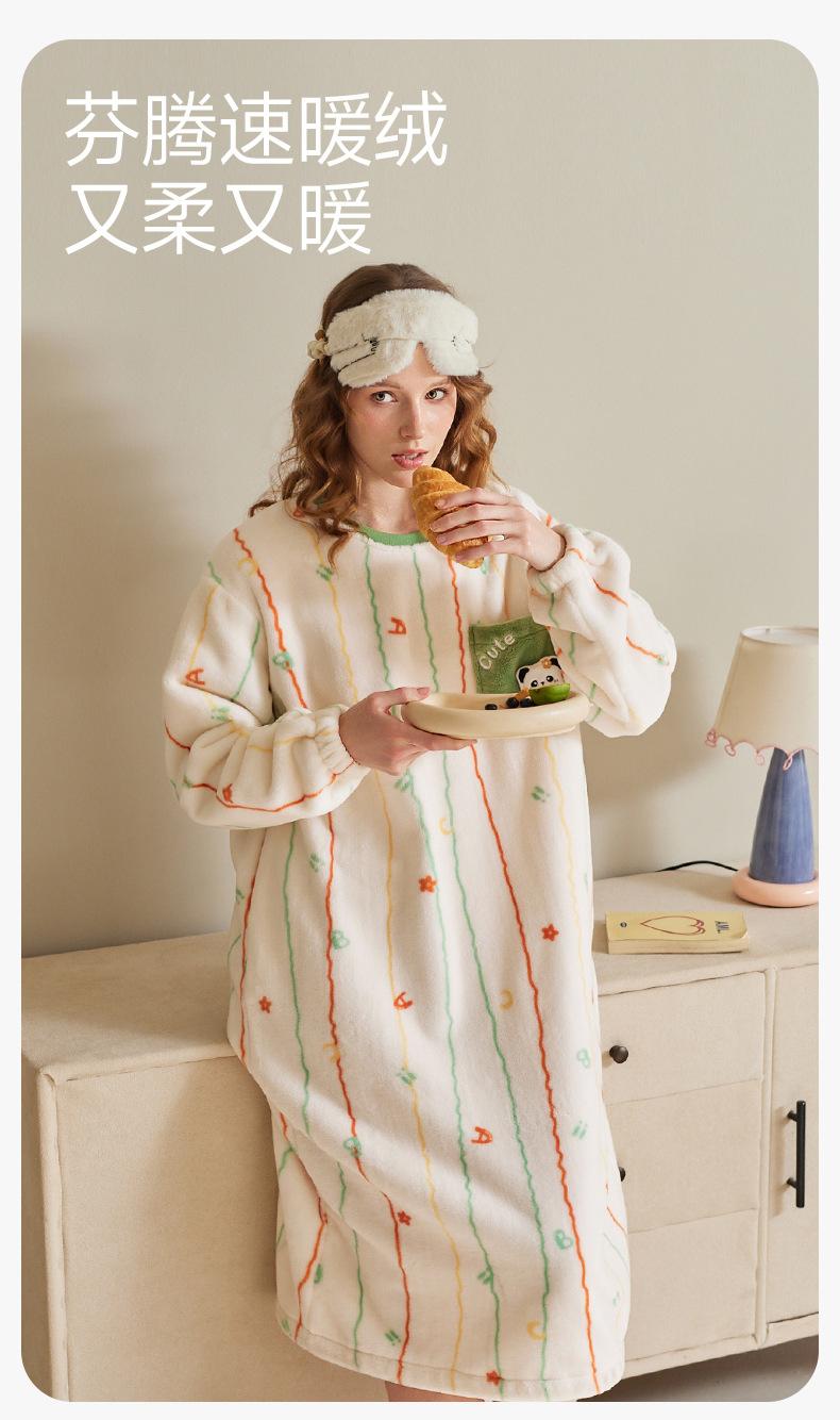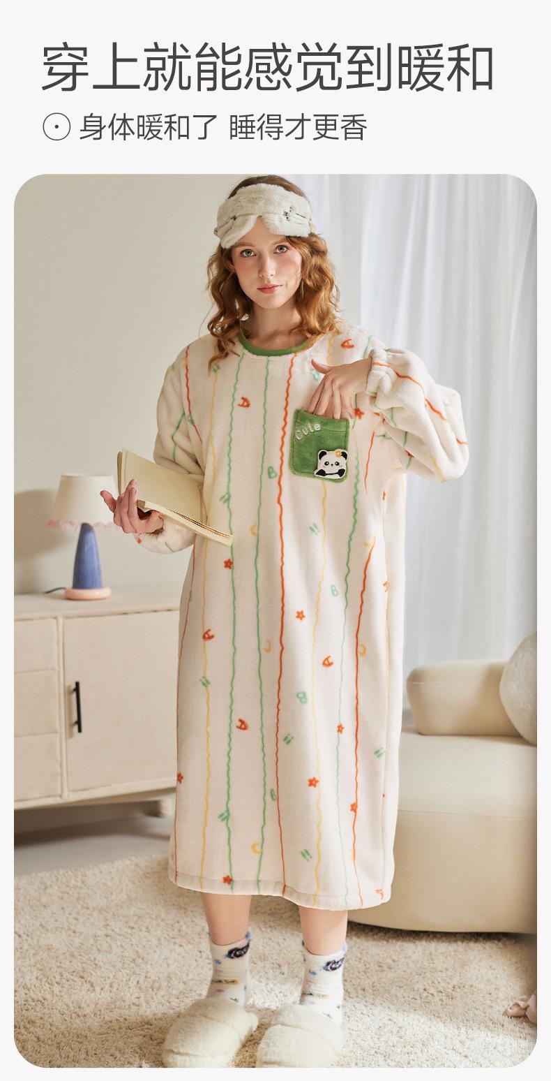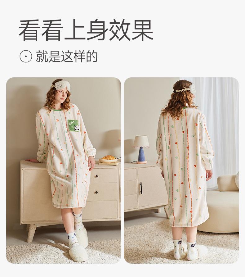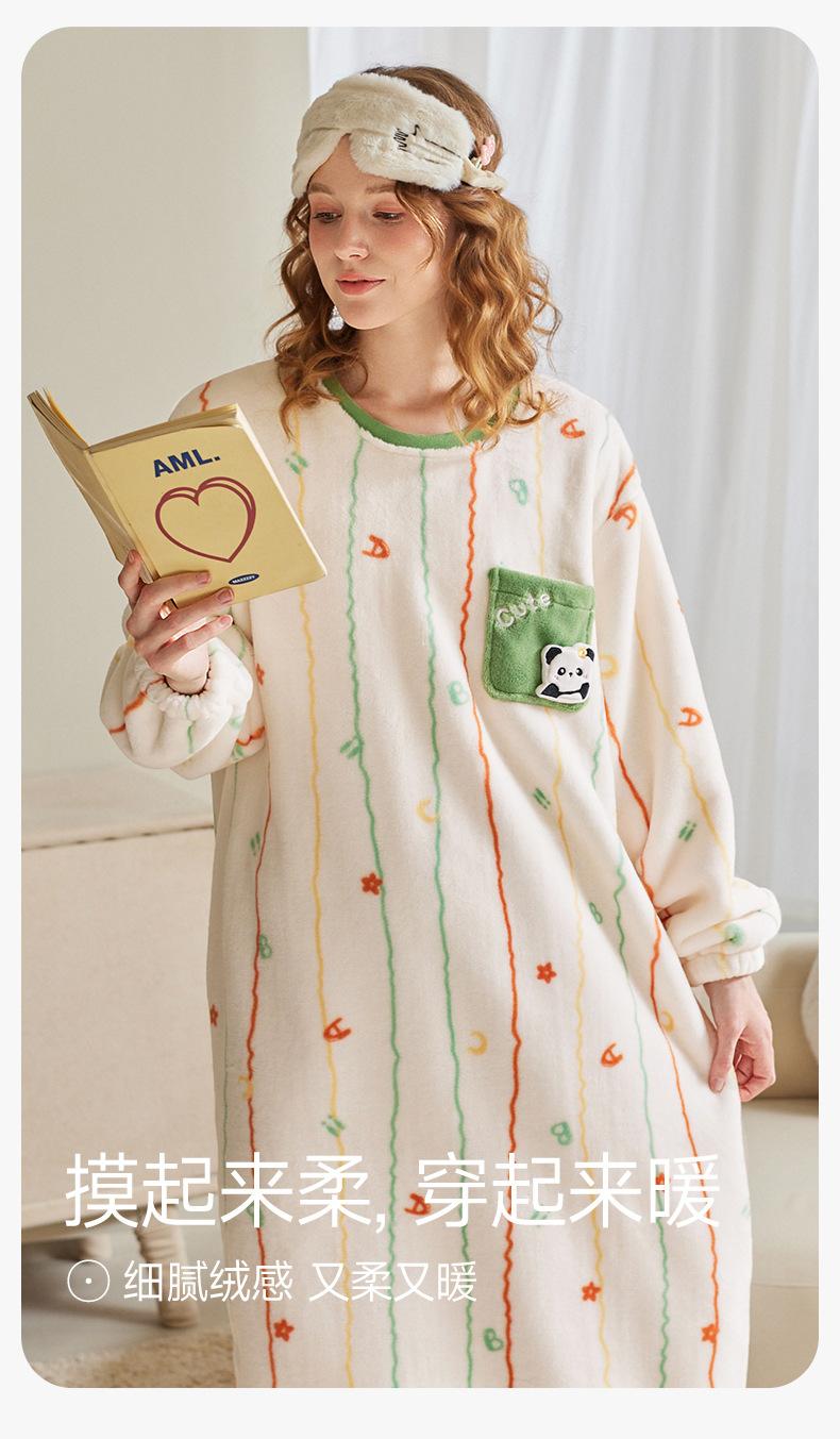Fenteng [Forro Polar Antiestático de Calentamiento Rápido] Camisón de Mujer Otoño/Invierno Pijama de Mujer Lindo Panda Forro Polar Ropa de Casa