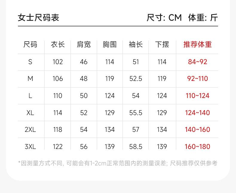 S【84-92 jin】, M【92-110 jin】, L [110-124 catties], XL [124-140 catties], XXL【140-160 catties】