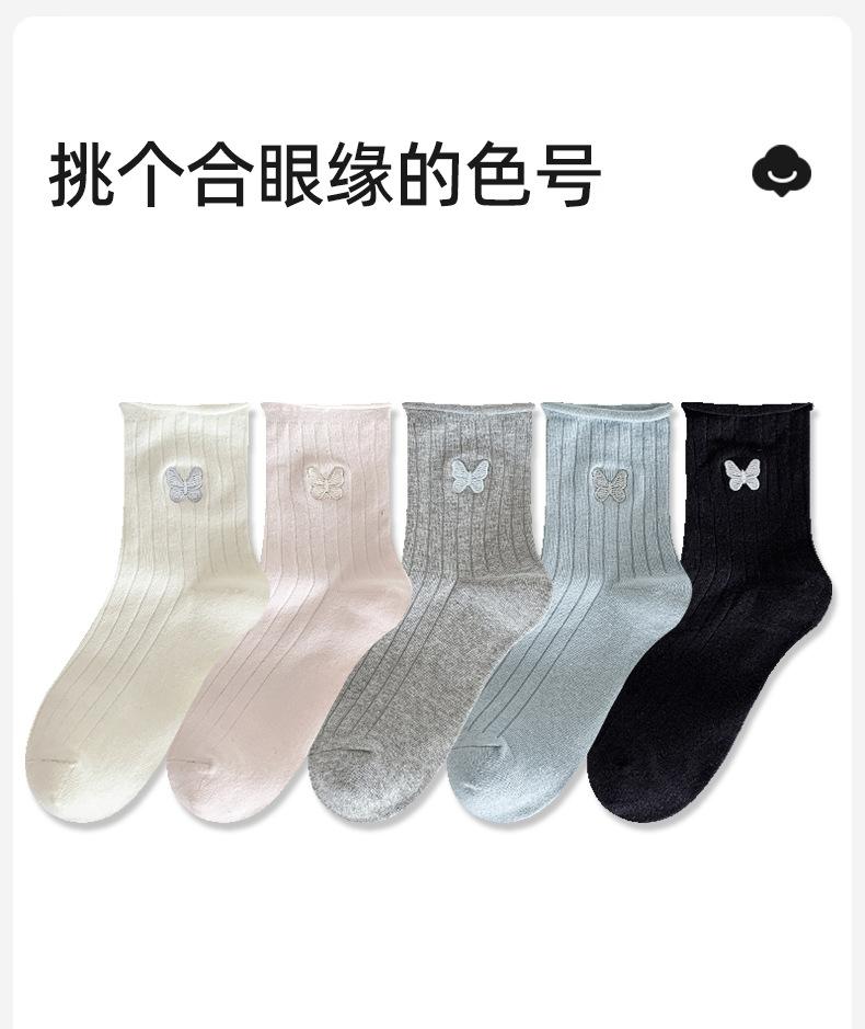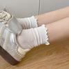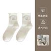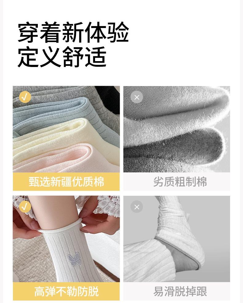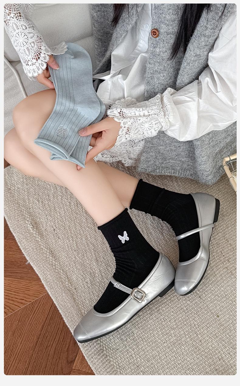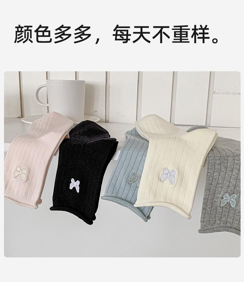 Calcetines Blancos con Lazo para Mujer Primavera Otoño Algodón Puro Media Pantorrilla Calcetines Japoneses de Boca Suelta con Borde Enrollado Bordado de Lazo Calcetines de Rizo