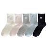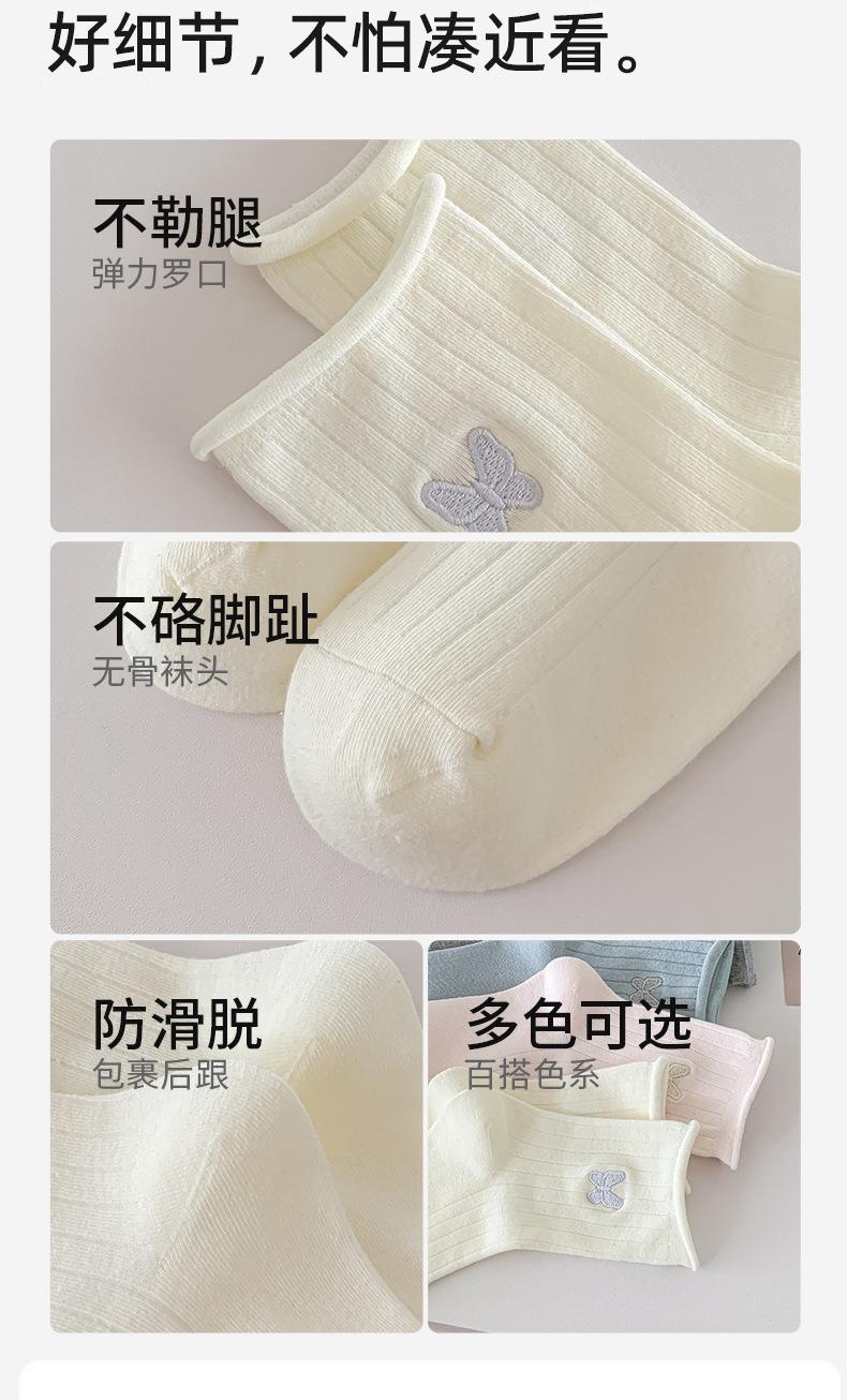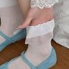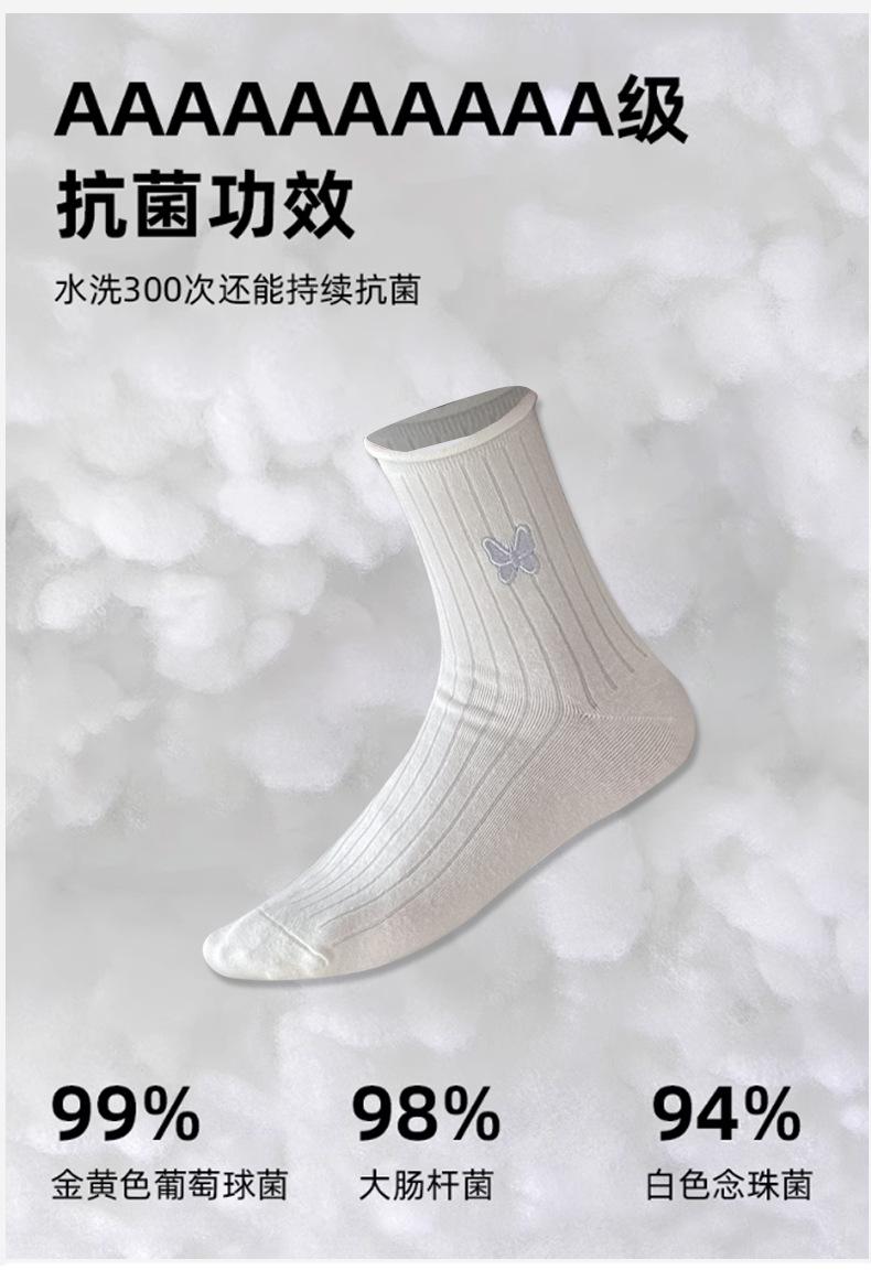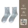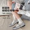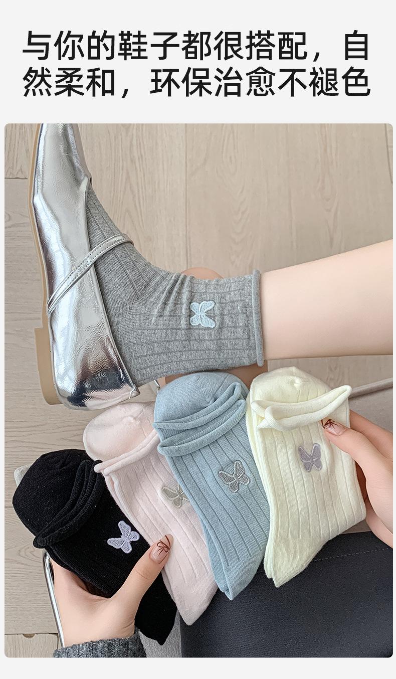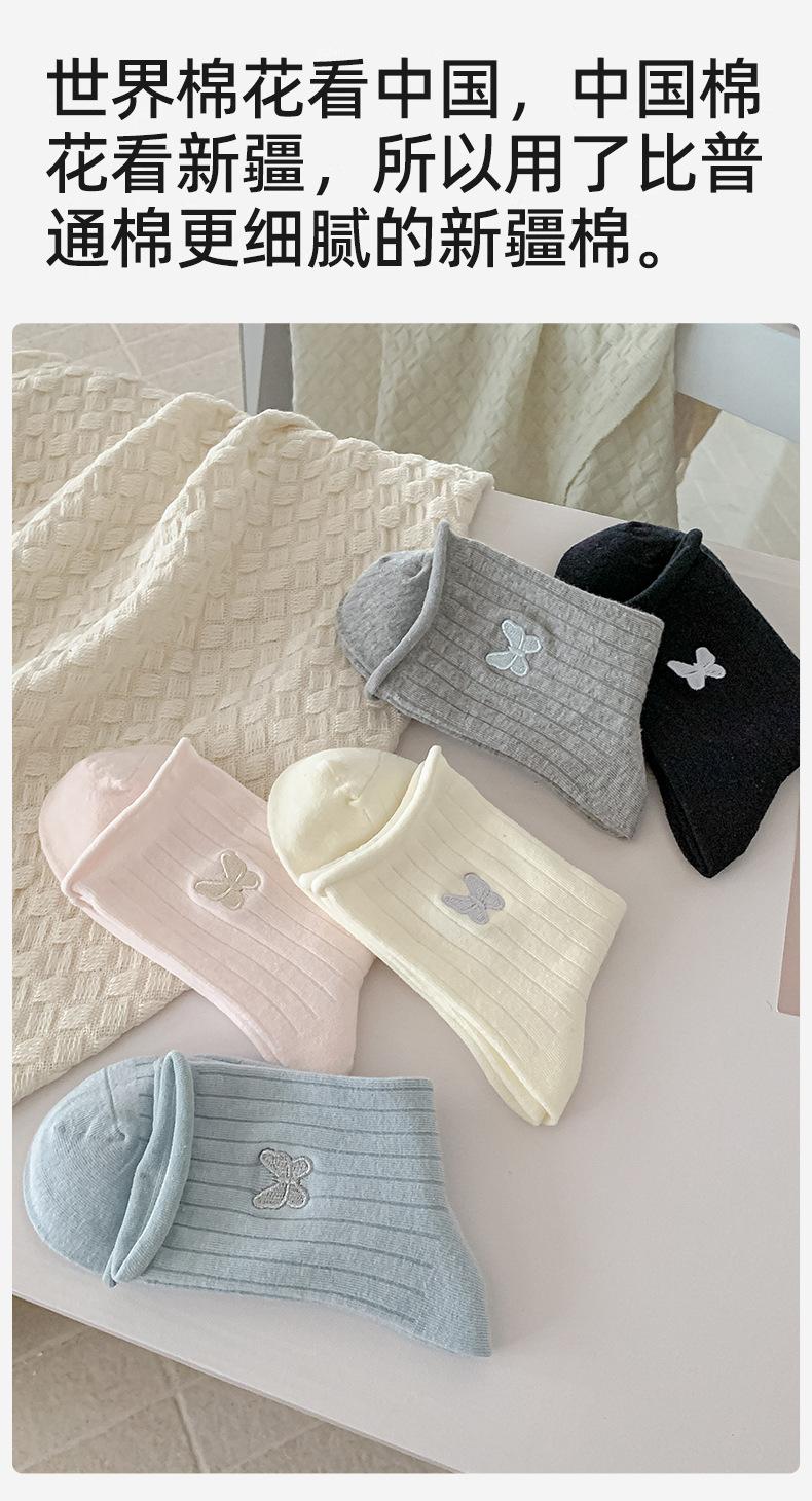 Calcetines Blancos con Lazo para Mujer Primavera Otoño Algodón Puro Media Pantorrilla Calcetines Japoneses de Boca Suelta con Borde Enrollado Bordado de Lazo Calcetines de Rizo