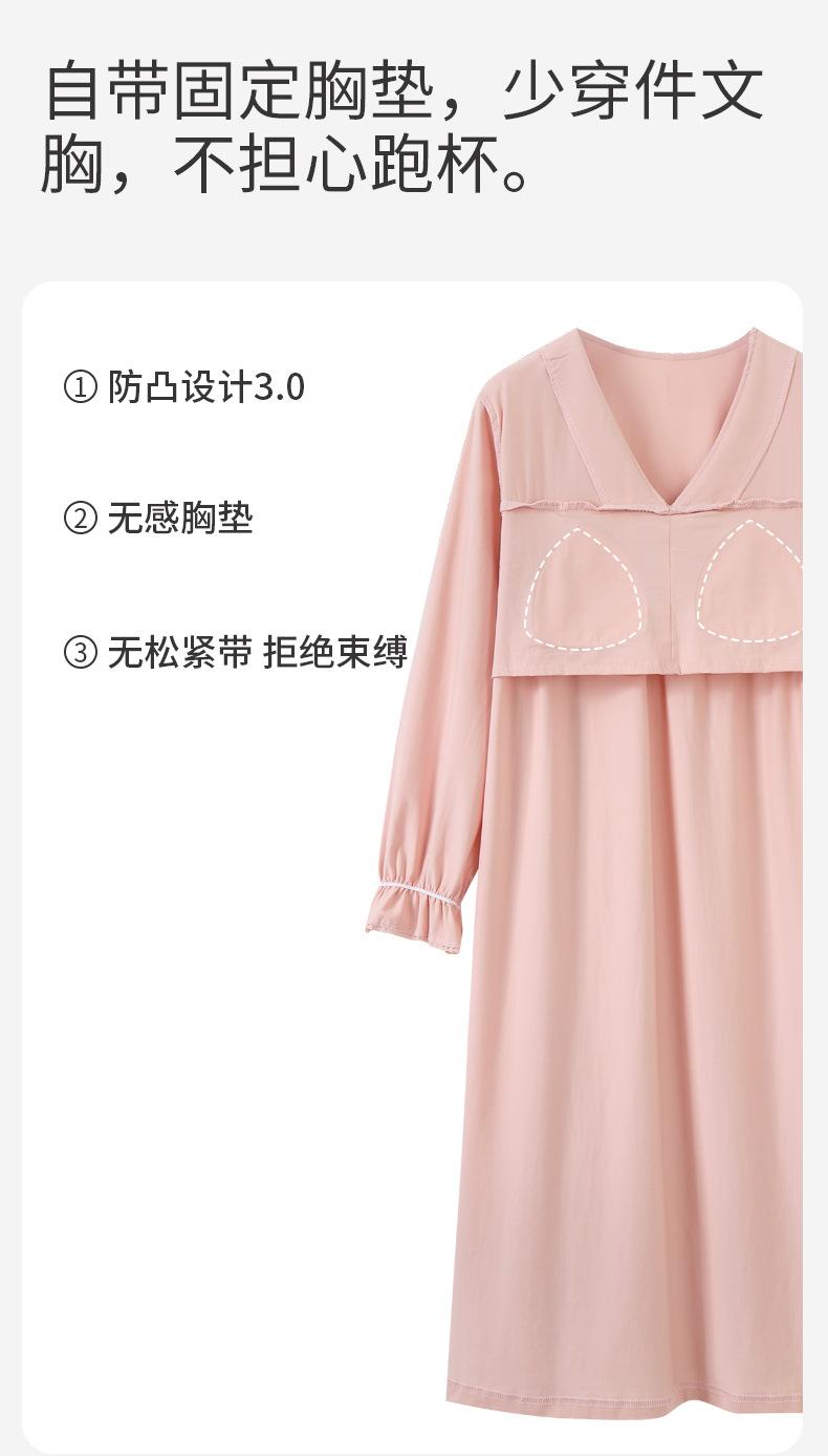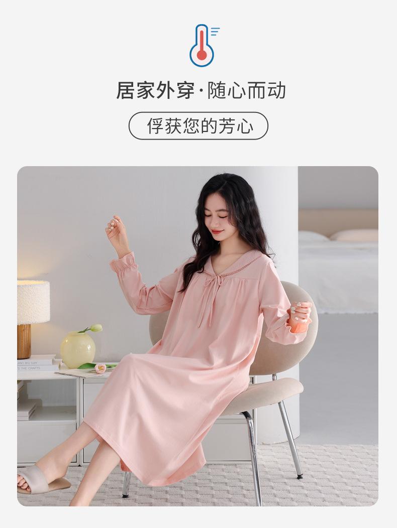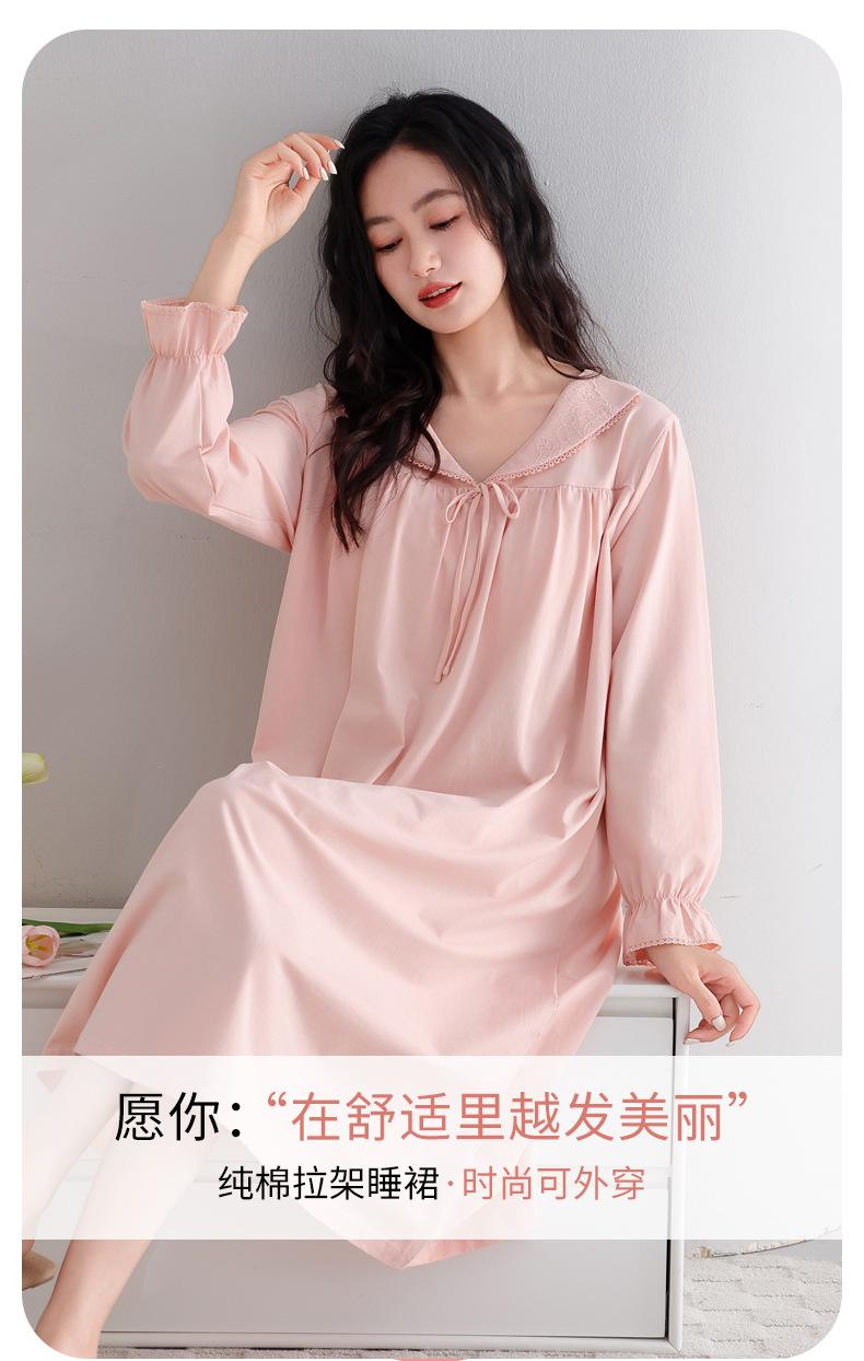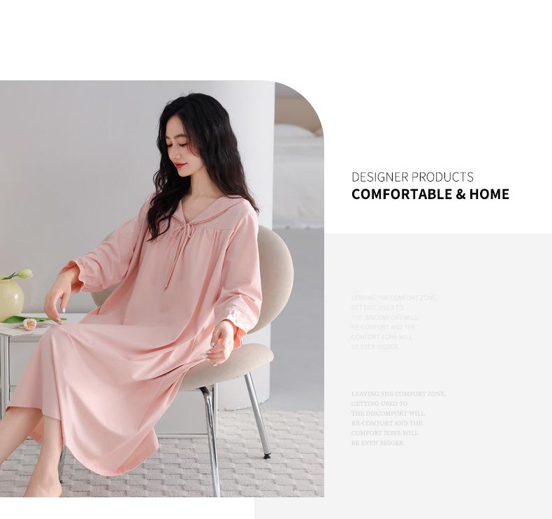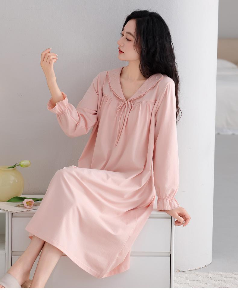 Pijama de Primavera y Otoño para Mujer Algodón Puro Manga Larga Otoño con Almohadilla en el Pecho 2025 Nuevo Casual Largo Medio Ropa para el Hogar