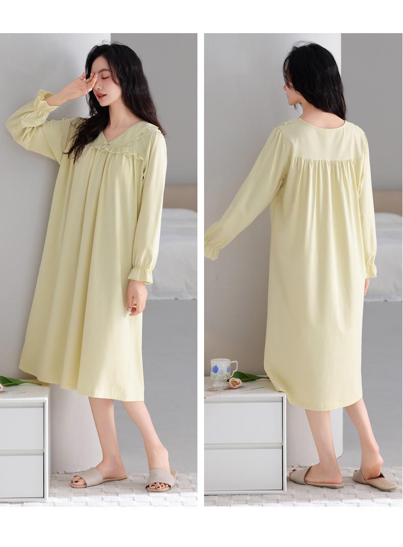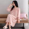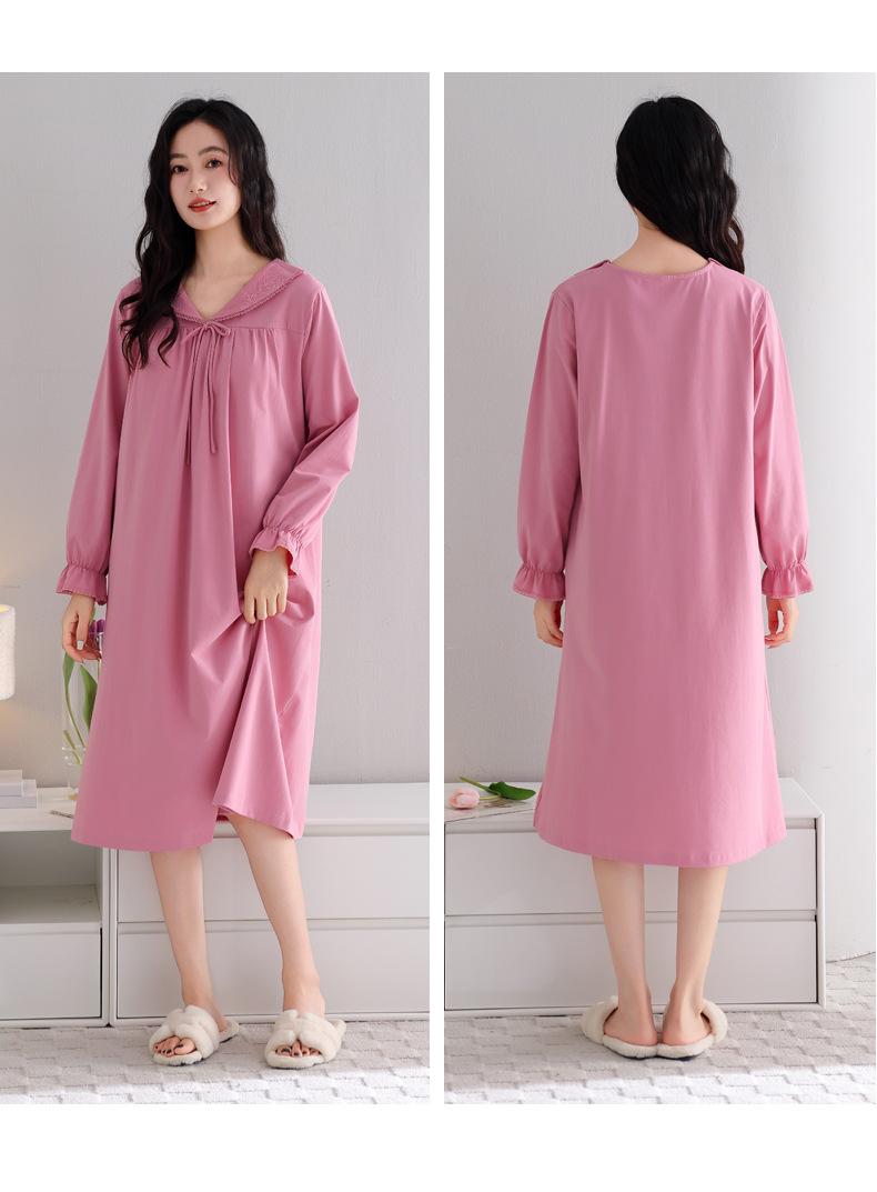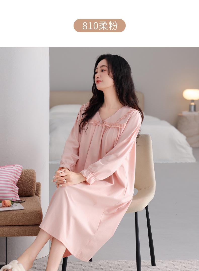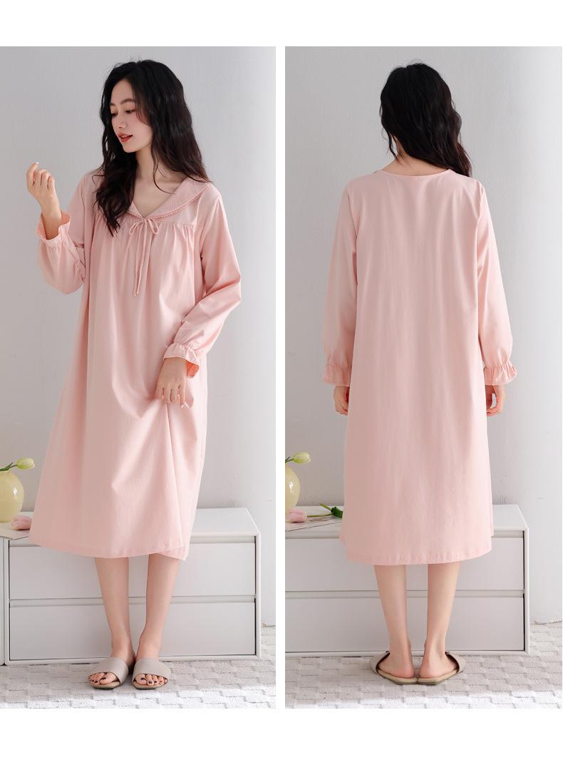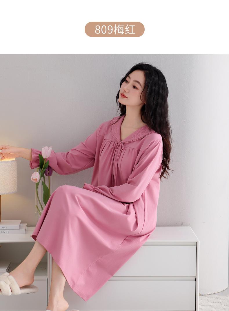 Pijama de Primavera y Otoño para Mujer Algodón Puro Manga Larga Otoño con Almohadilla en el Pecho 2025 Nuevo Casual Largo Medio Ropa para el Hogar
